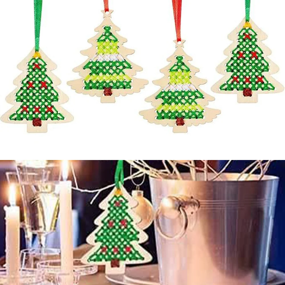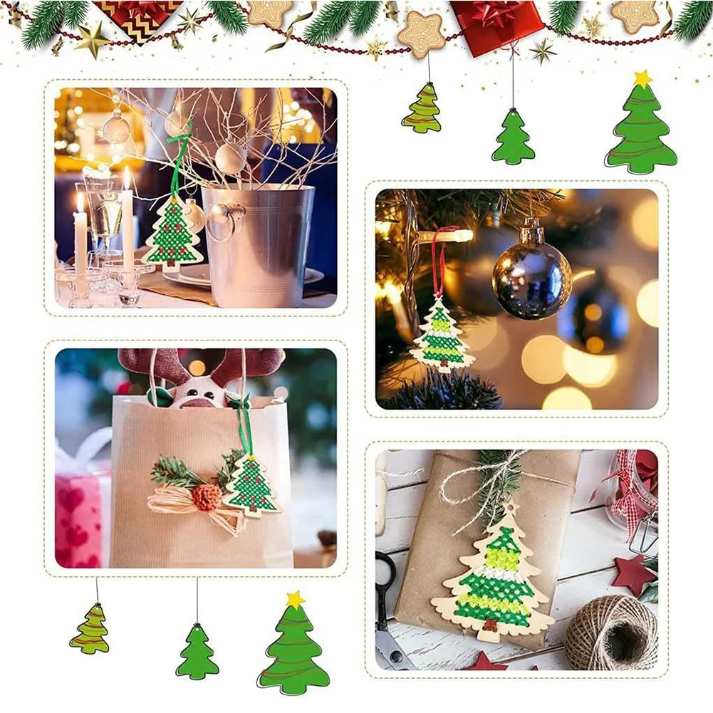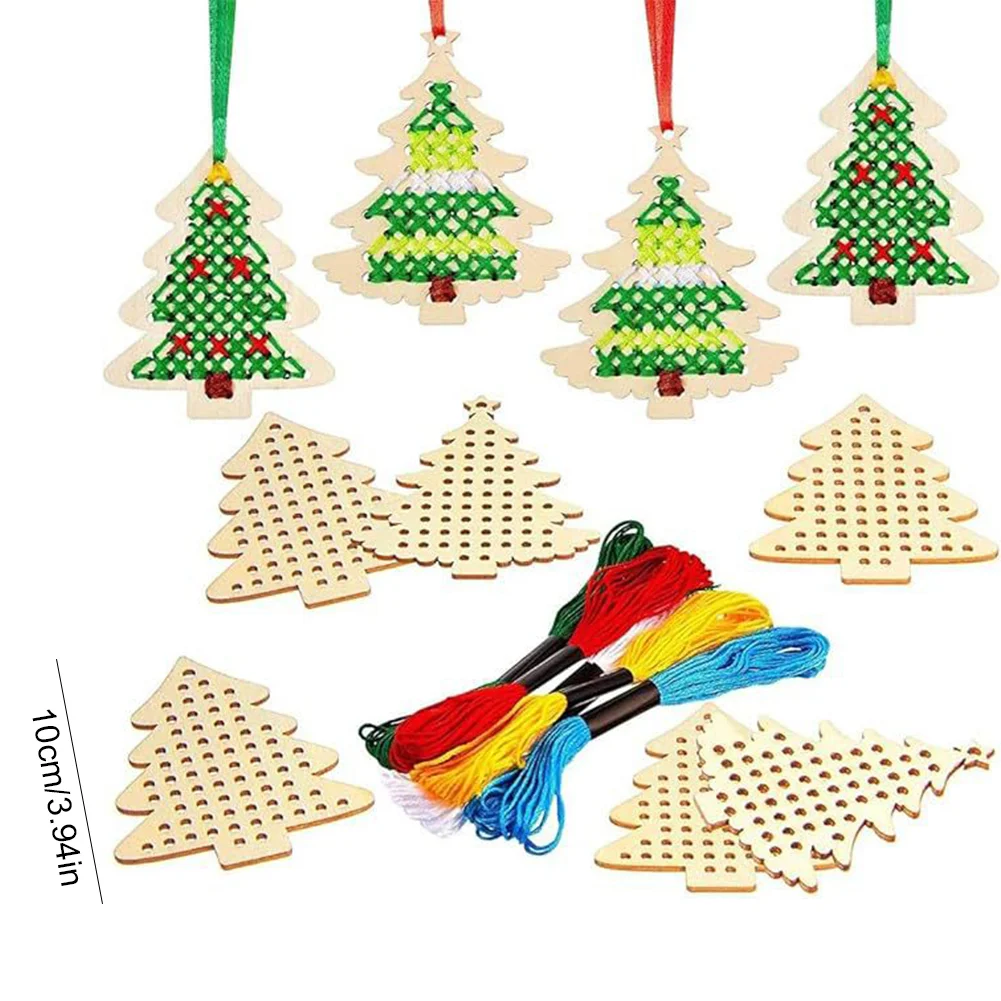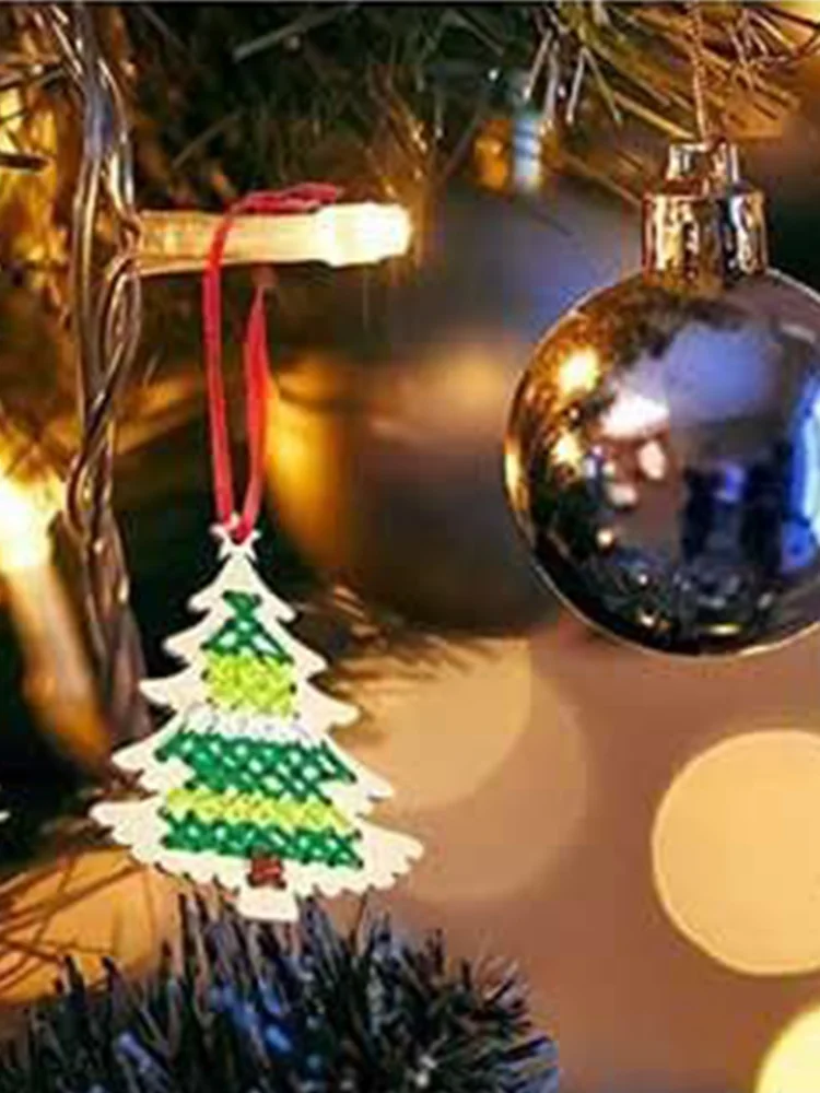 Package Content : 10Pcs * Christmas tree Cross Stitch, 10Pcs *Ribbon,10Pcs *thread, 4Pcs*Plastic Needle