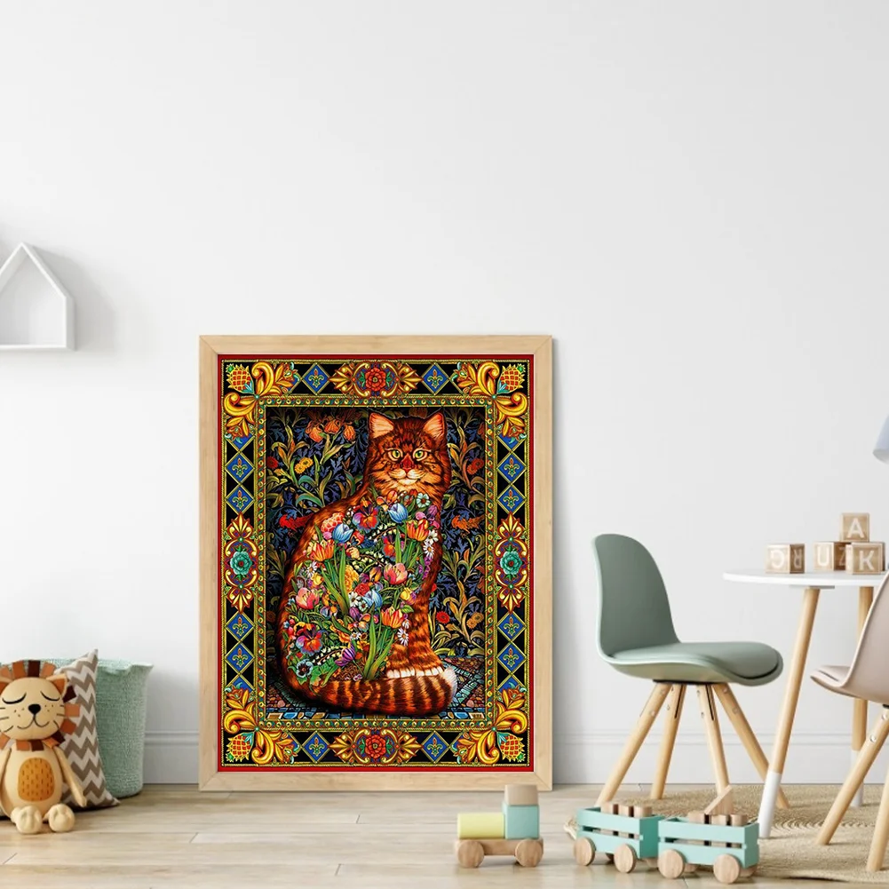 Full Embroidery Cross Stitch 11CT Cat Stamped Embroidery DIY Needlework Kits Handmade Cotton Thread Wall Art Crafts Home Decoration Gifts