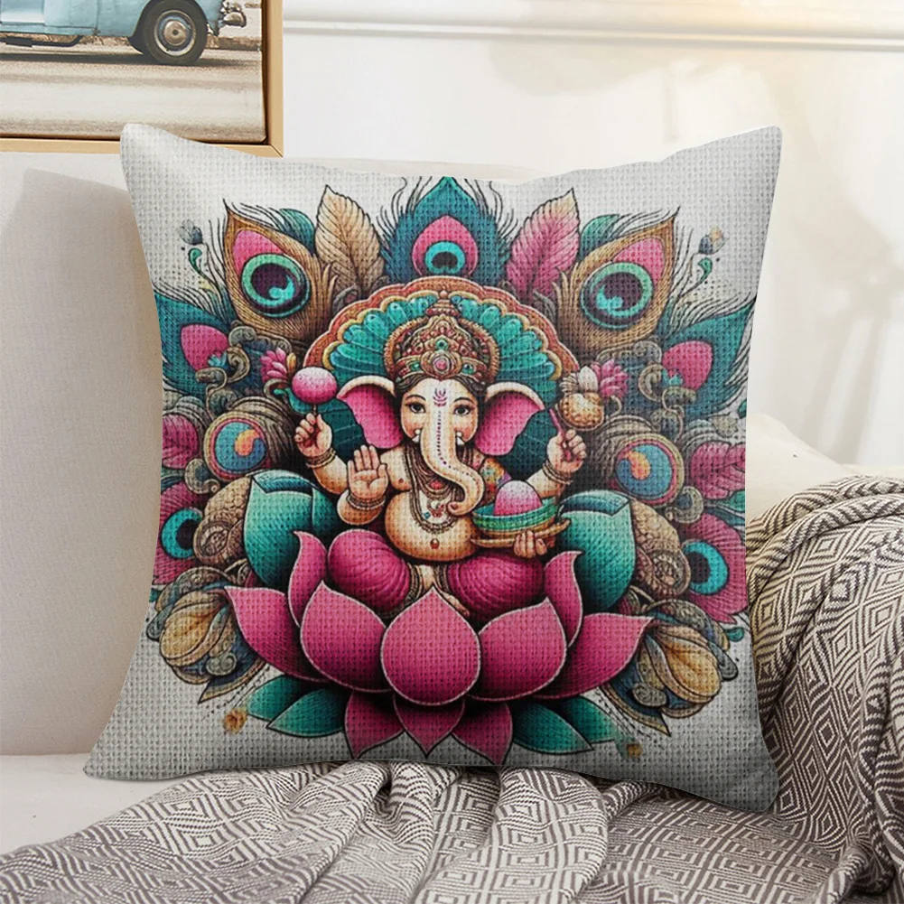 11CT Cotton Mandala Cross Stitch Pillow Kit 45x45cm Cross Stitch Stamped Pillow Cover Kit for Adults Beginners Sewing Craft Gift