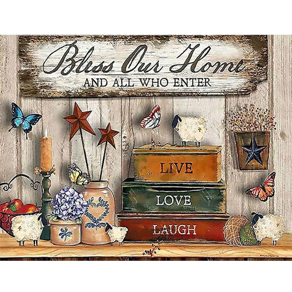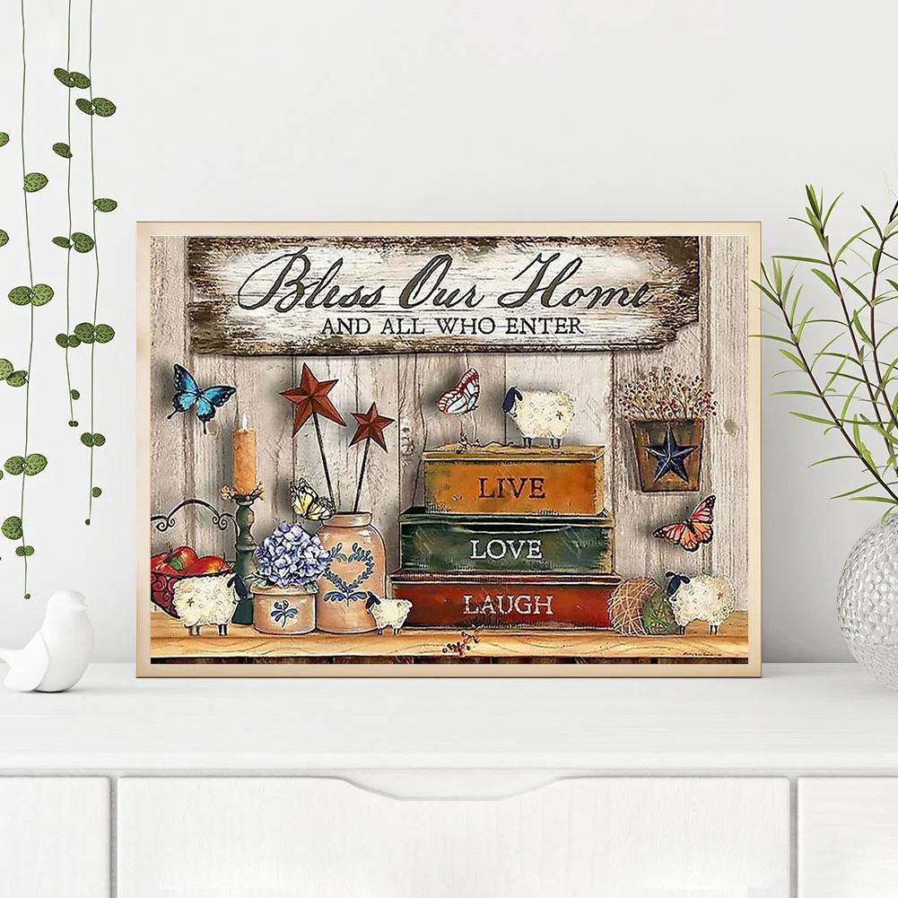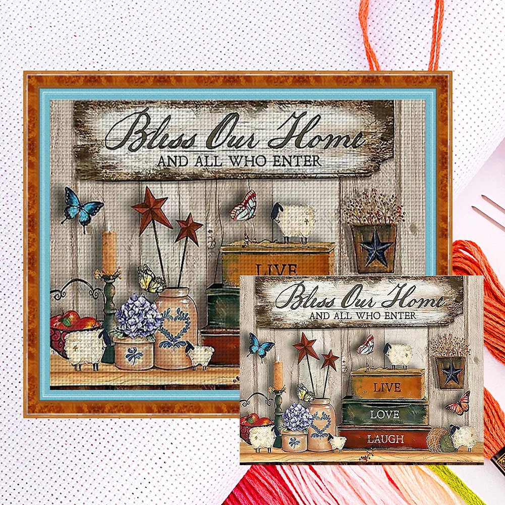 11CT Full Cross Stitch Bless Our Home Counted DIY Embroidery Kits Handmade Cotton Thread Needlework Wall Art Crafts Home Decoration Gifts