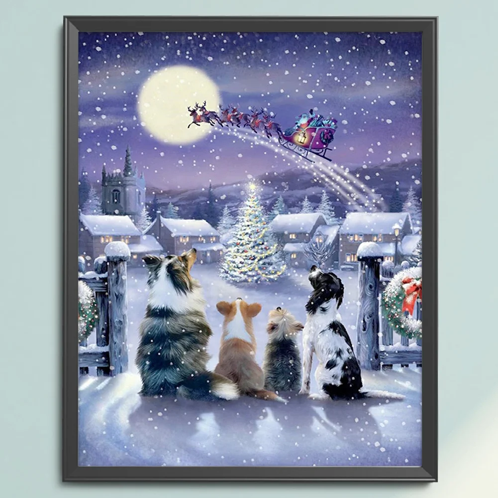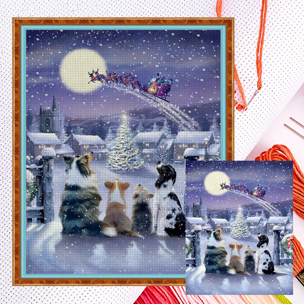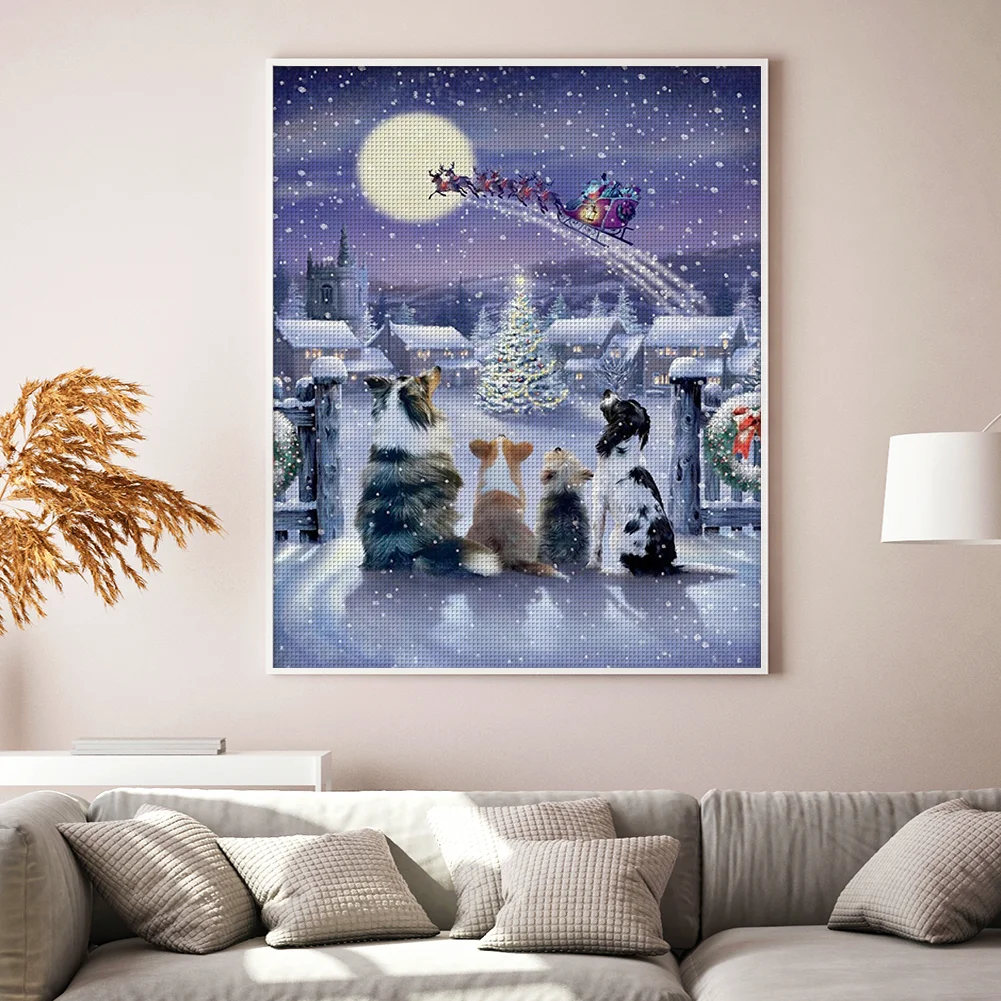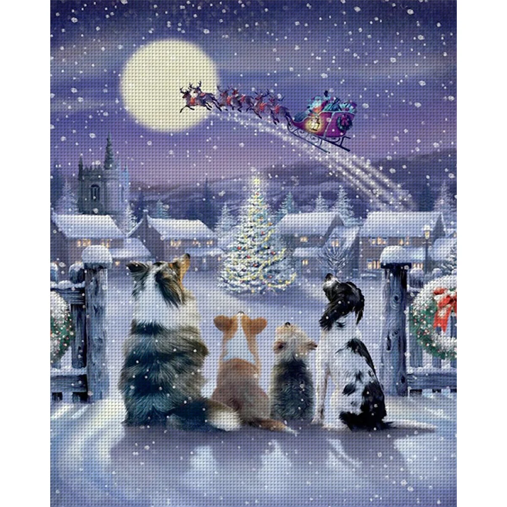 11CT Counted Cross Stitch Kit - Christmas Puppy And Santa Claus (40*50cm)