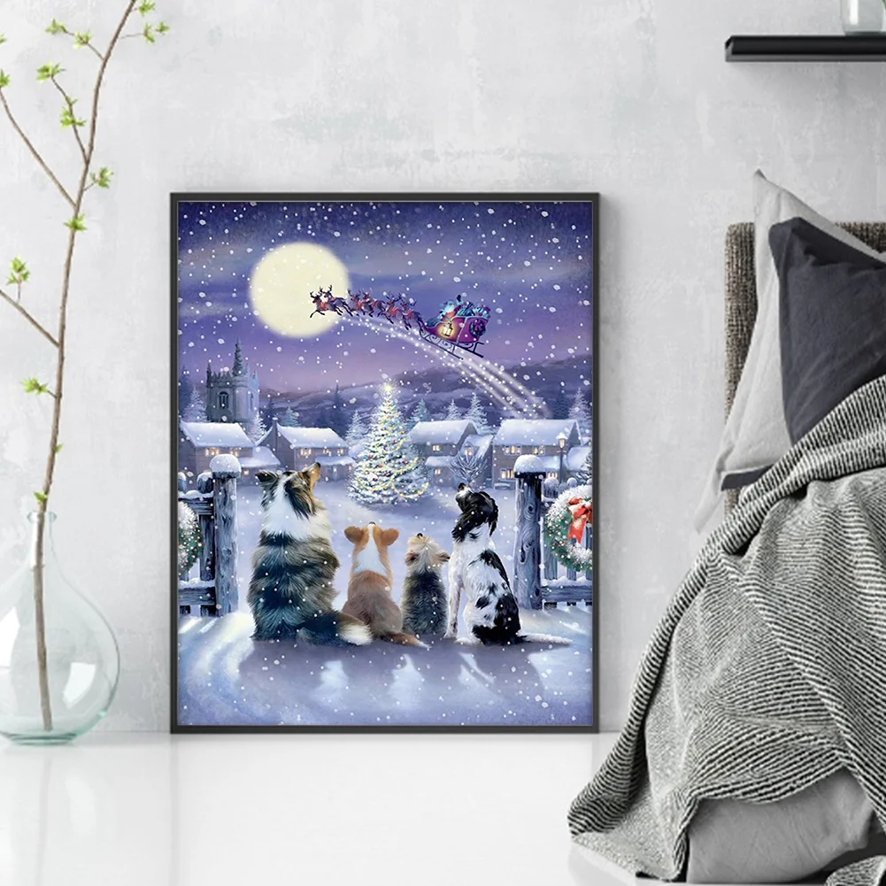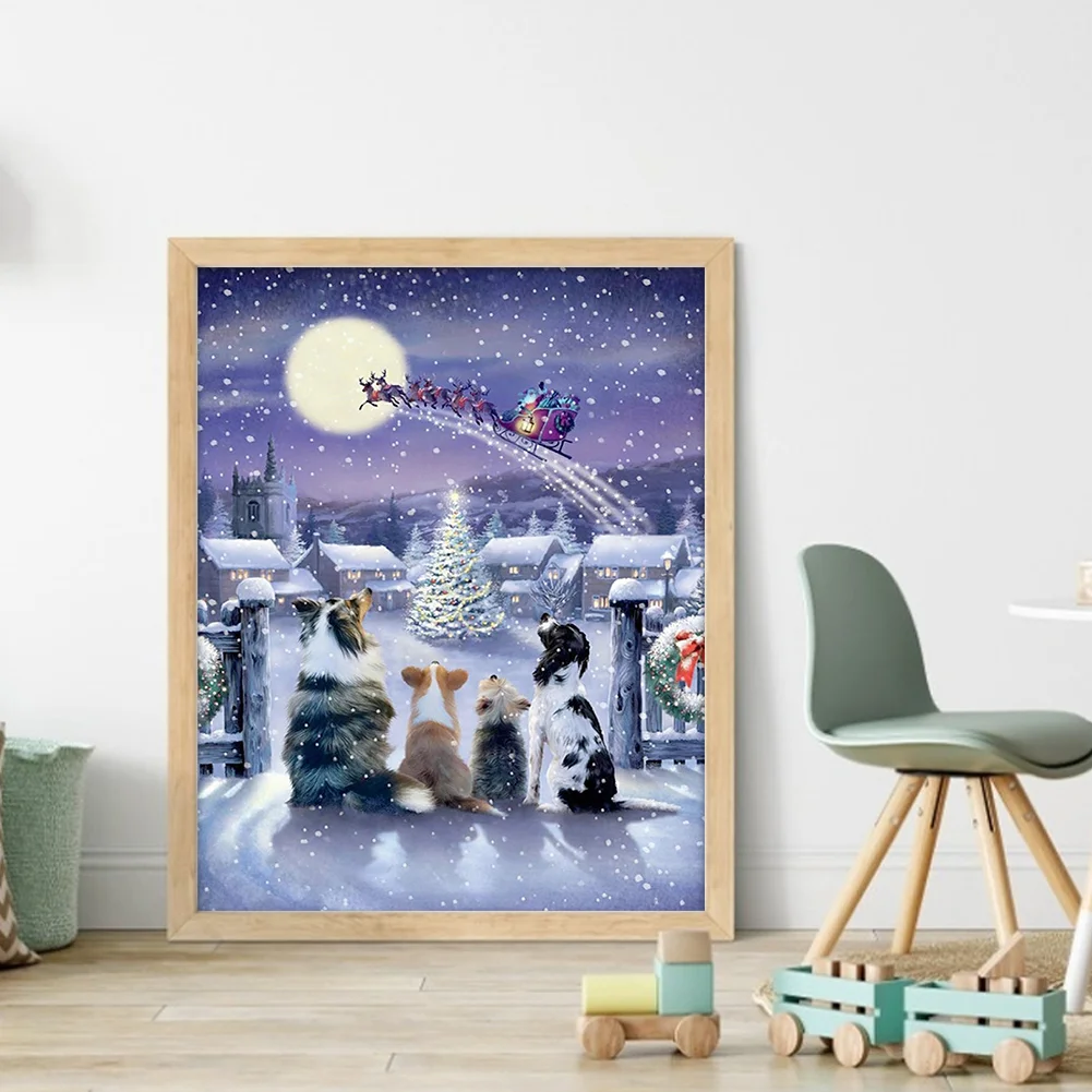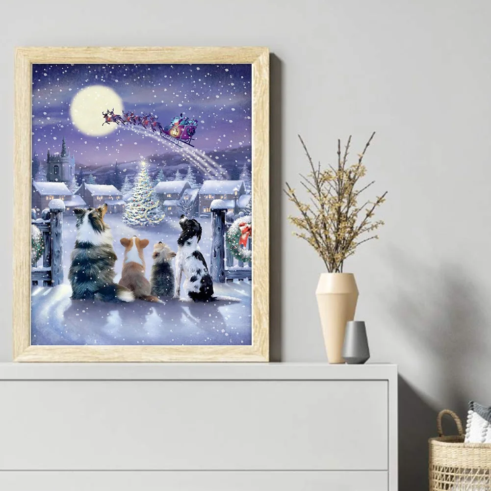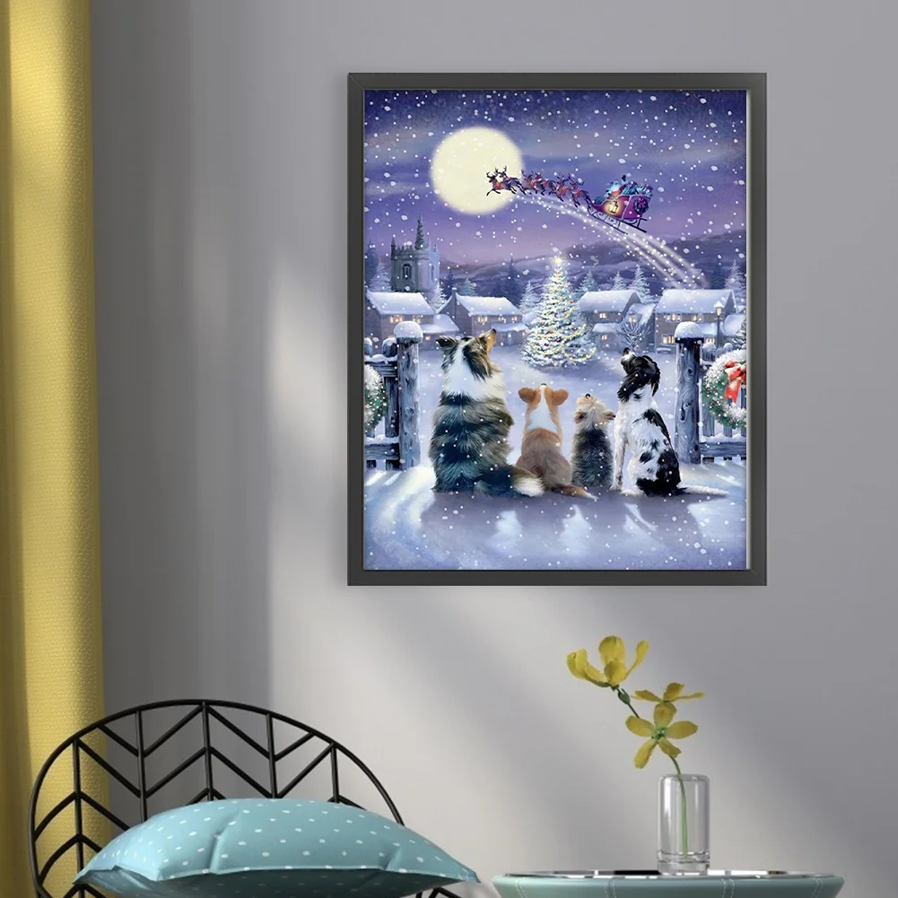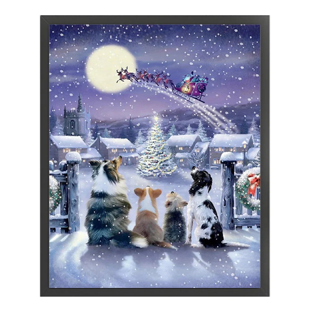 11CT Counted Cross Stitch Kit - Christmas Puppy And Santa Claus (40*50cm)