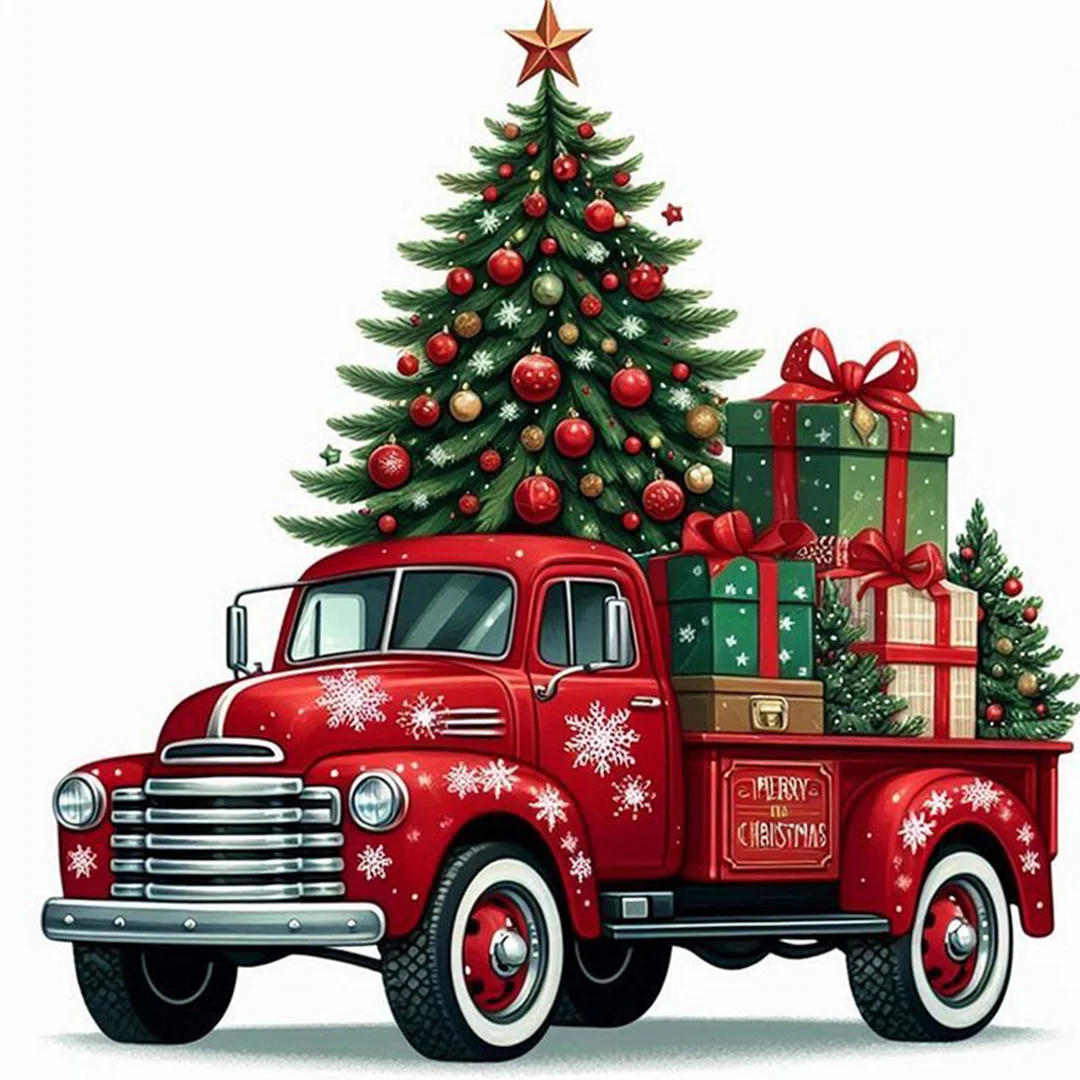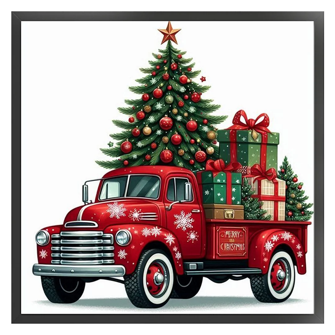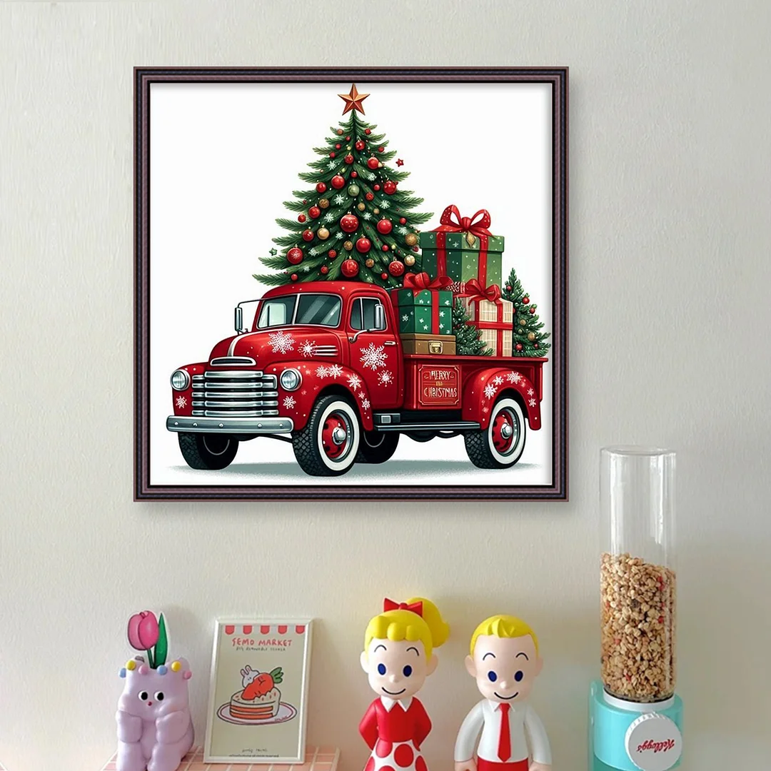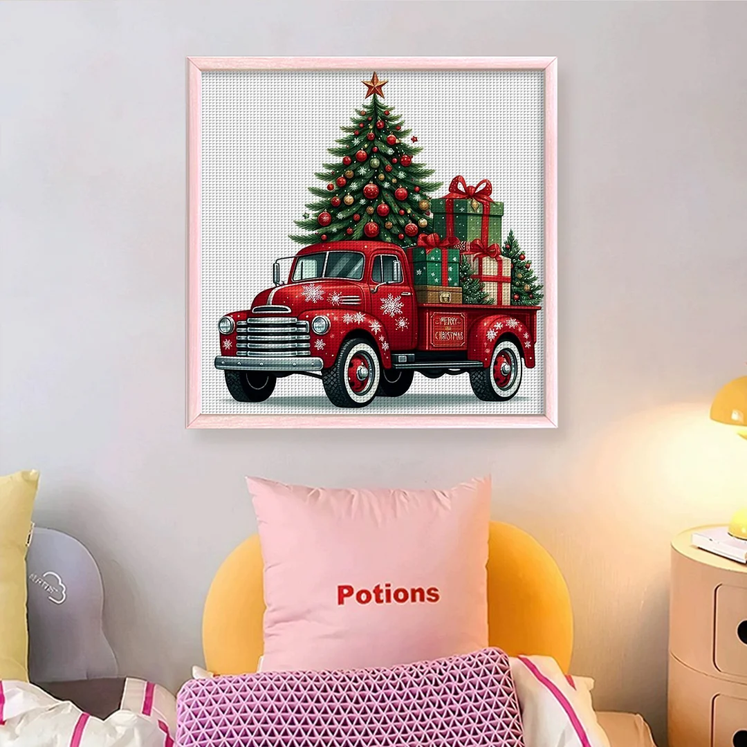11CT Counted Cross Stitch Kit - Christmas Tree Truck (40*40cm)
