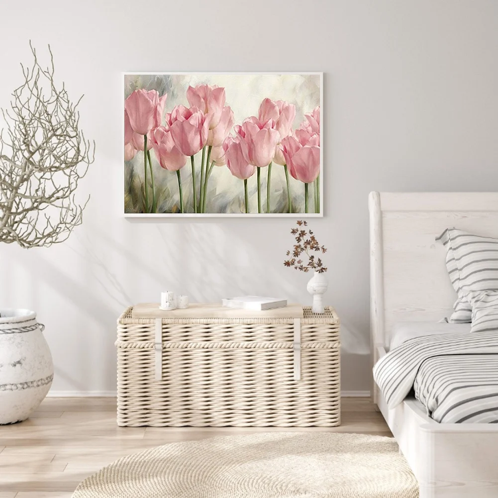 Full Cross Stitch 11CT Pink Rose Counted Embroidery DIY Needlework Kits Handmade Cotton Thread Flower Wall Art Crafts Home Decoration Gifts