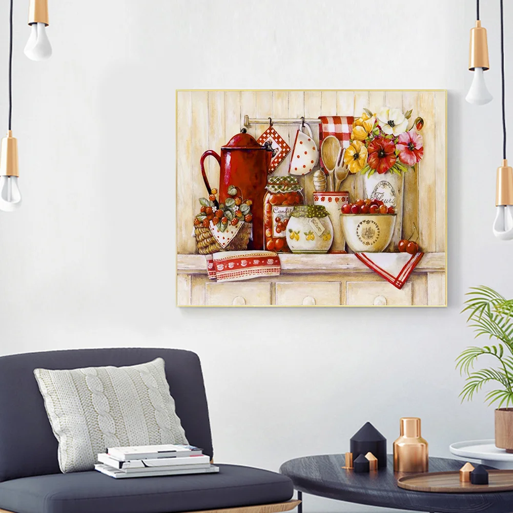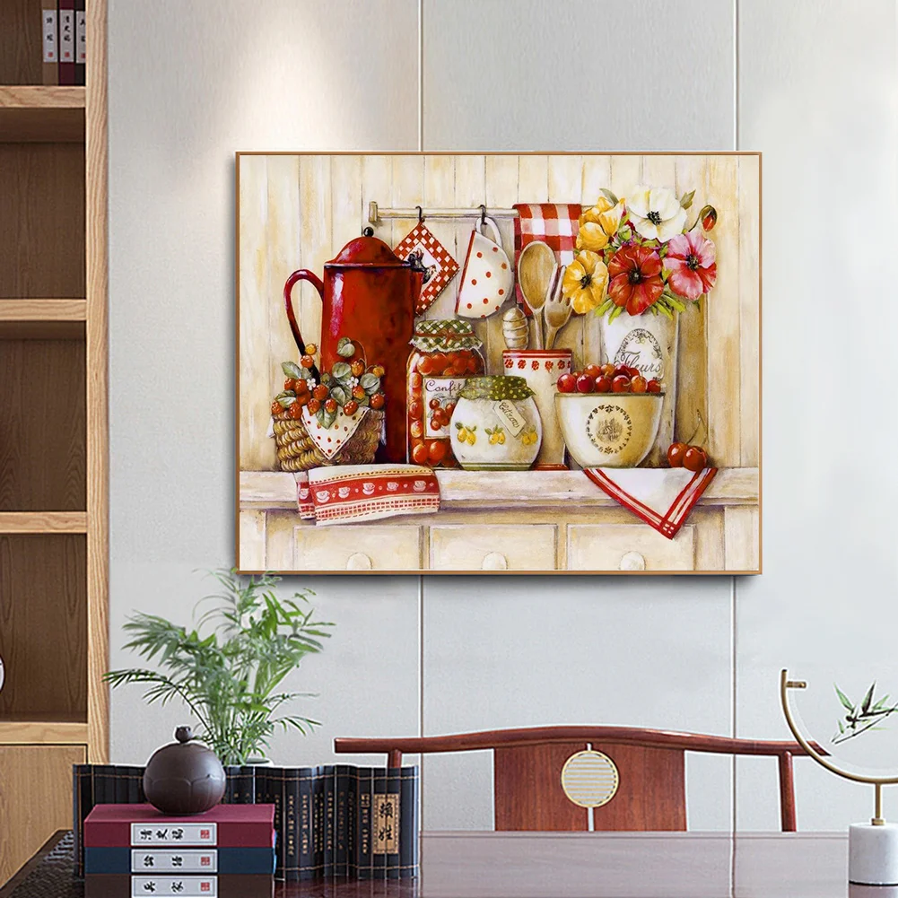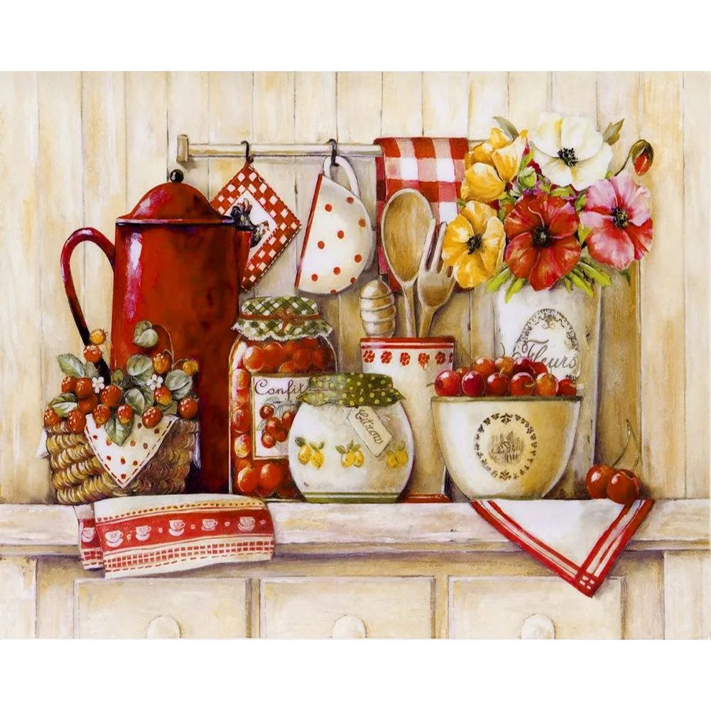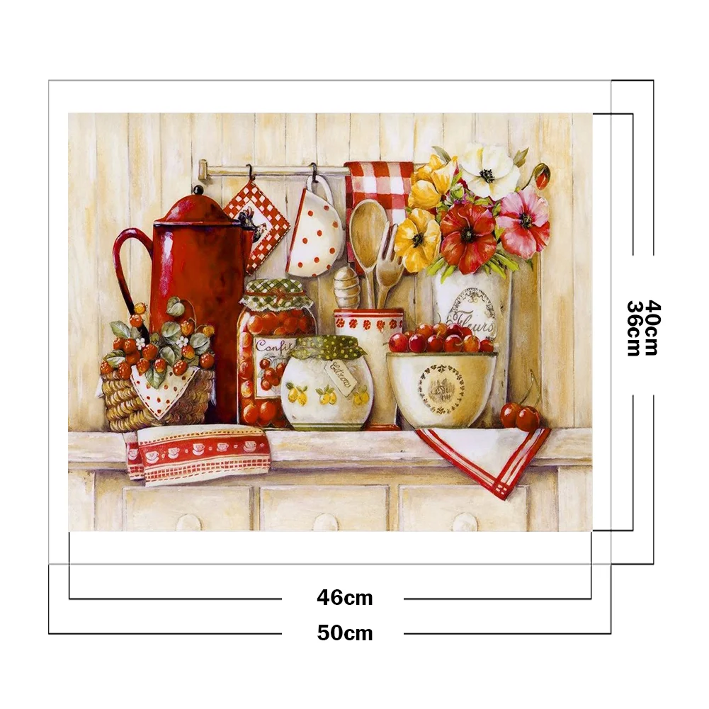 Full Embroidery Kitchenware Needles Thread Cross Stitch Ecological Cotton 11CT 3 Strand Counted Embroidery Kits Canvas DIY Art Needlework Home Decoration Picture Craft