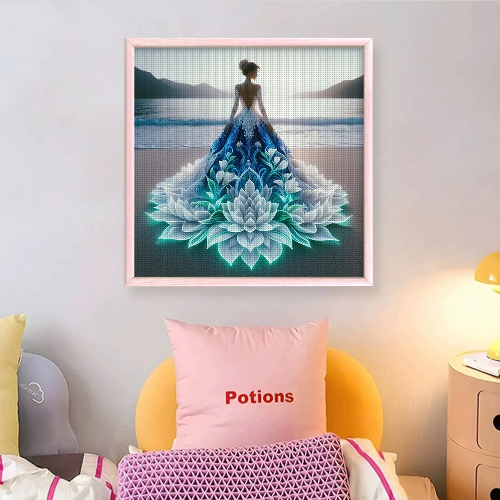 11CT Full Embroidery Eco-cotton Thread Printed Cross Stitch Kit - Girl (Canvas| 40*40CM)