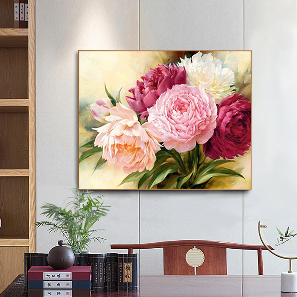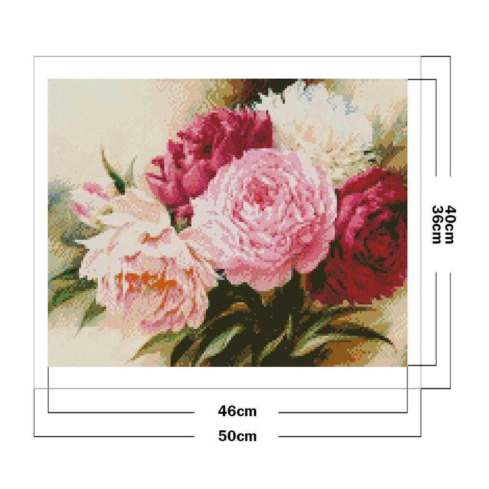 Full Cross Stitch 11CT Cotton Thread DIY Peony Printed/Counted Embroidery Kits Handmade Stamped Needlework Craft Home Decoration Hanging Painting Gift