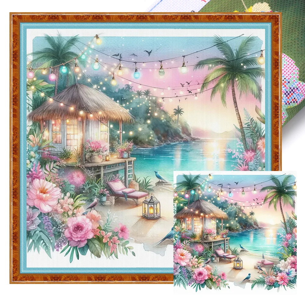 11CT Full Stamped Cross Stitch - Beach Scenery (40*40cm)