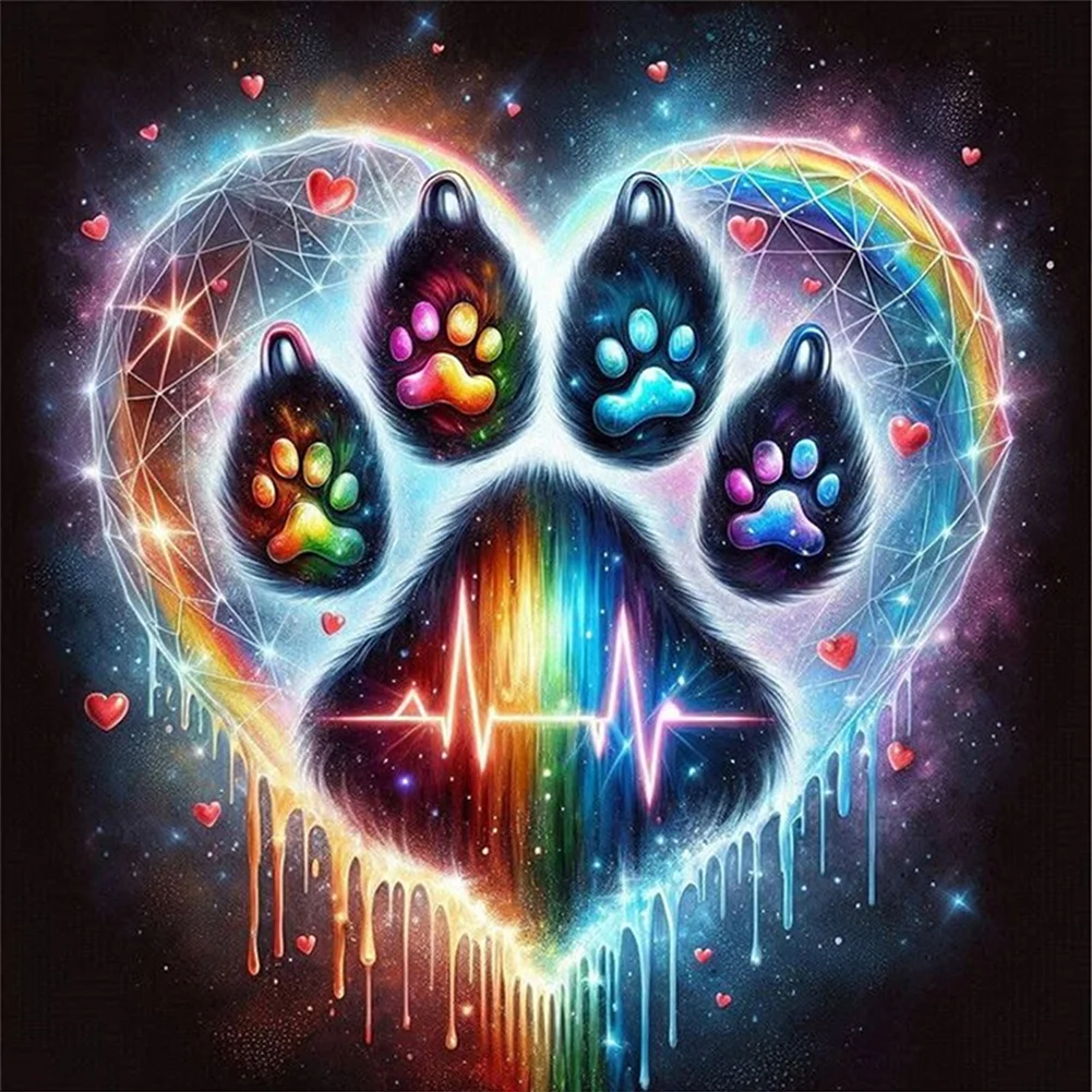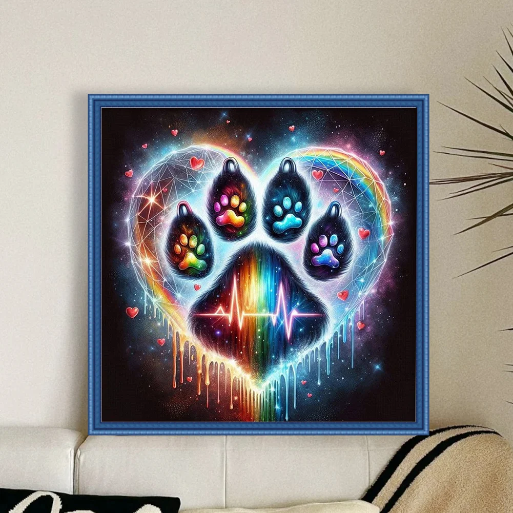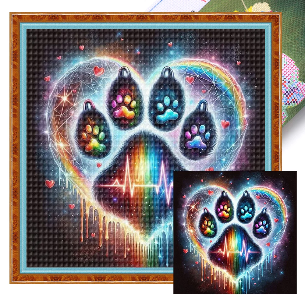 11CT Full Stamped Cross Stitch - Cat Paw Silhouette (40*40cm)
