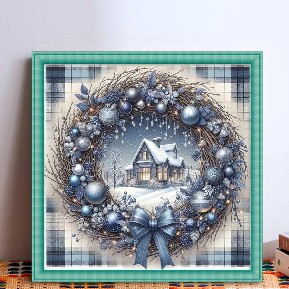 11CT Full Stamped Cross Stitch - Christmas Cottage Scenery (40*40cm)