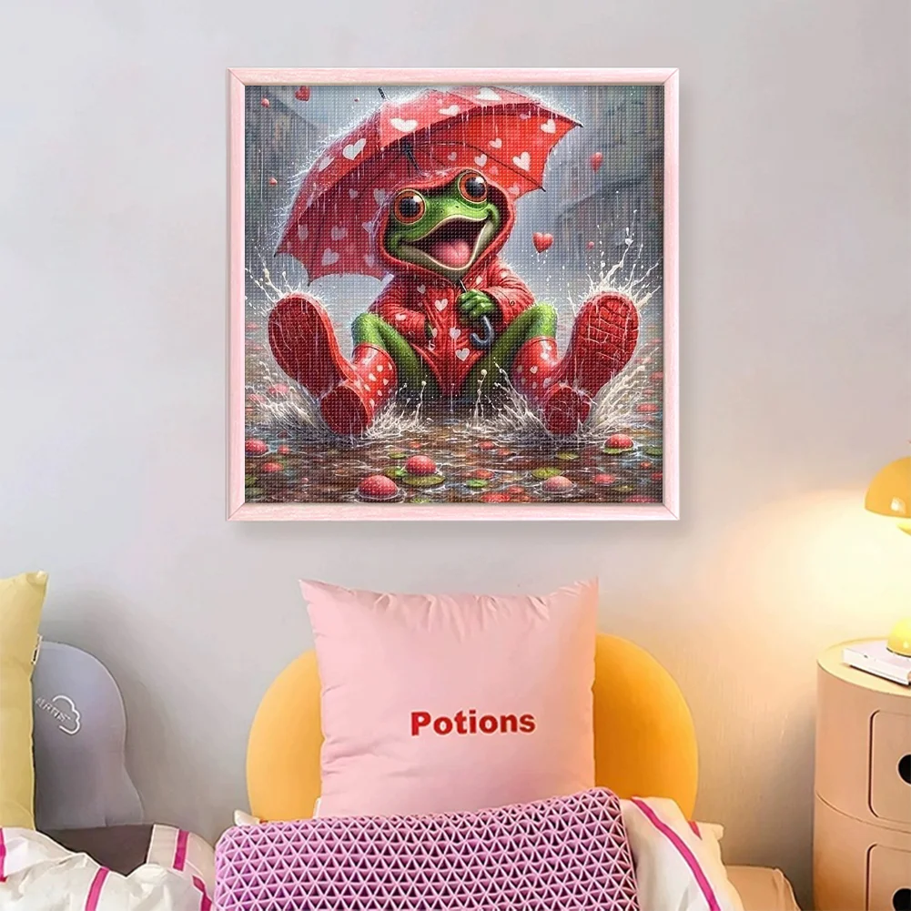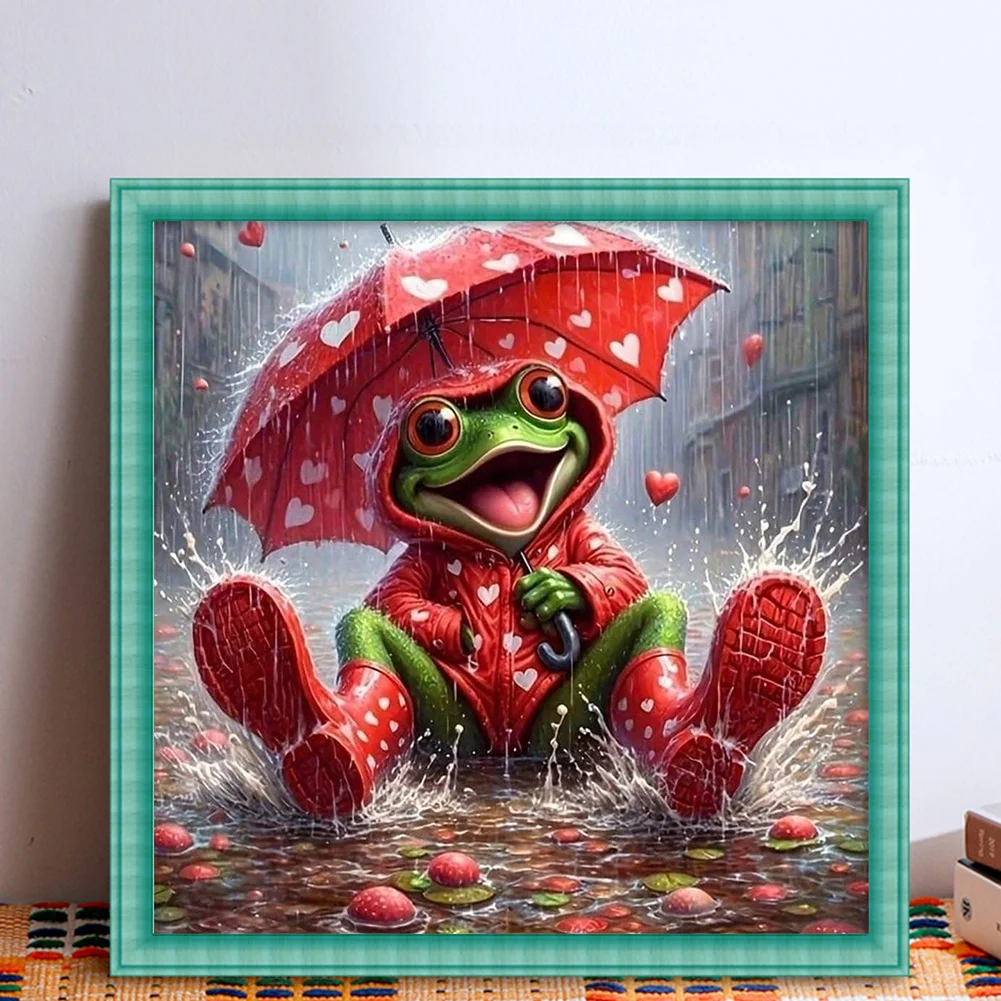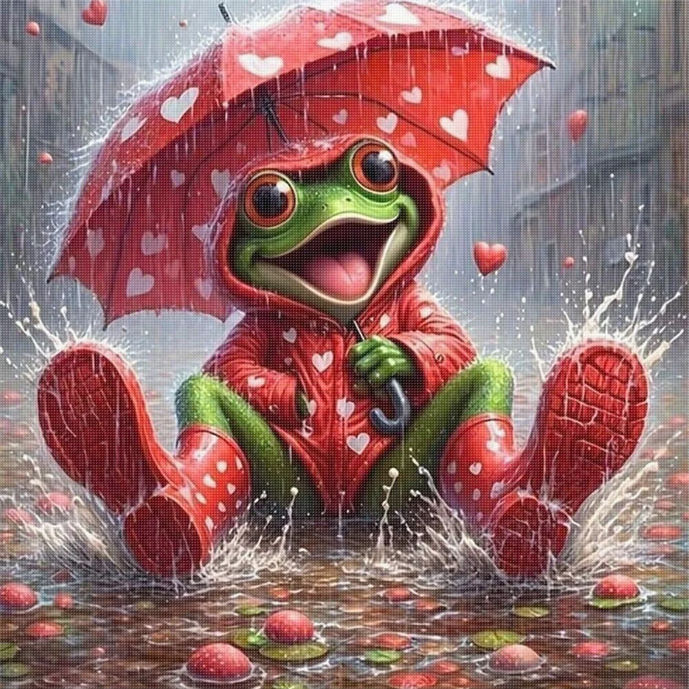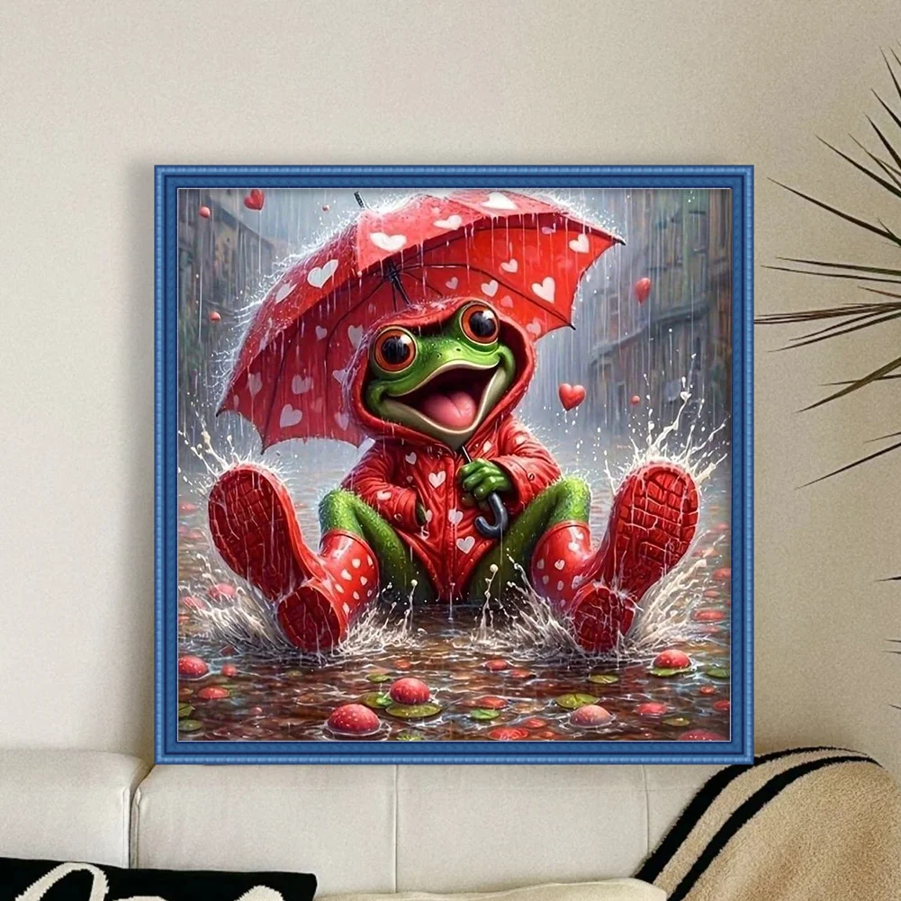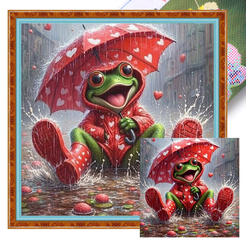 11CT Full Stamped Cross Stitch - Frog Holding An Umbrella (40*40cm)