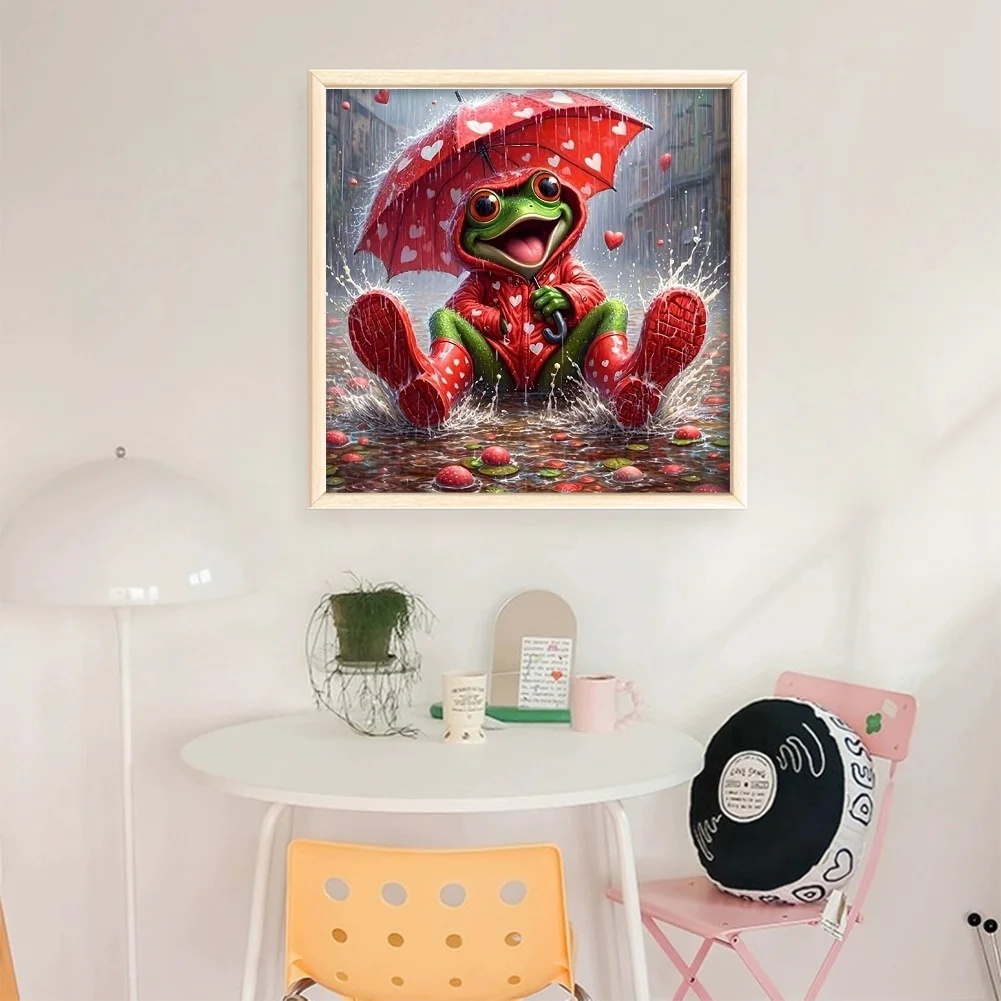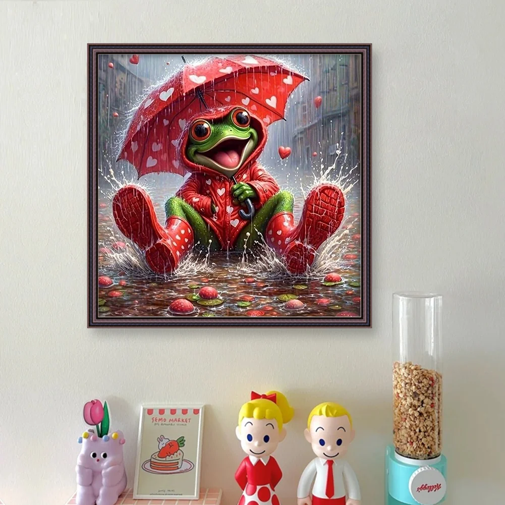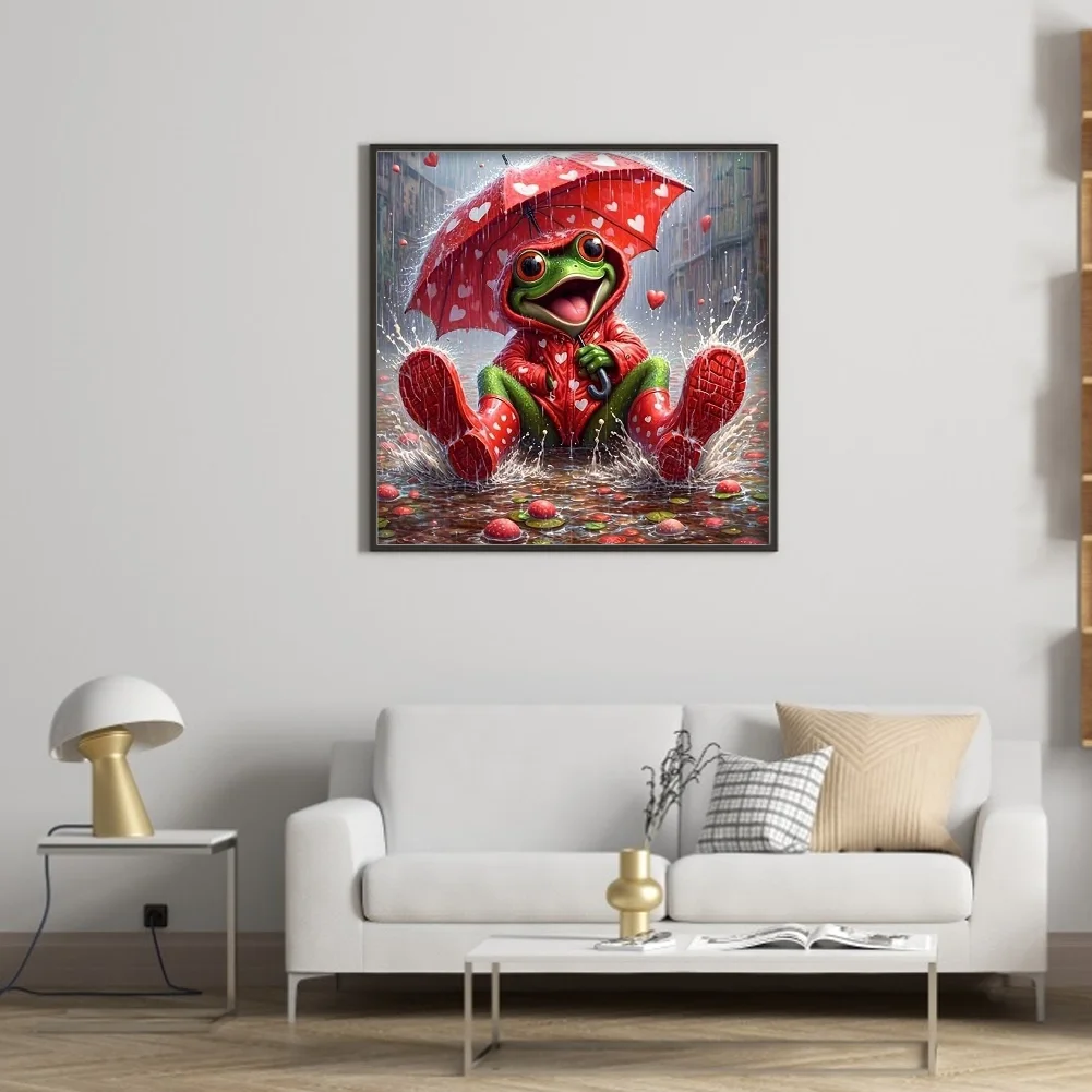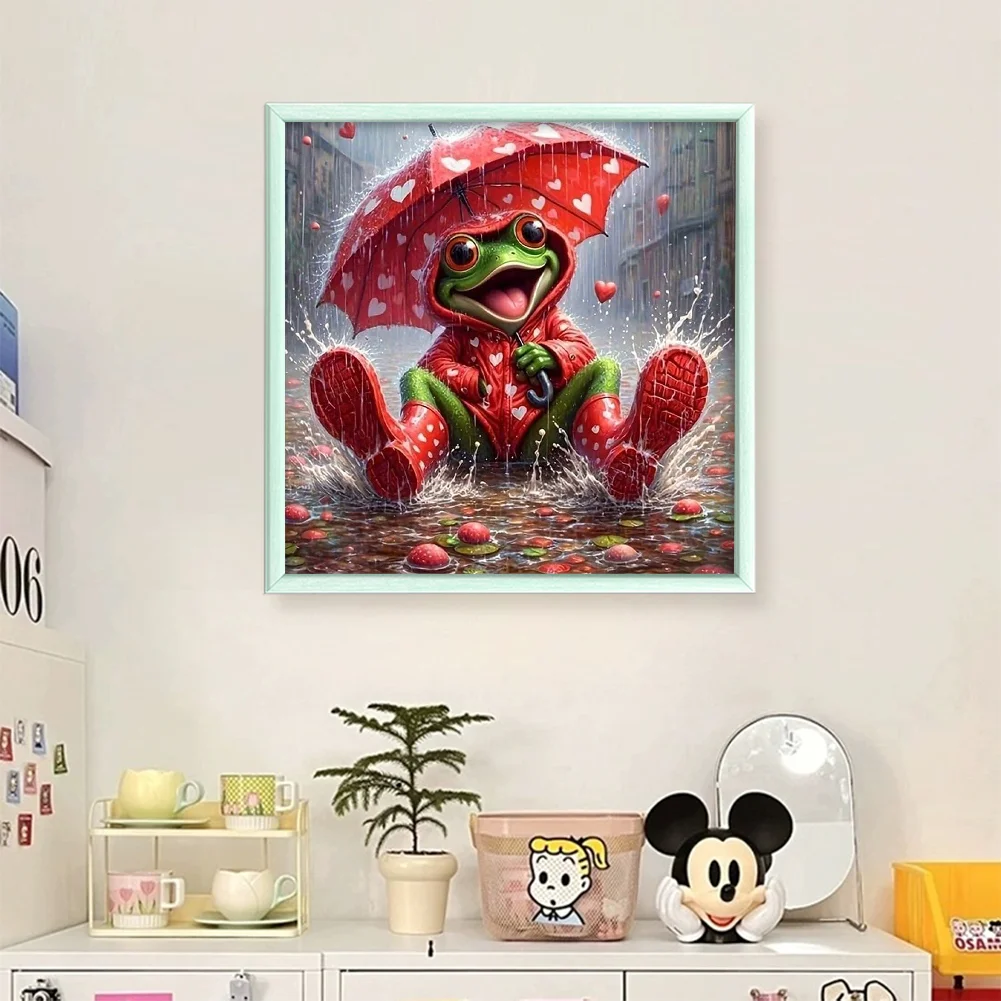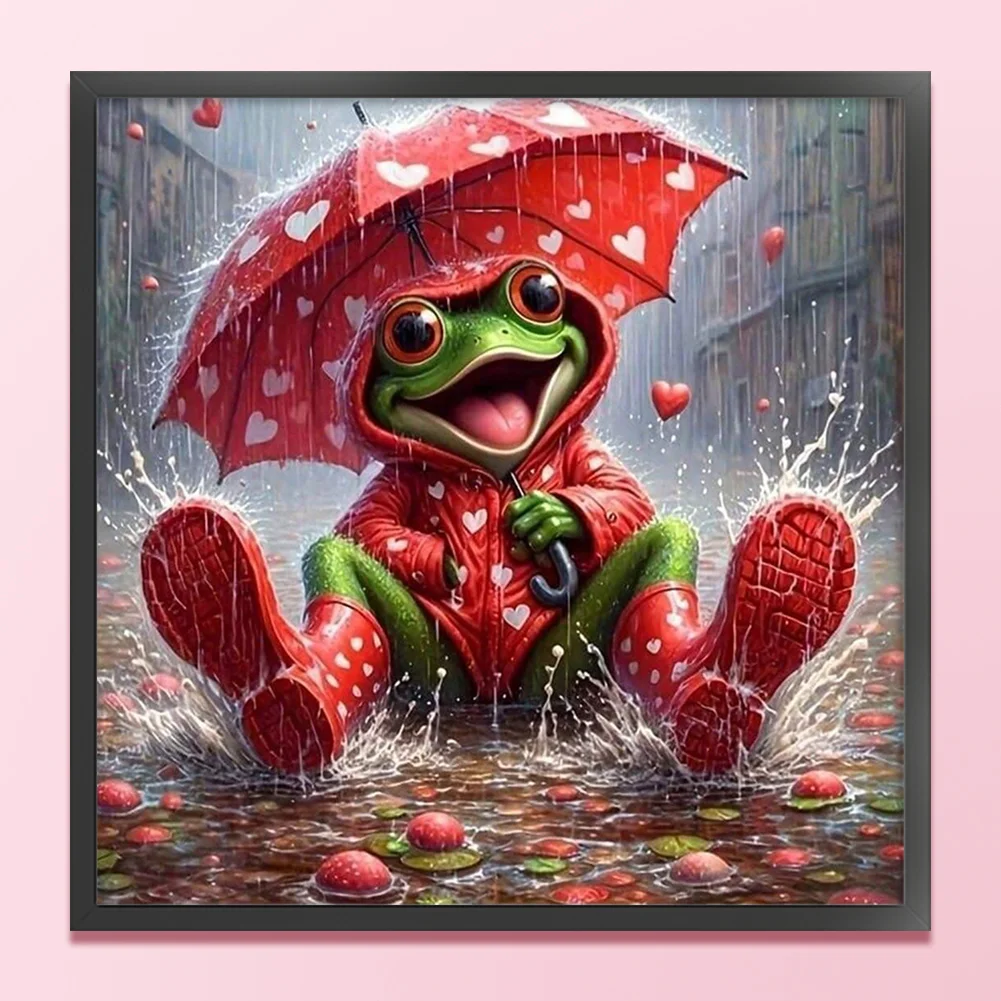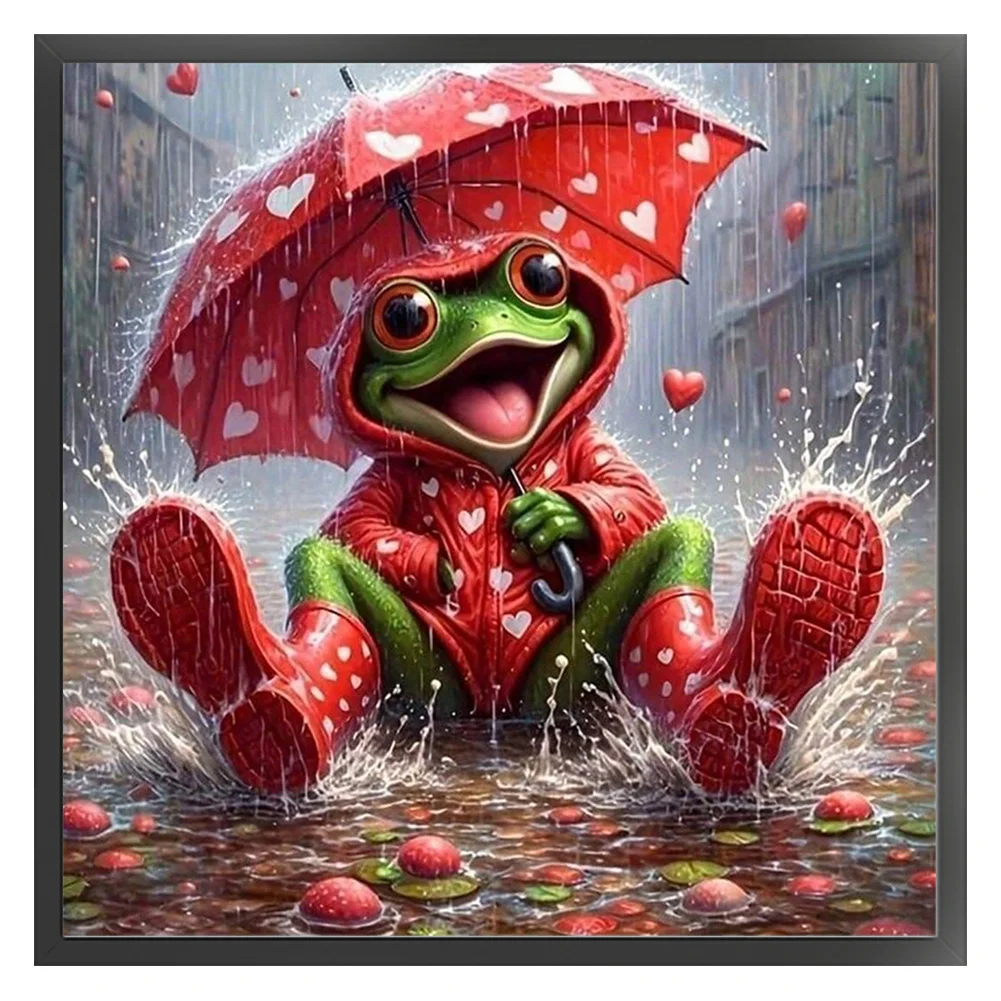 11CT Full Stamped Cross Stitch - Frog Holding An Umbrella (40*40cm)