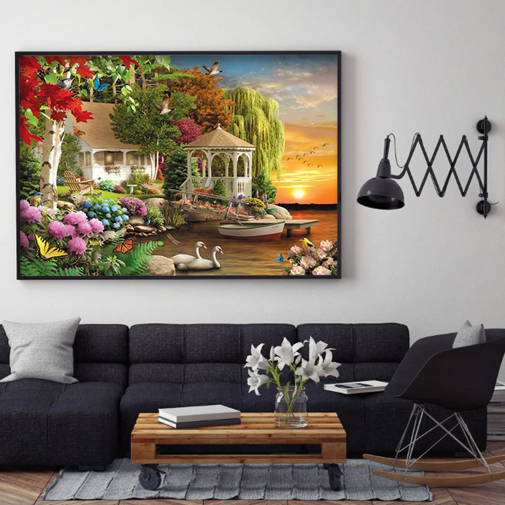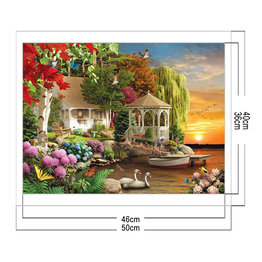 40x50cm DIY Cross Stitch Full Embroidery Garden View Scenery Home Decoration Handcraft Art 11CT Stamped Needlework Kit Cotton Sewing Handmade Gift
