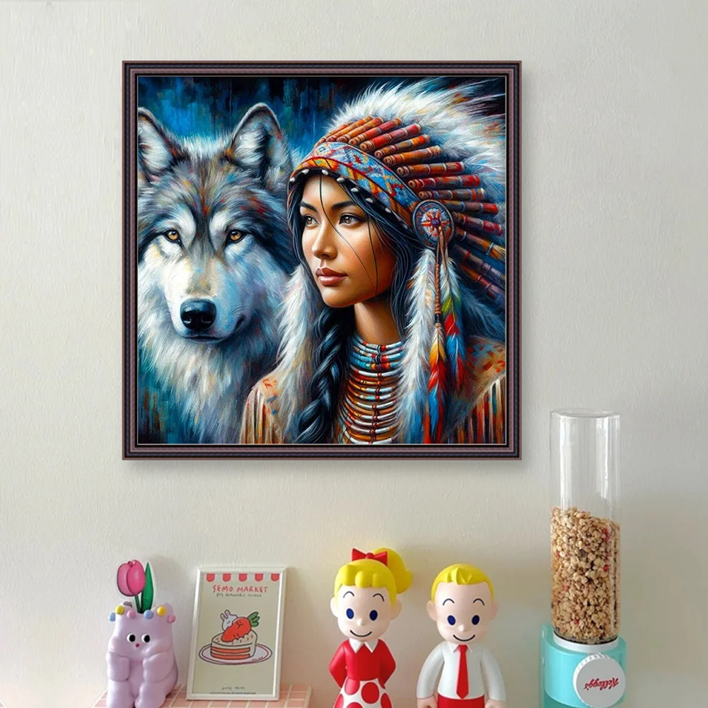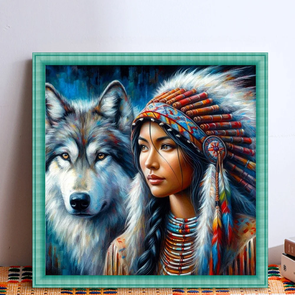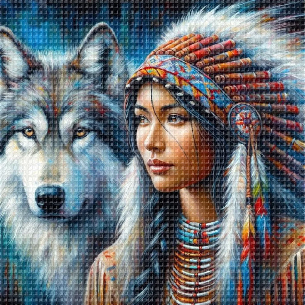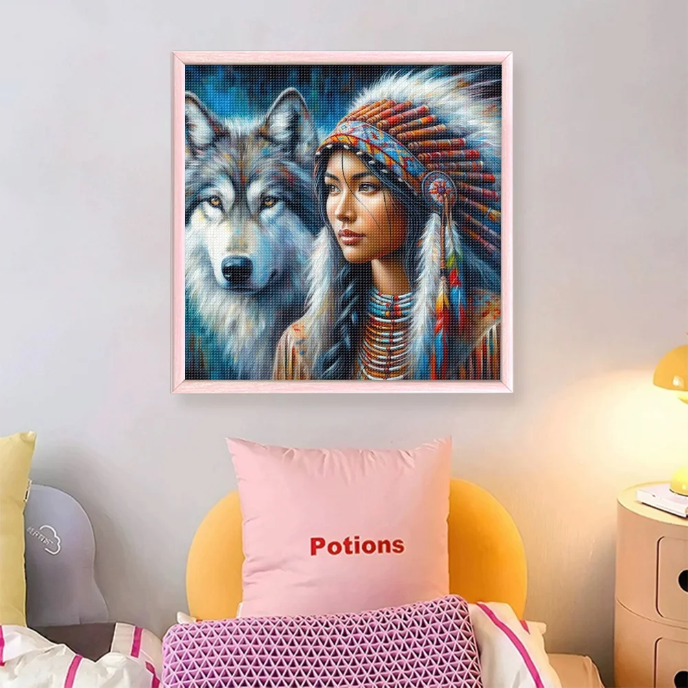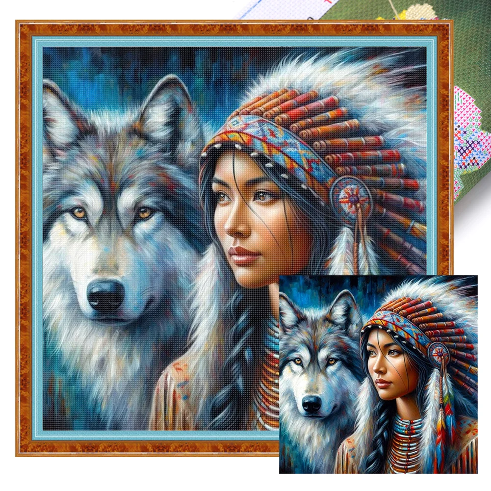 11CT Full Stamped Cross Stitch - Girl And Wolf (45*45cm)