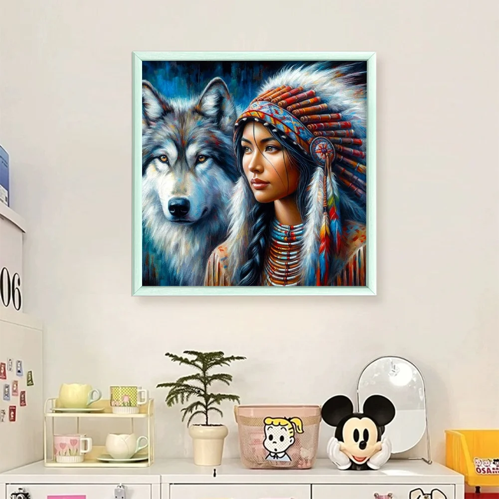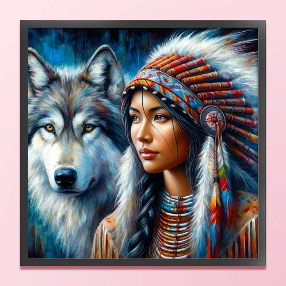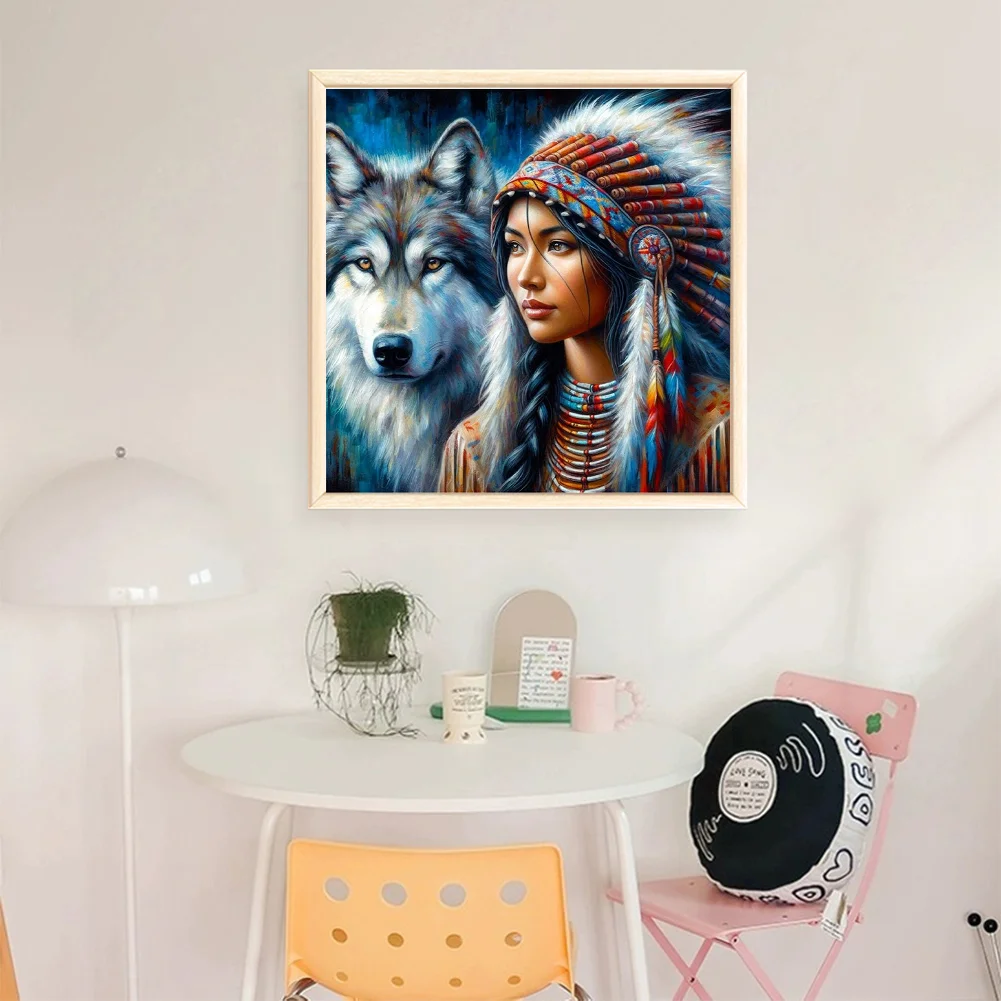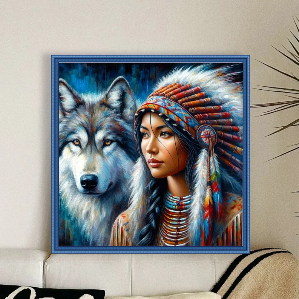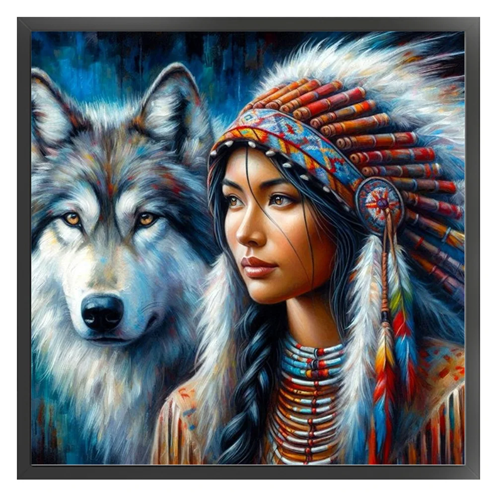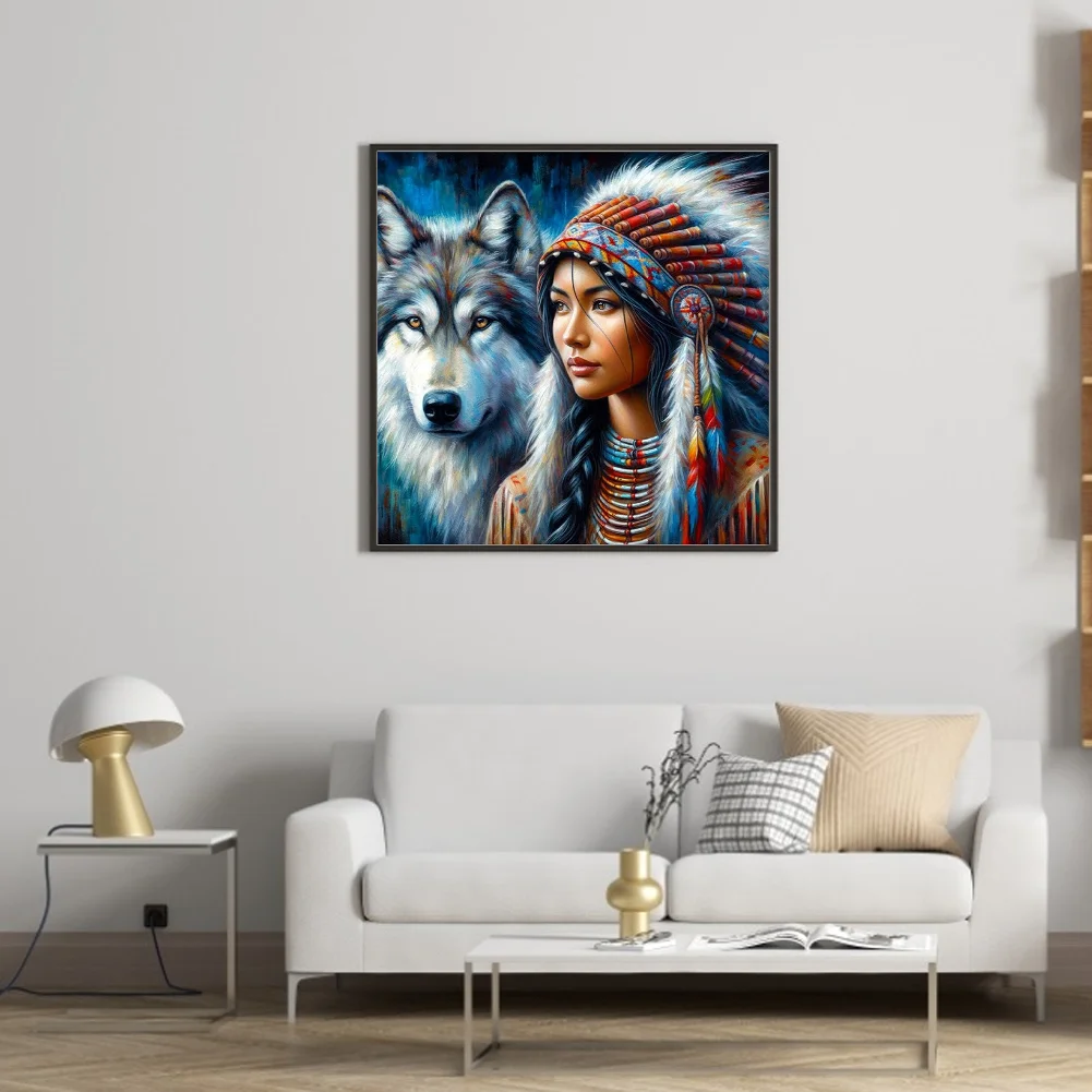 11CT Full Stamped Cross Stitch - Girl And Wolf (45*45cm)