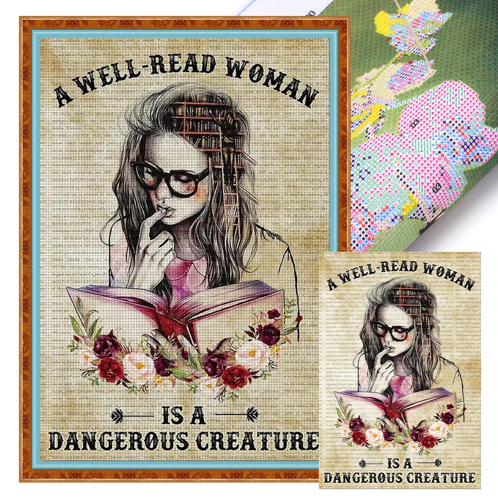 11CT Full Stamped Cross Stitch - Girl Reading A Book (40*60cm)