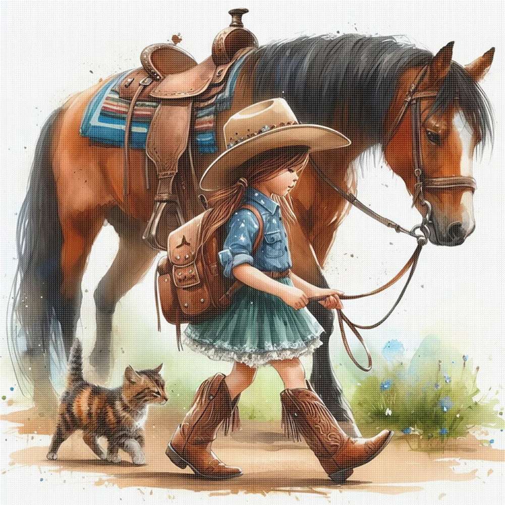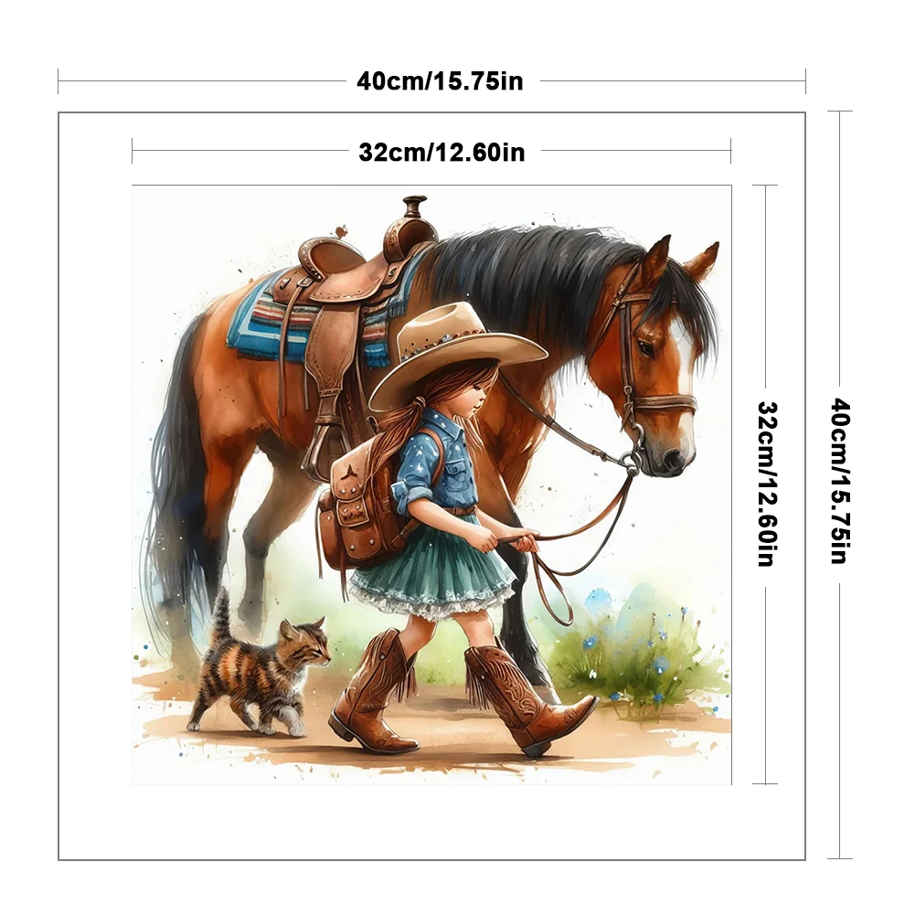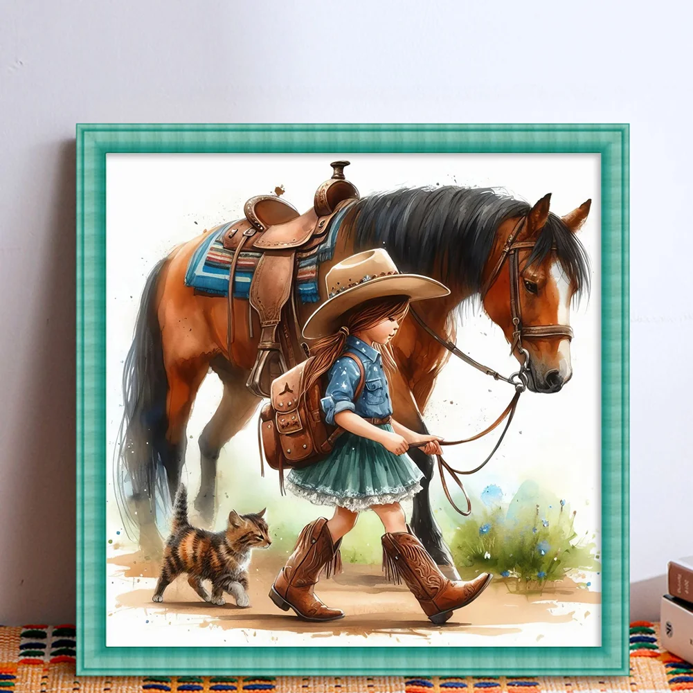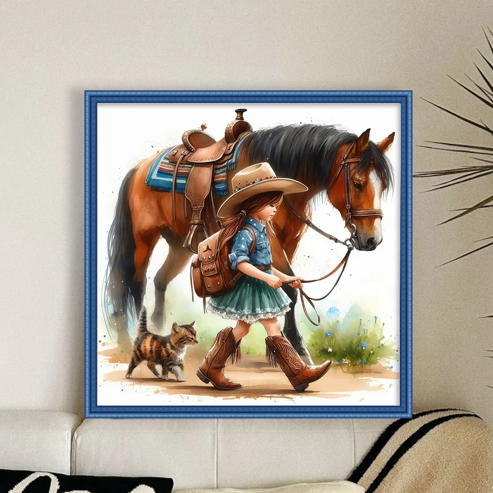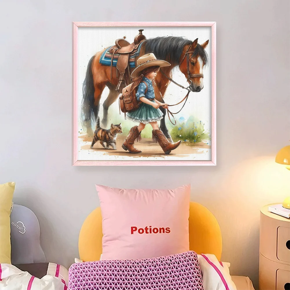 11CT Full Stamped Cross Stitch - Girl With Horse (40*40cm)