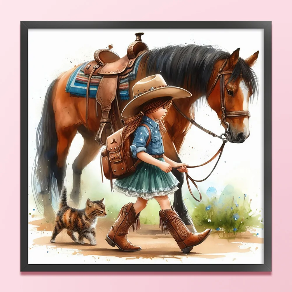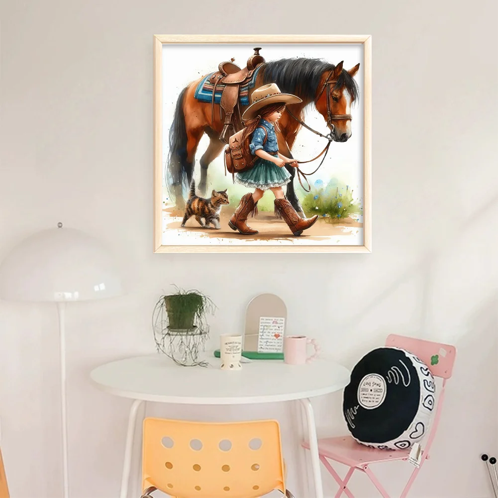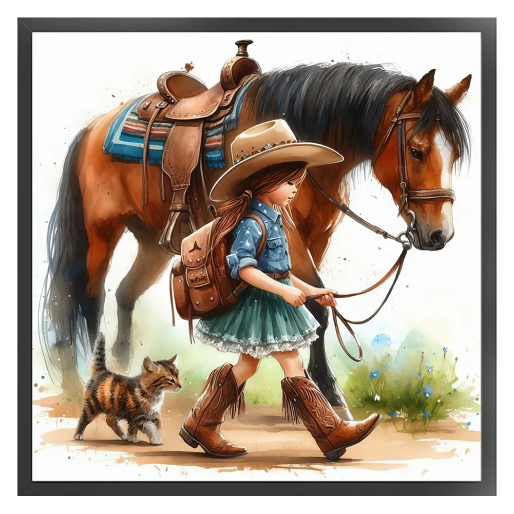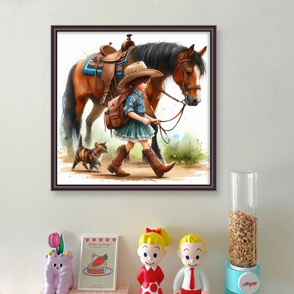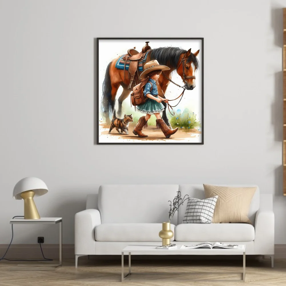 11CT Full Stamped Cross Stitch - Girl With Horse (40*40cm)