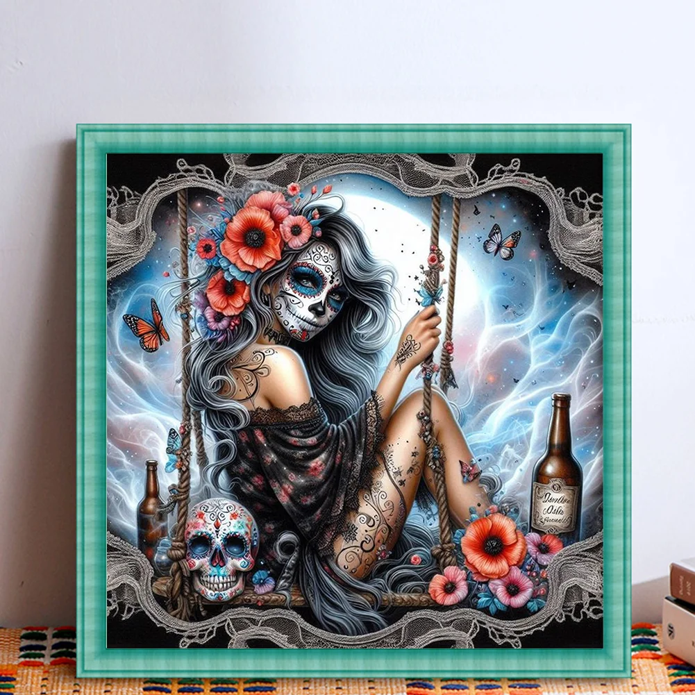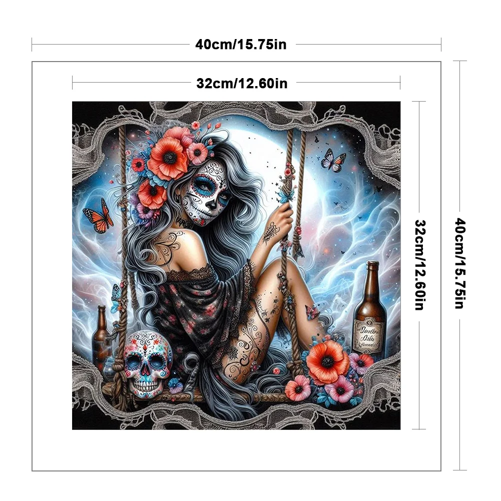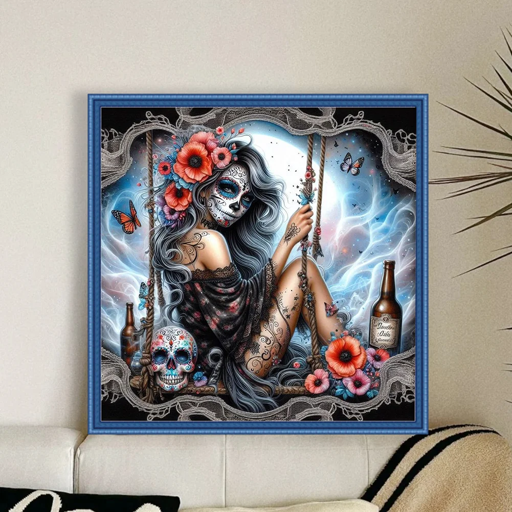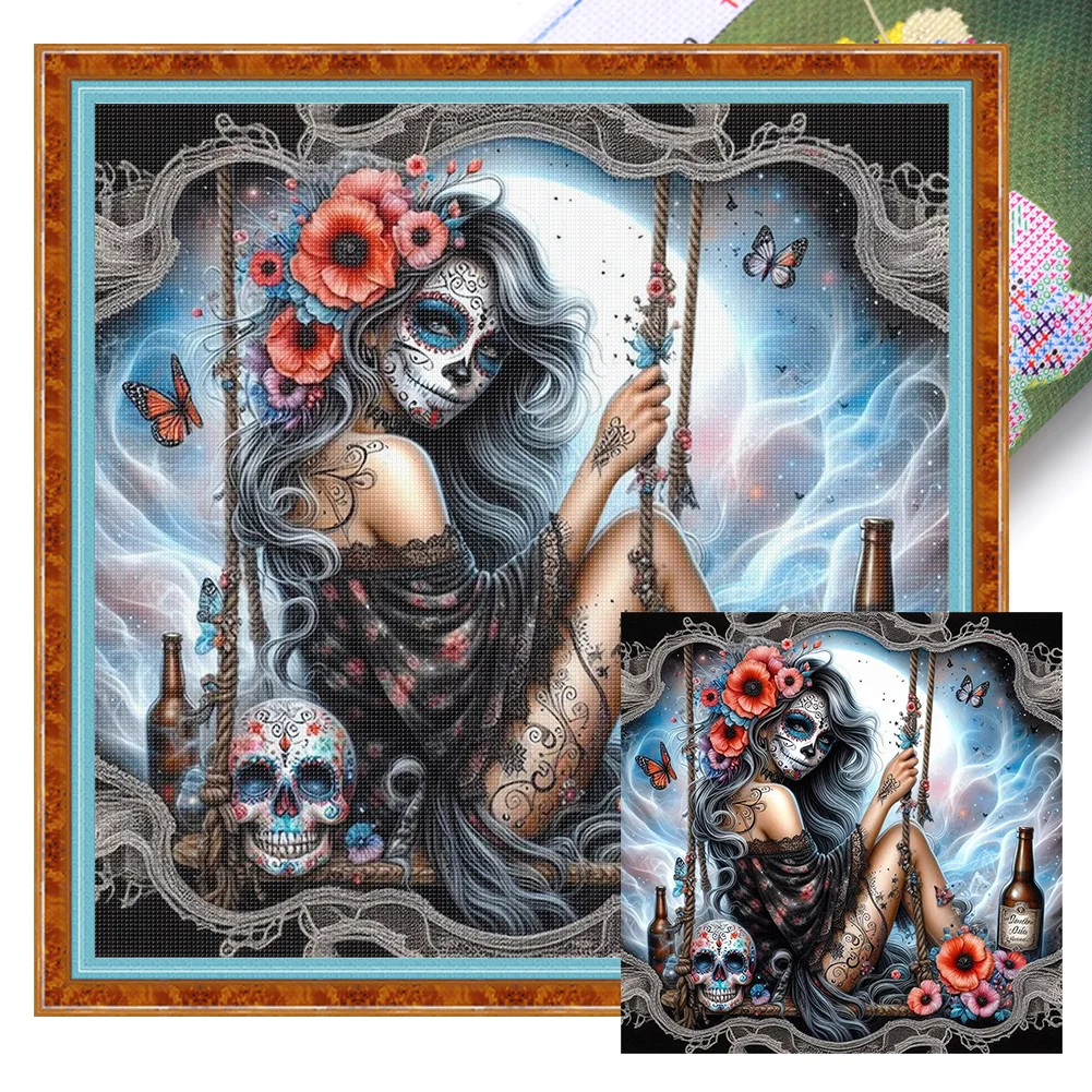 11CT Full Stamped Cross Stitch - Halloween Skull Girls (40*40cm)
