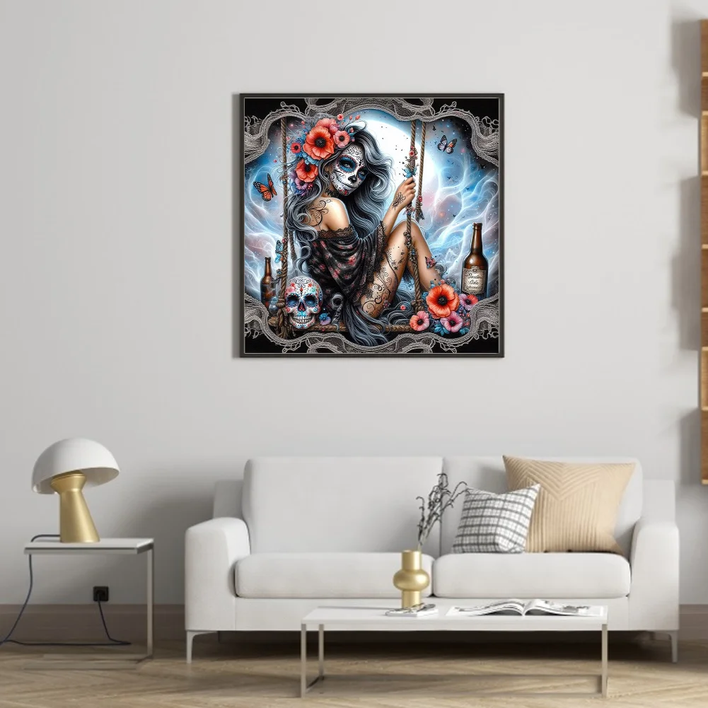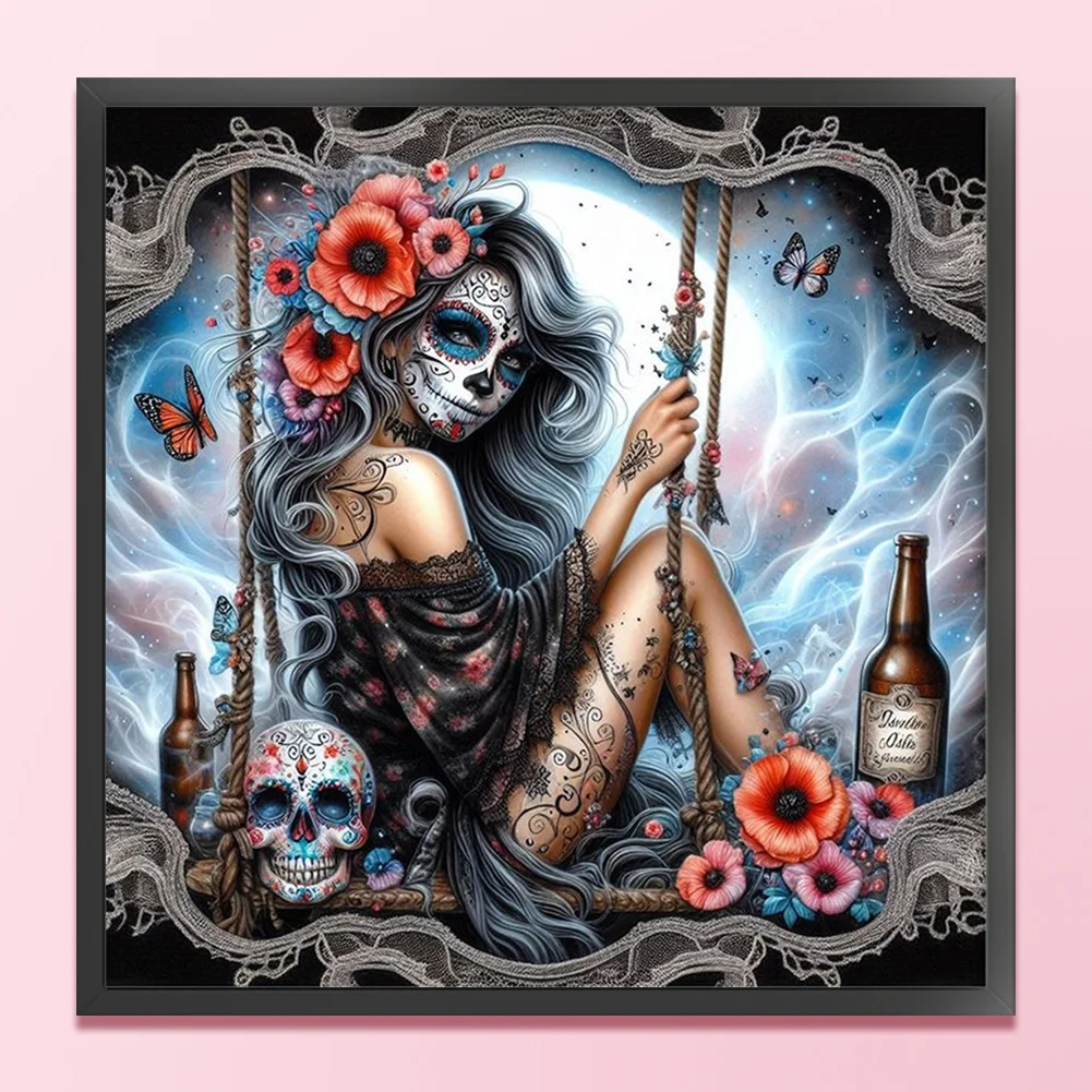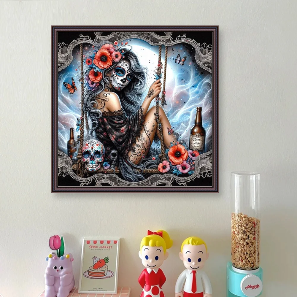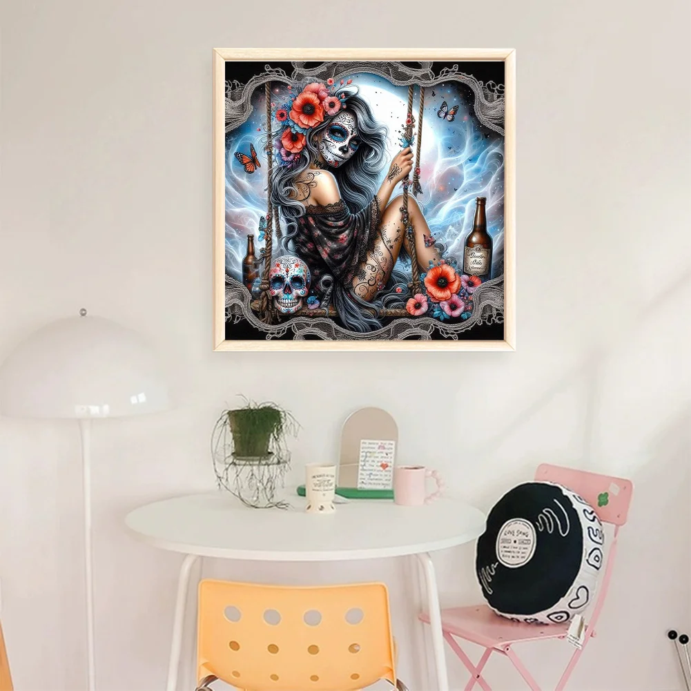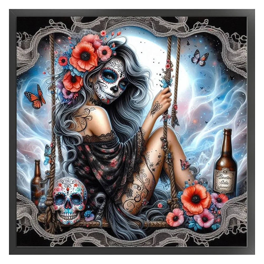 11CT Full Stamped Cross Stitch - Halloween Skull Girls (40*40cm)