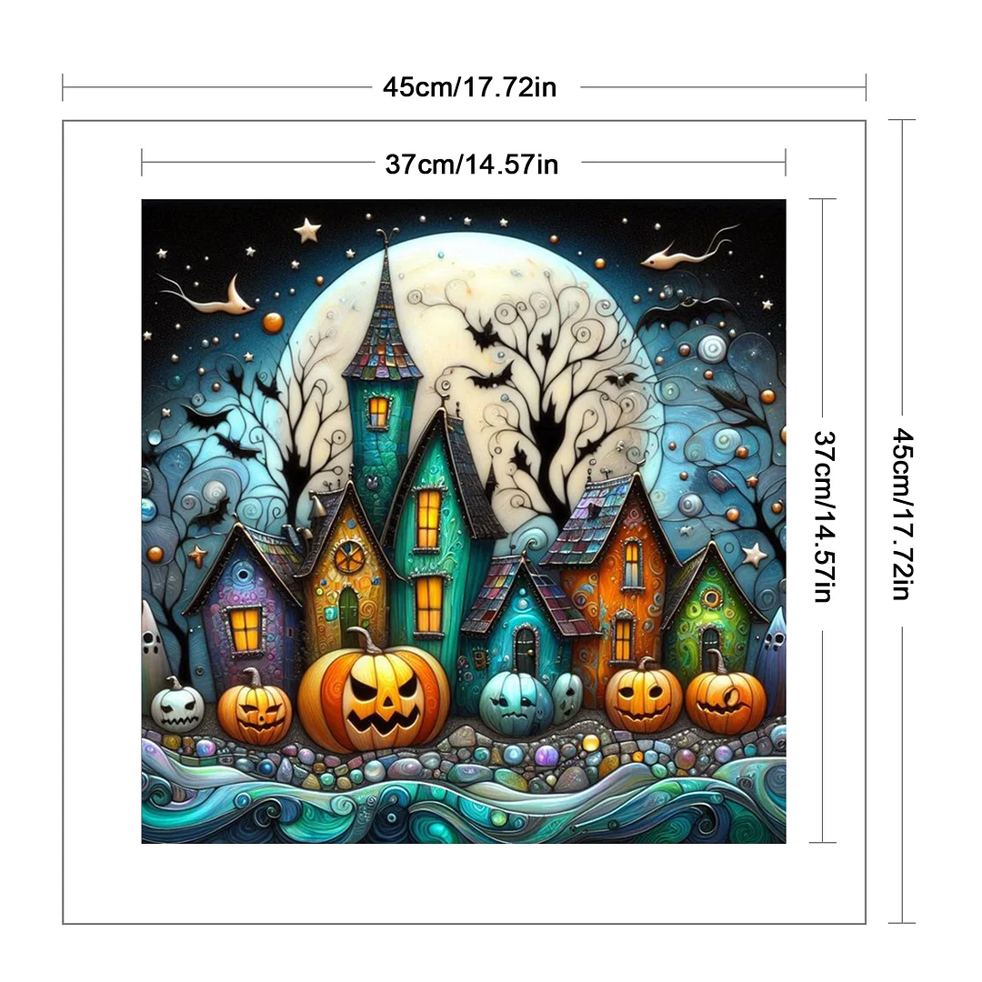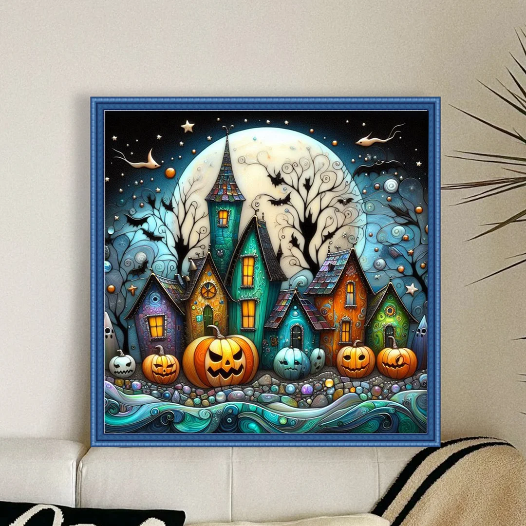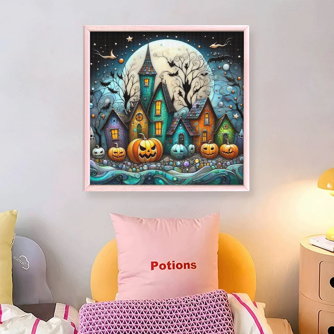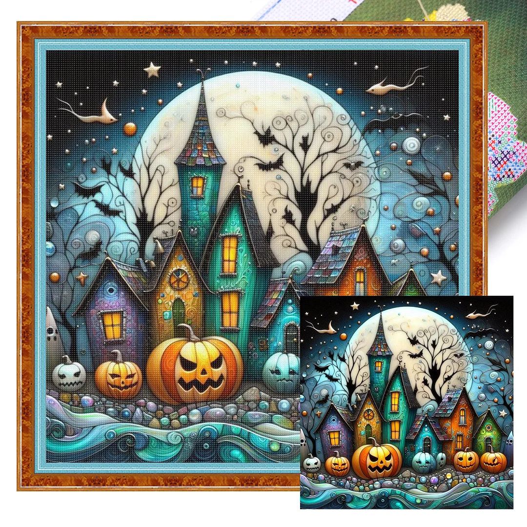 11CT Full Stamped Cross Stitch - Halloween Town (45X45CM)