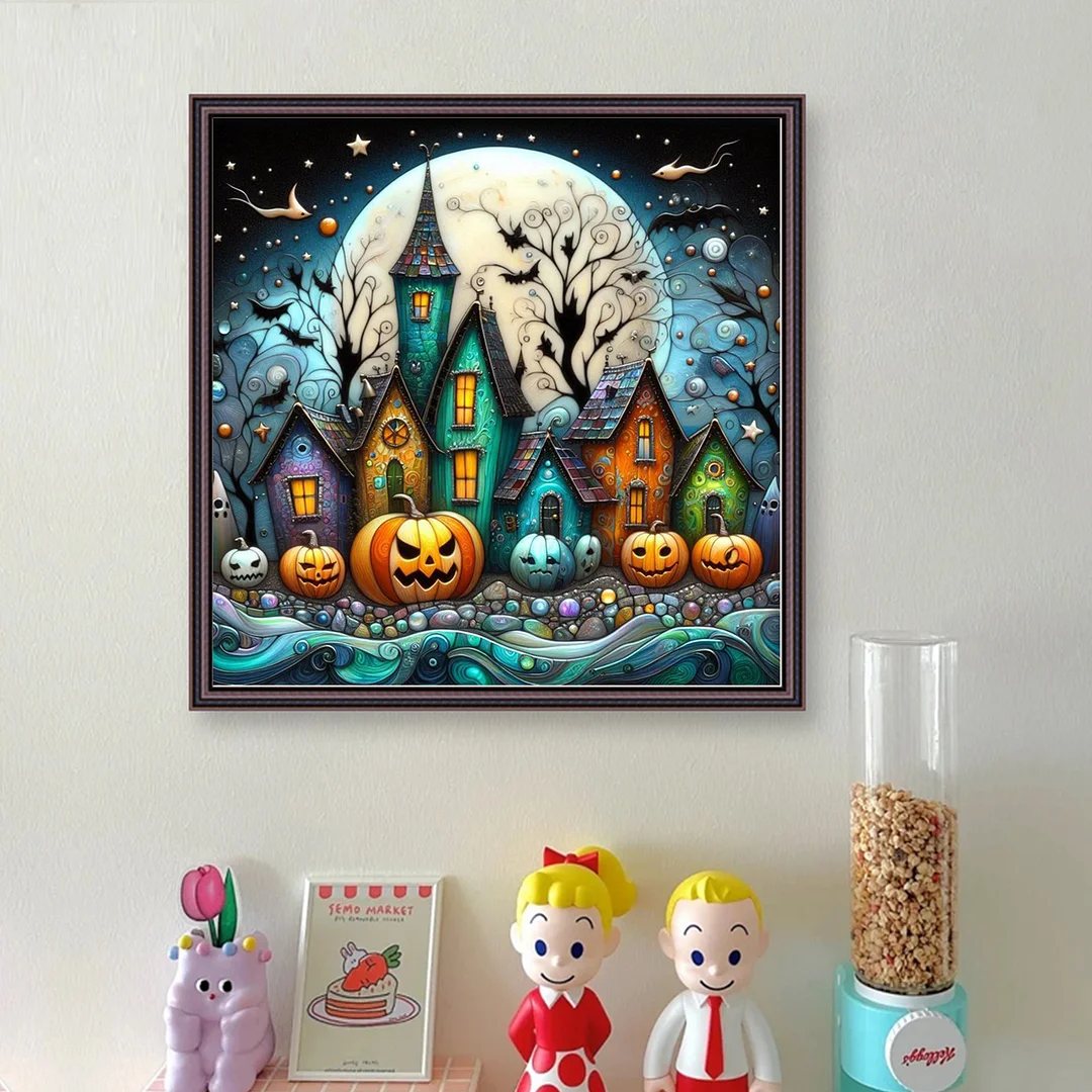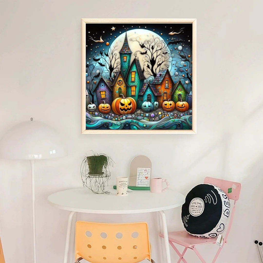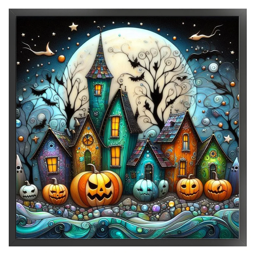 11CT Full Stamped Cross Stitch - Halloween Town (45X45CM)