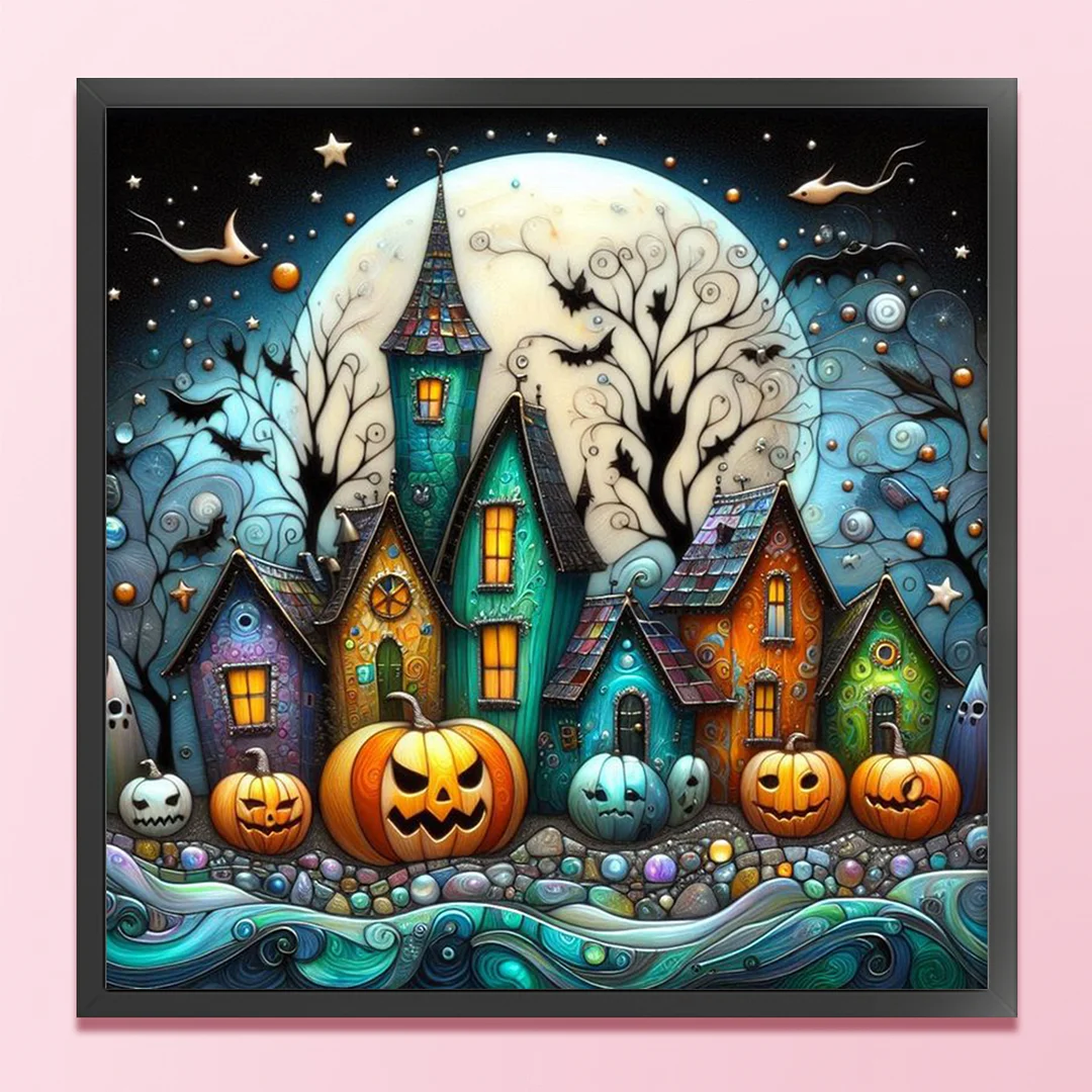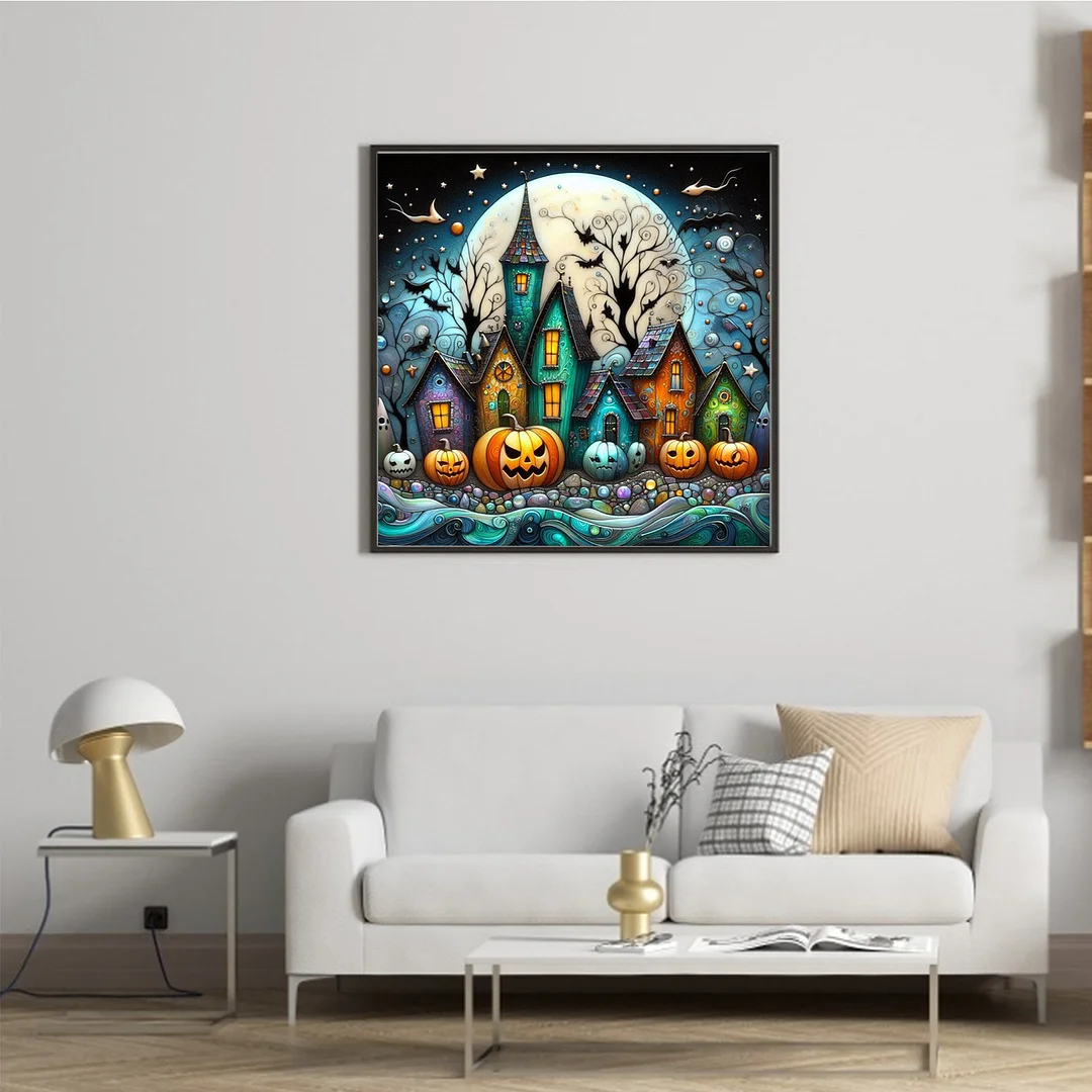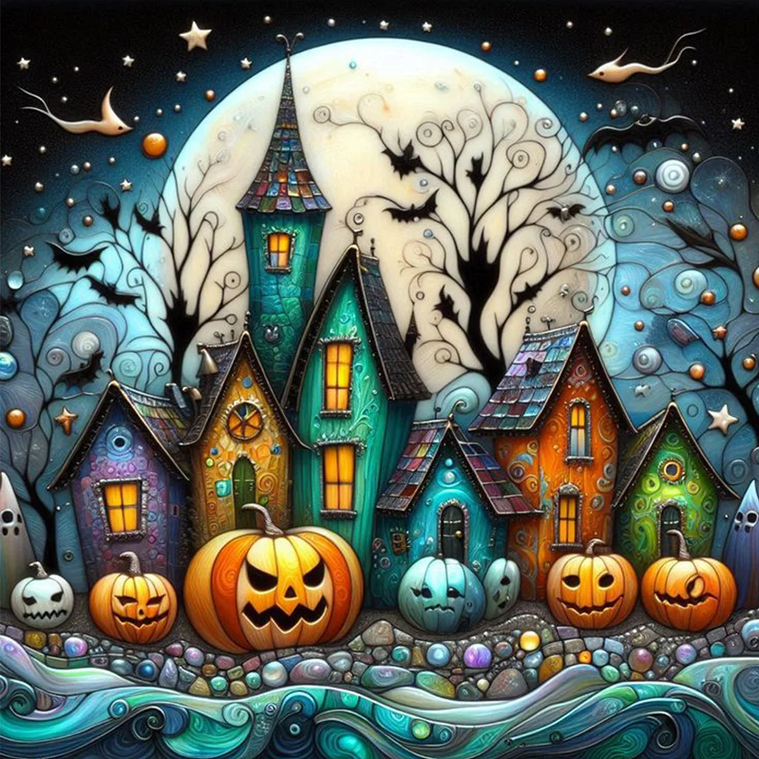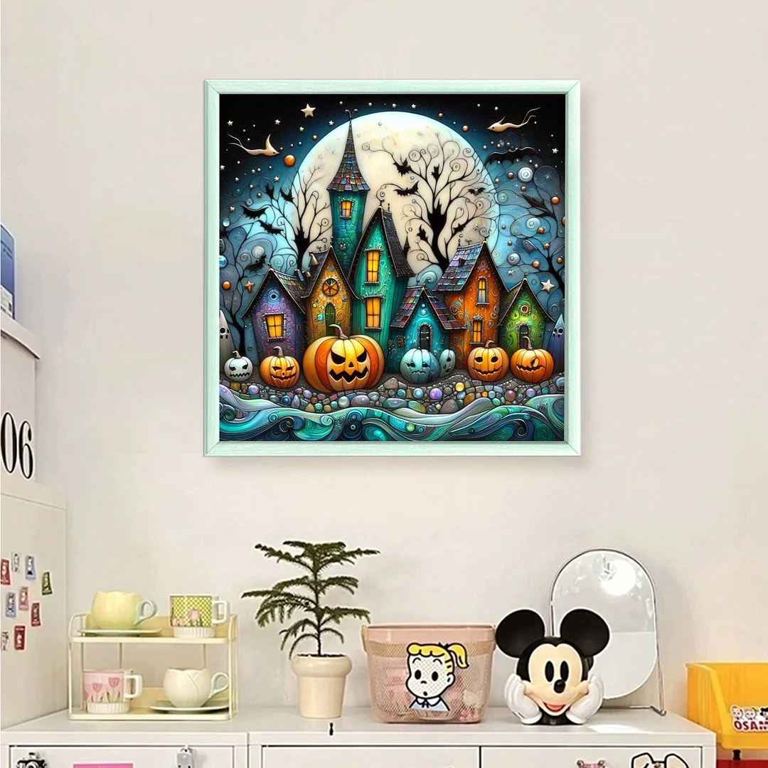 11CT Full Stamped Cross Stitch - Halloween Town (45X45CM)