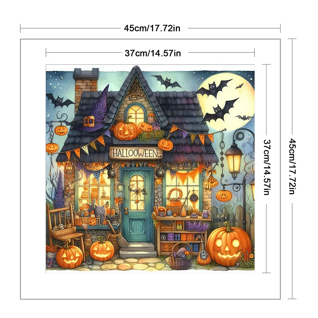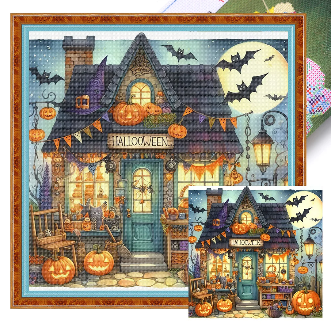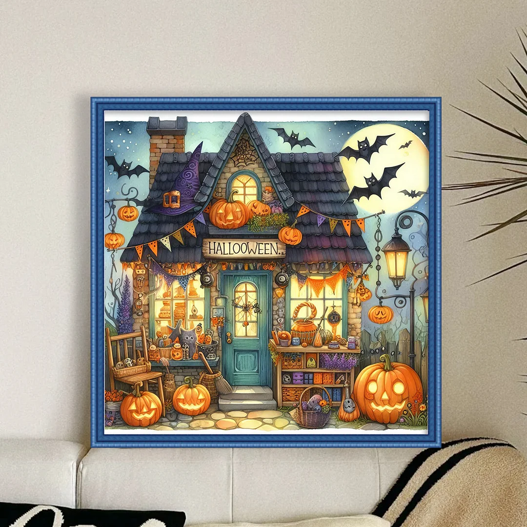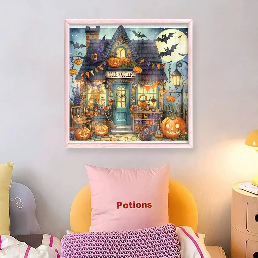 11CT Full Stamped Cross Stitch - Halloween Town (45X45CM)