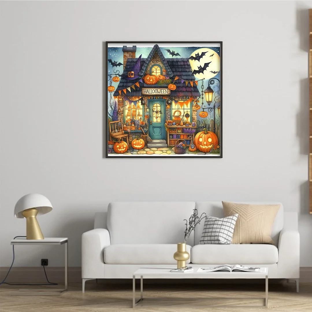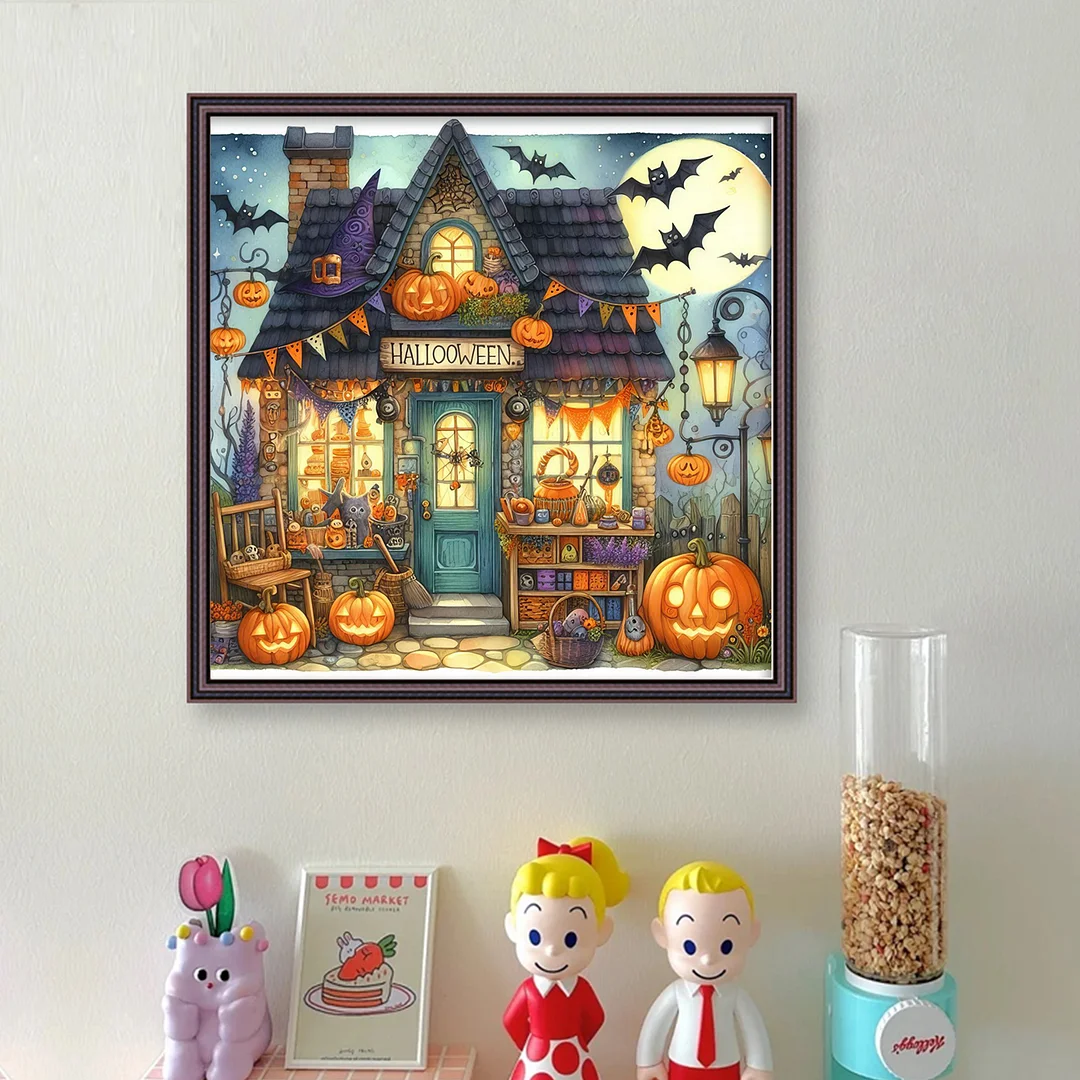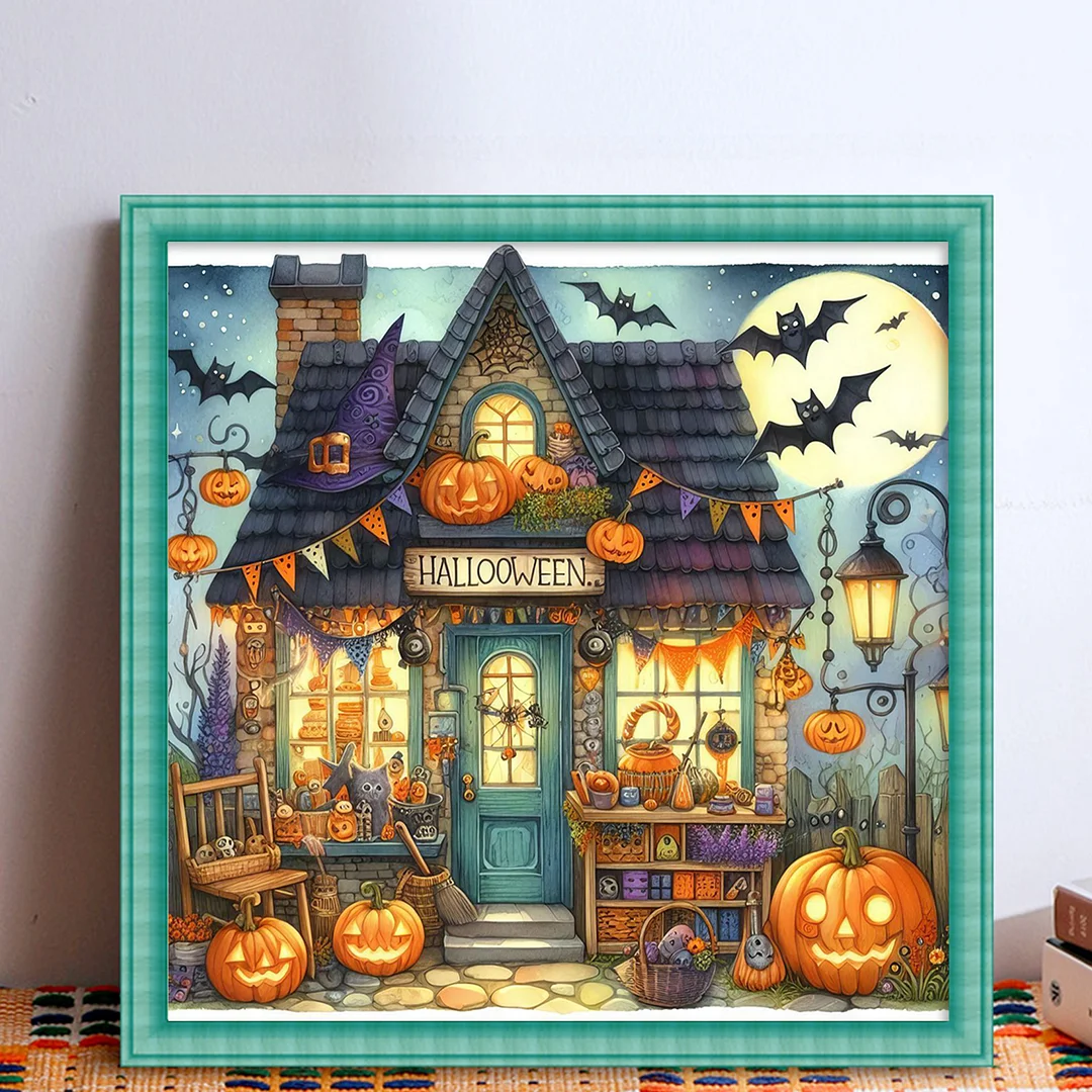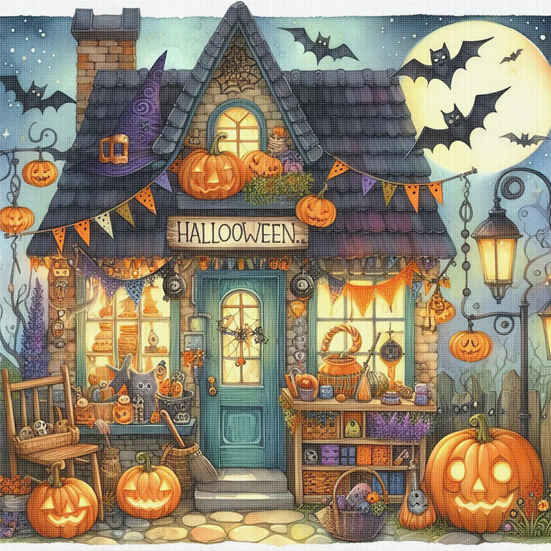 11CT Full Stamped Cross Stitch - Halloween Town (45X45CM)