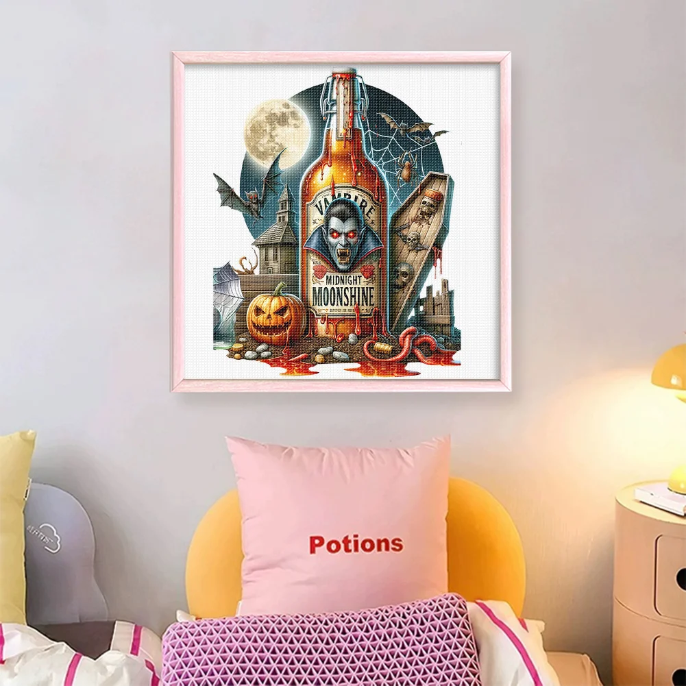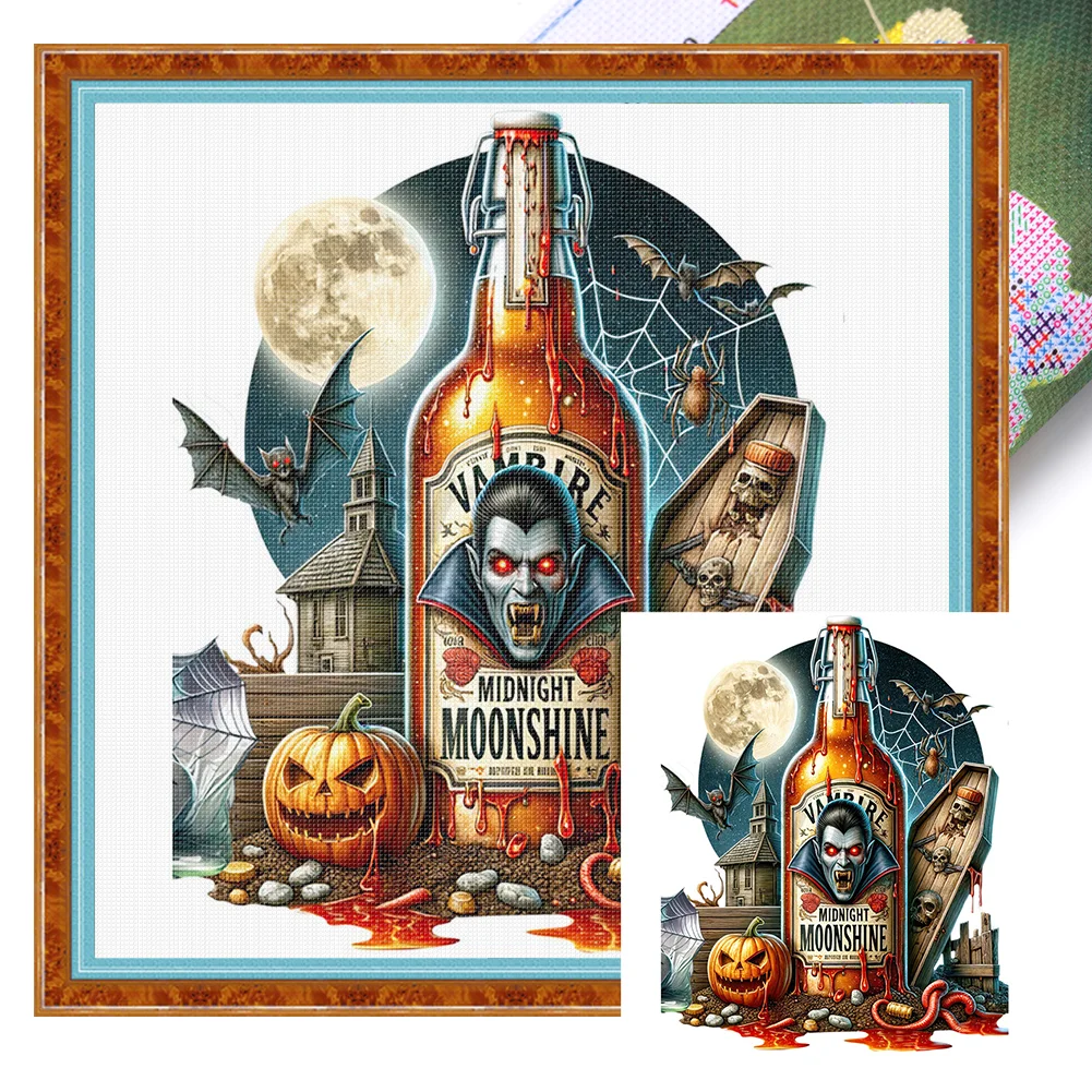 11CT Full Stamped Cross Stitch - Halloween Wine Glasses (50*50cm)