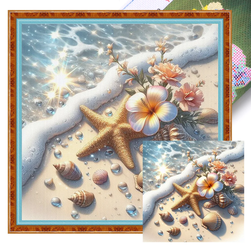 11CT Full Stamped Cross Stitch Kit - Beach Scenery (45*45cm)