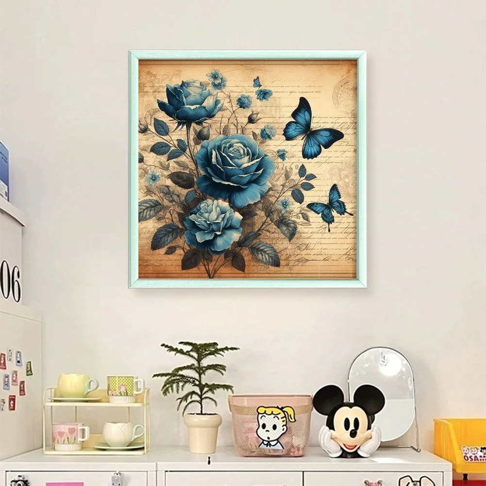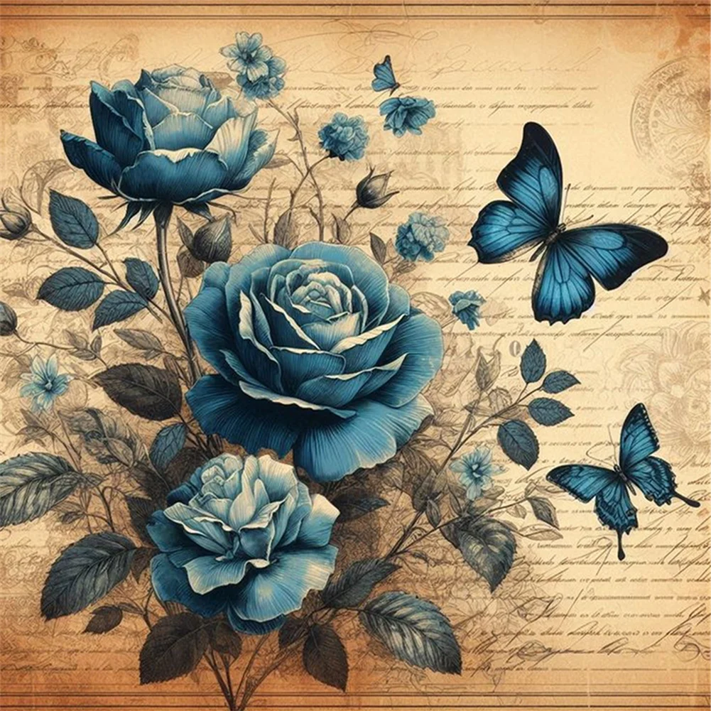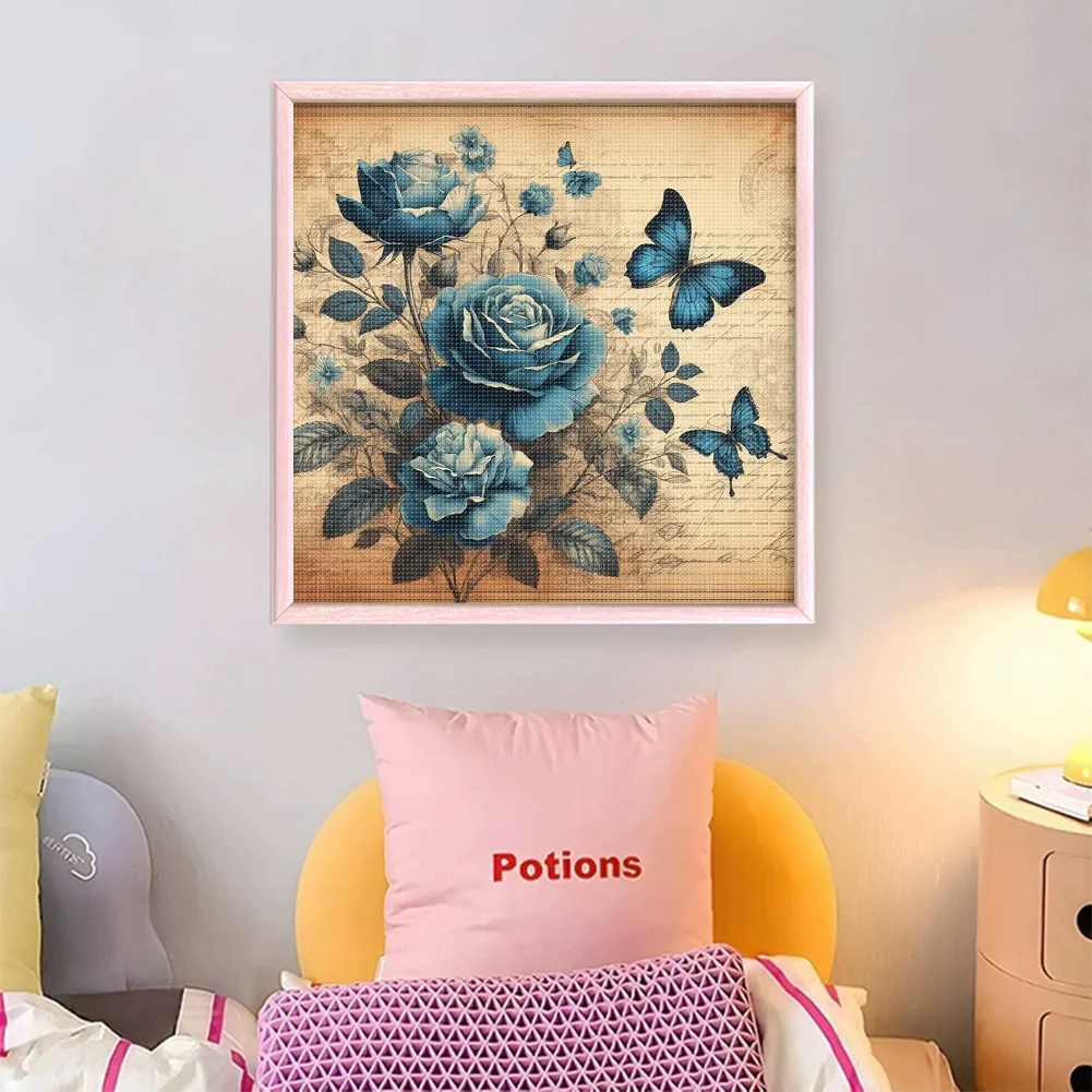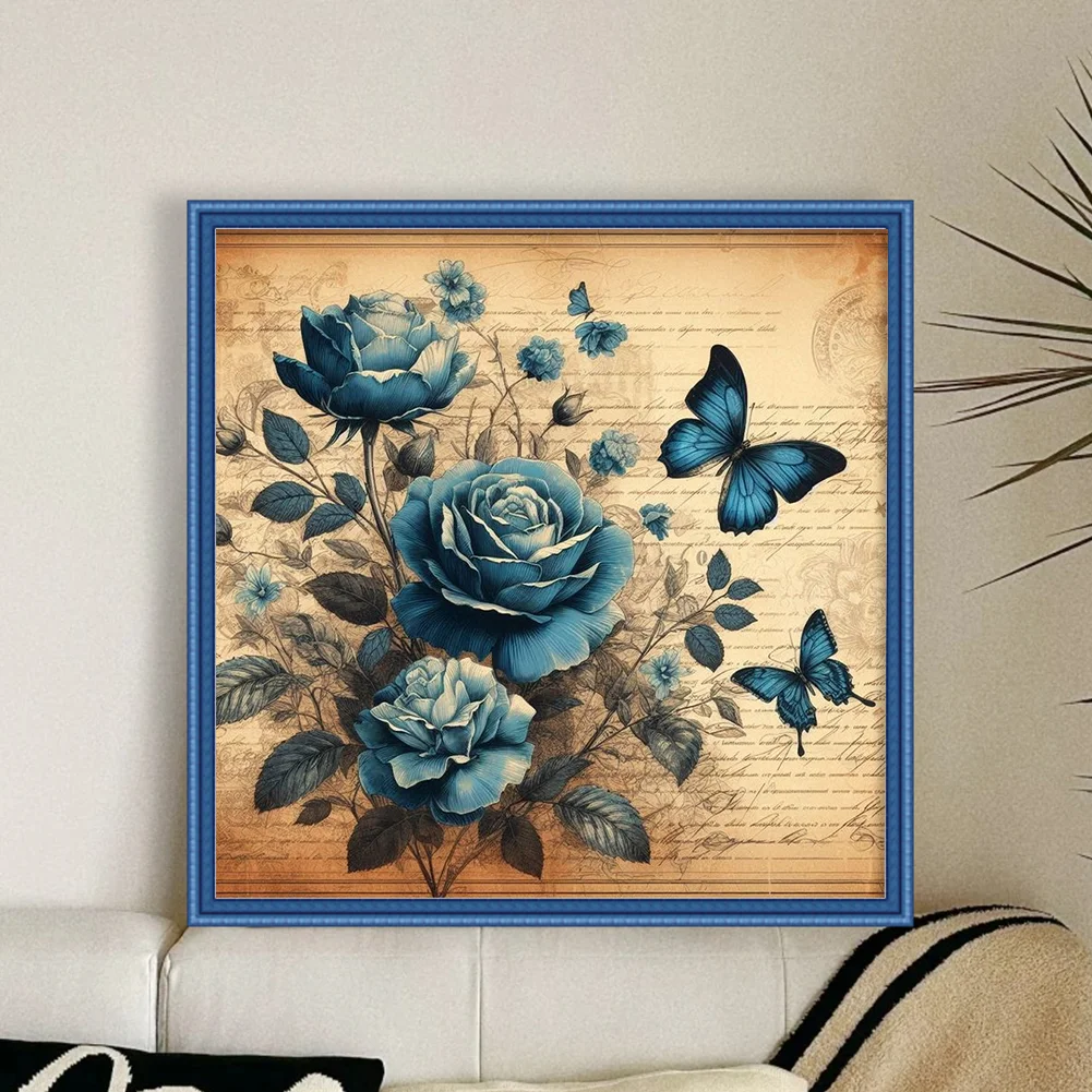11CT Full Stamped Cross Stitch Kit - Blue Rose Butterfly (40*40cm)