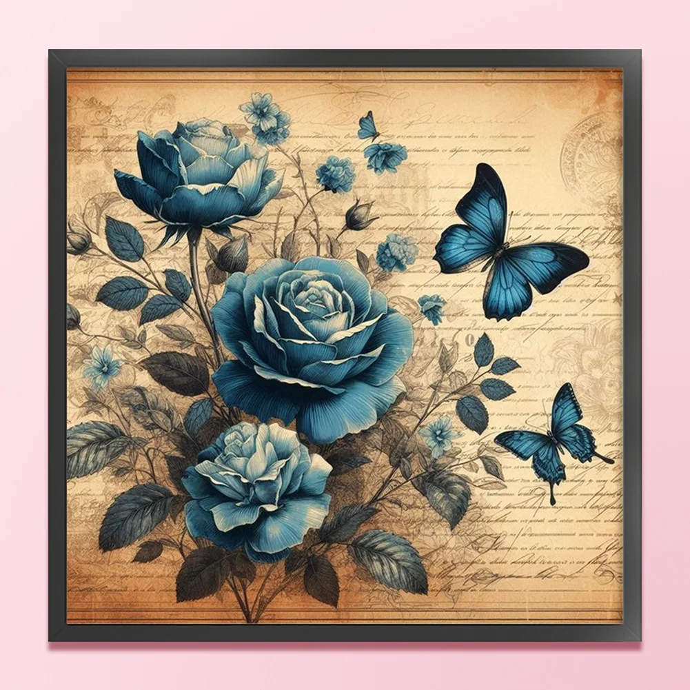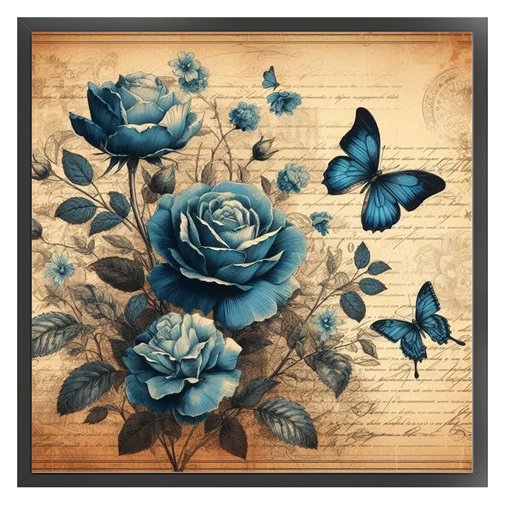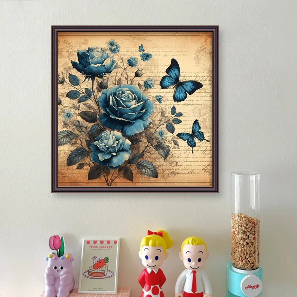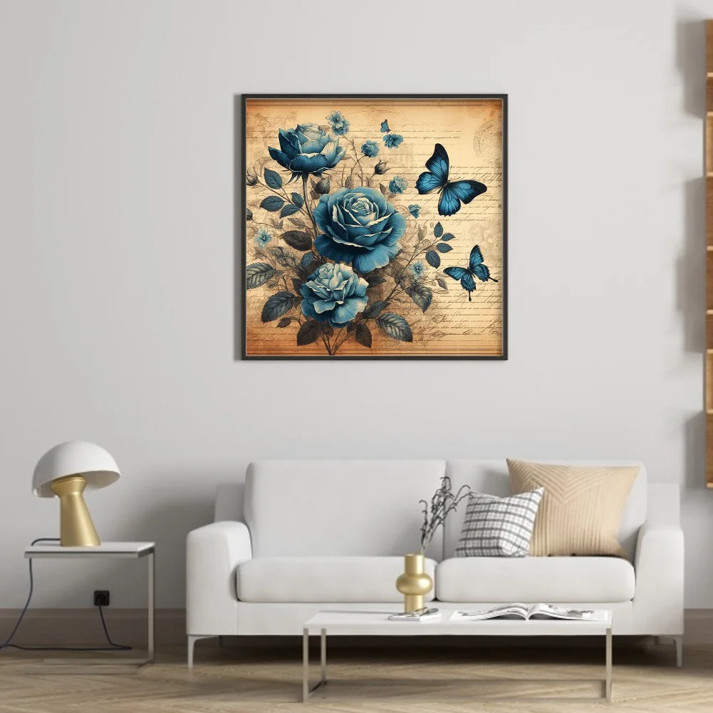 11CT Full Stamped Cross Stitch Kit - Blue Rose Butterfly (40*40cm)