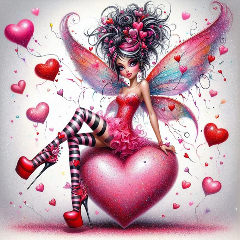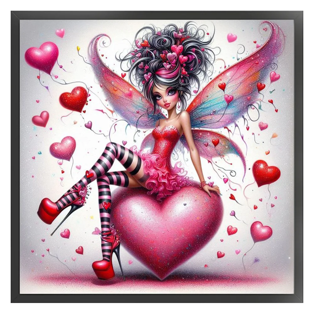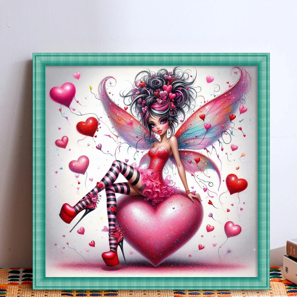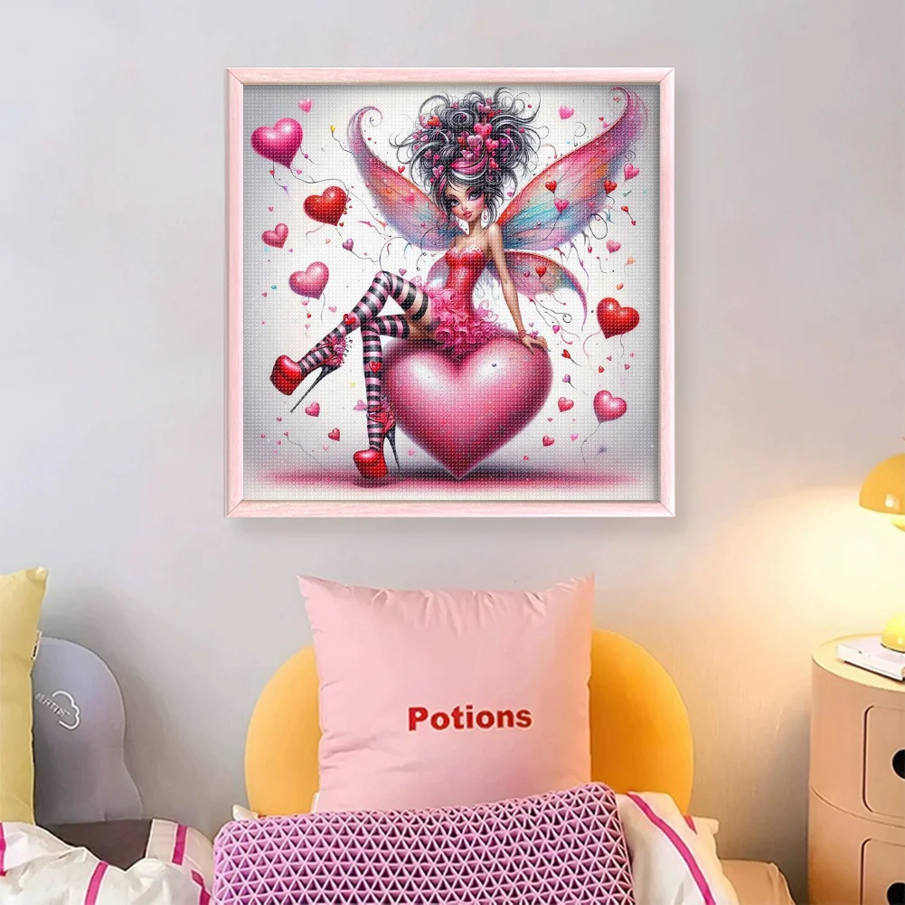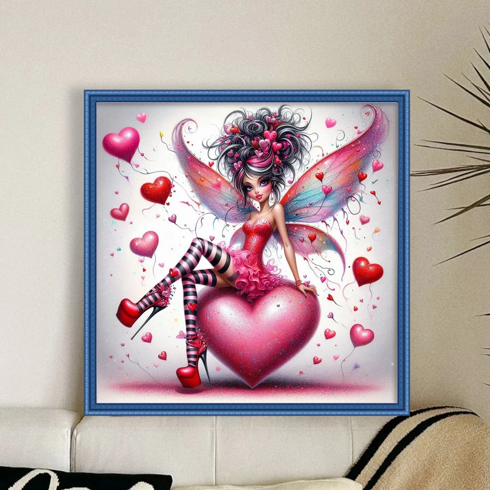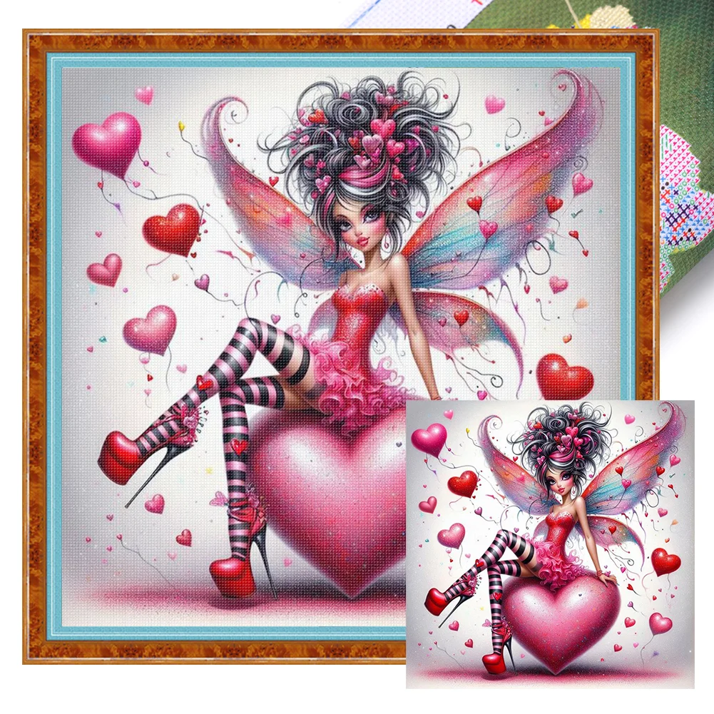 11CT Full Stamped Cross Stitch Kit - Butterfly Girl And Love Heart (40*40cm)