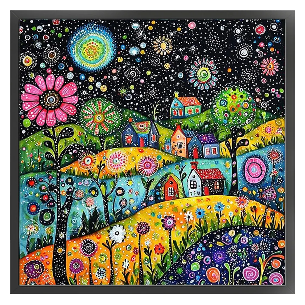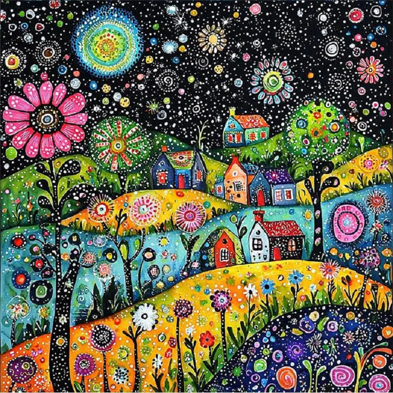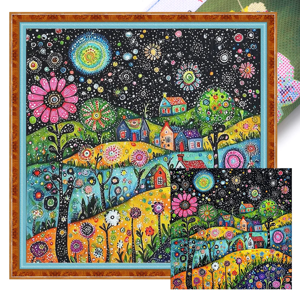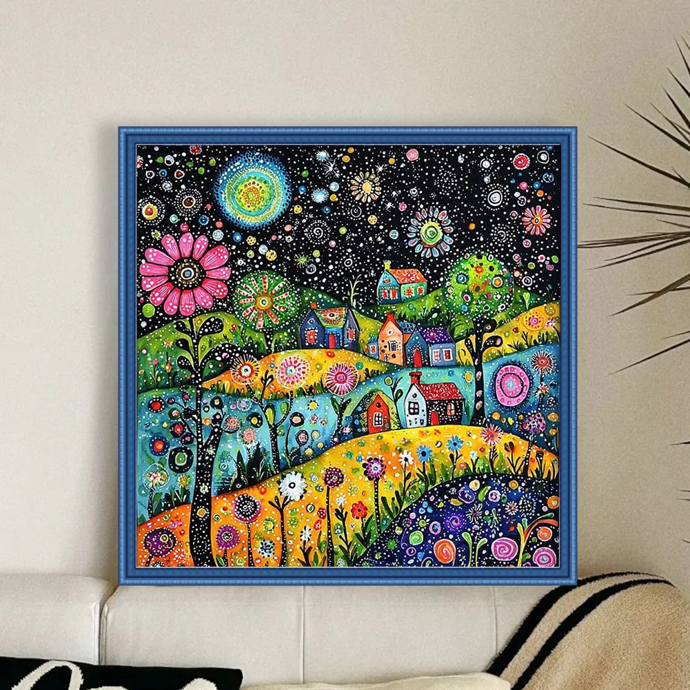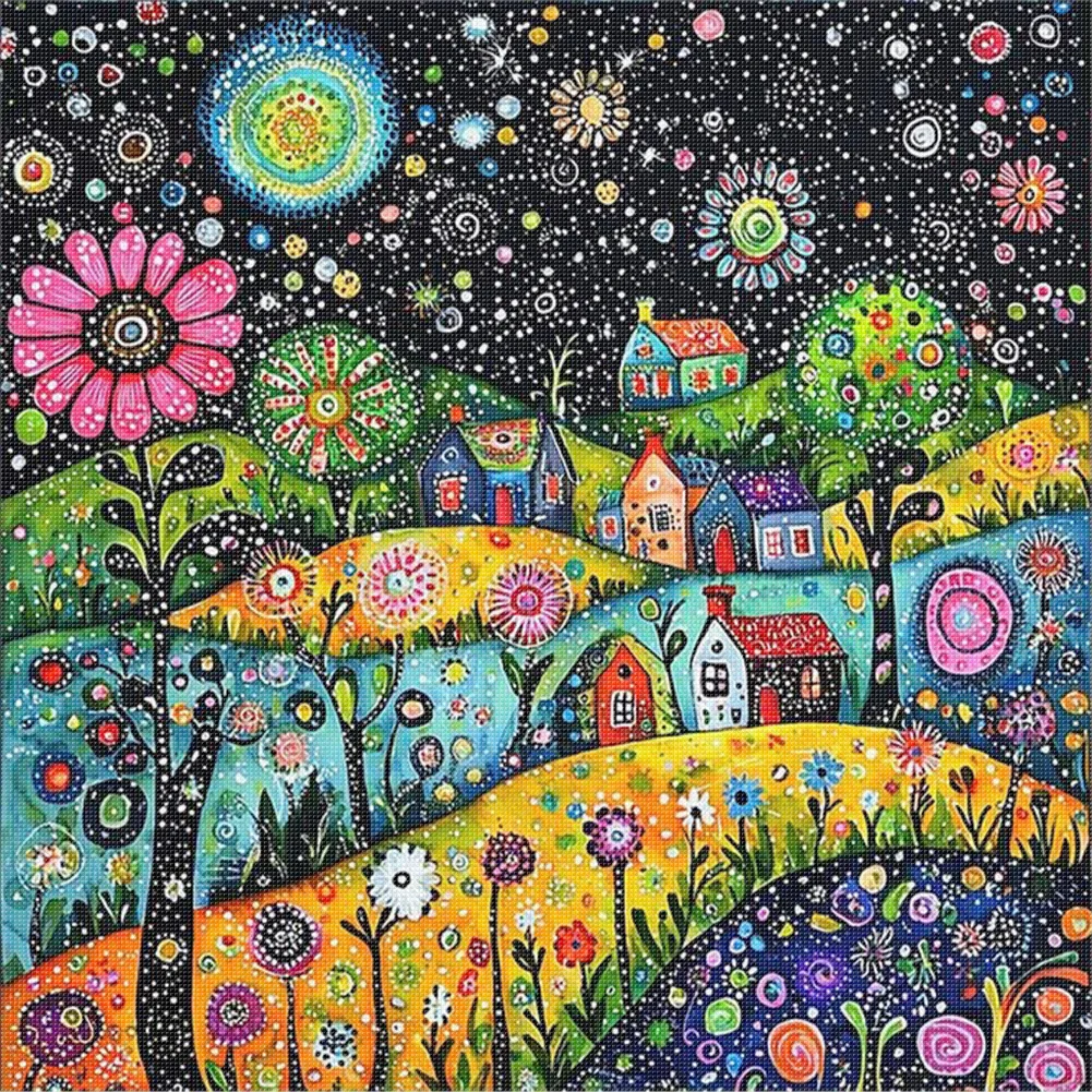 11CT Full Stamped Cross Stitch Kit - Colorful Houses (50*50cm)