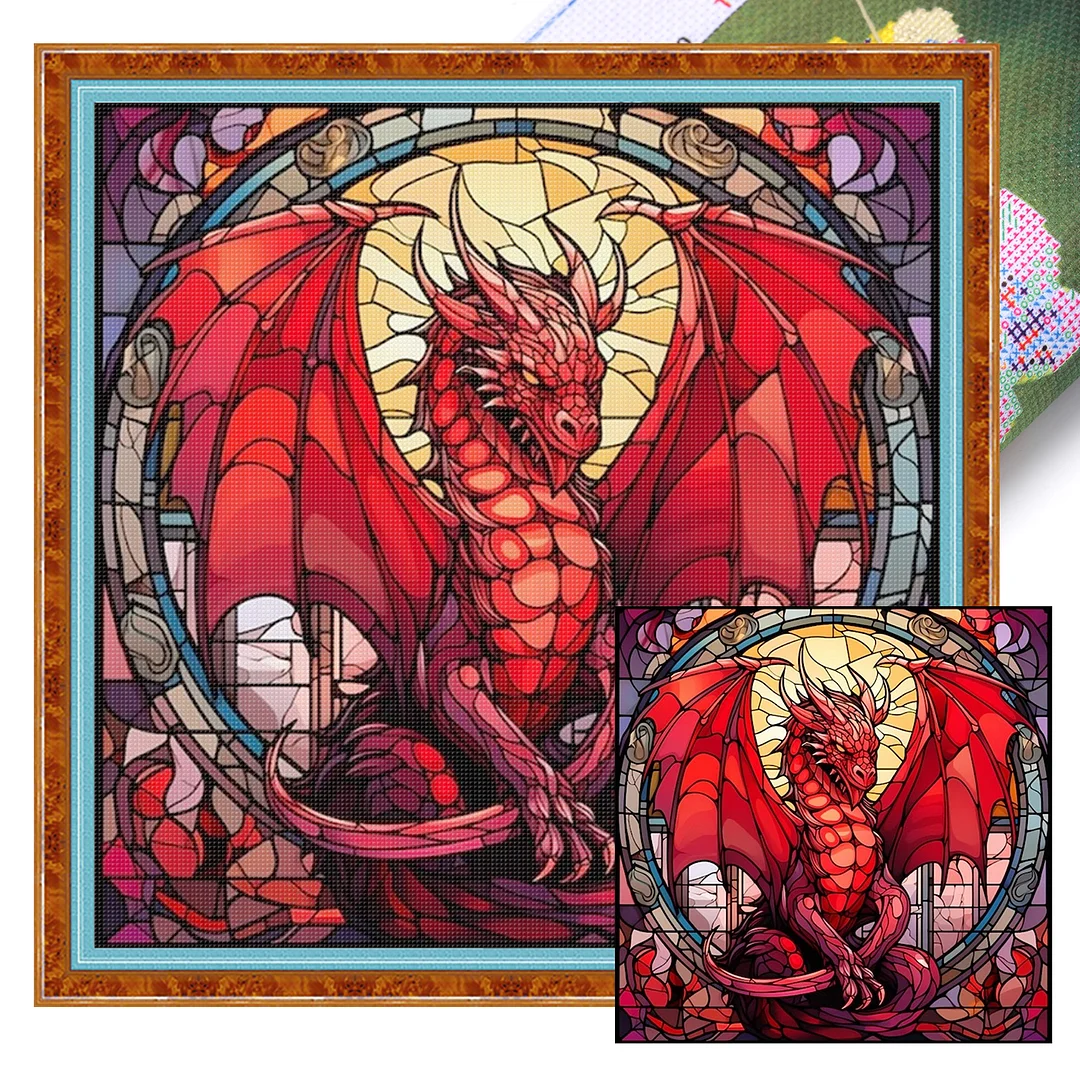 11CT Full Stamped Cross Stitch Kit - Glass Painting-Pterosaur (40*40cm)