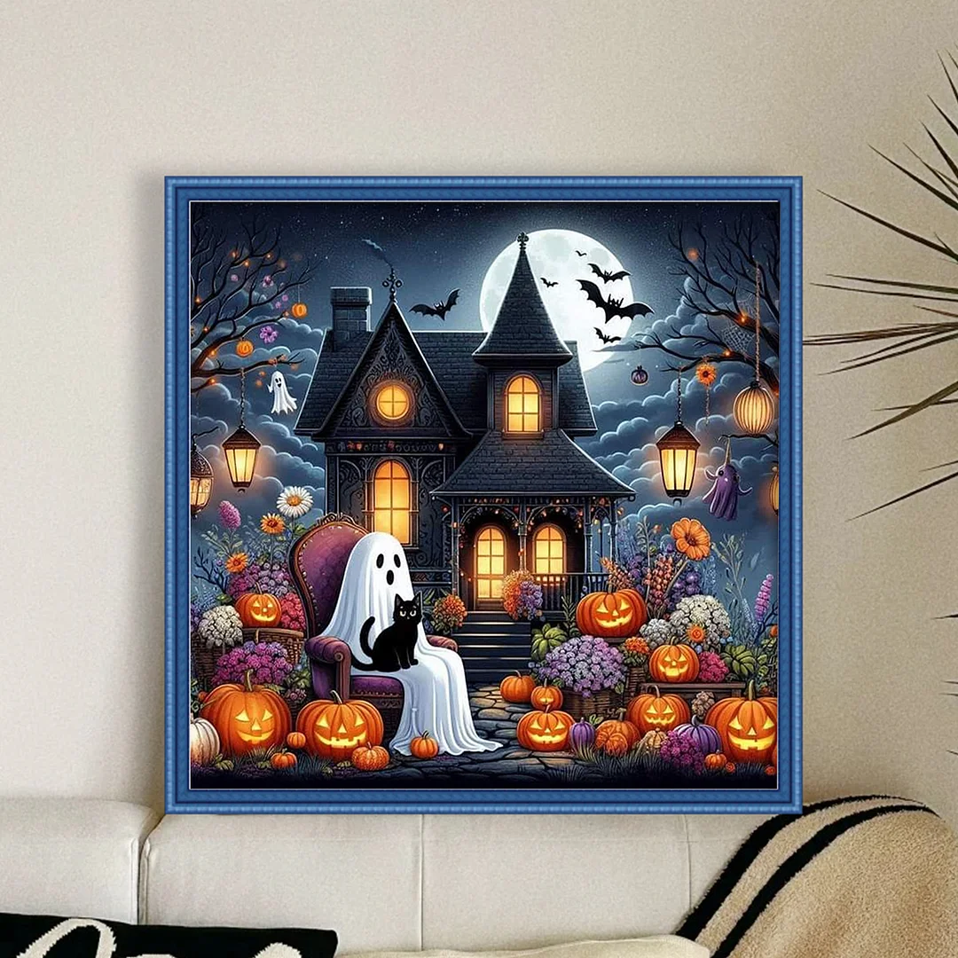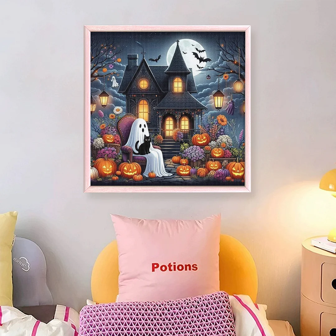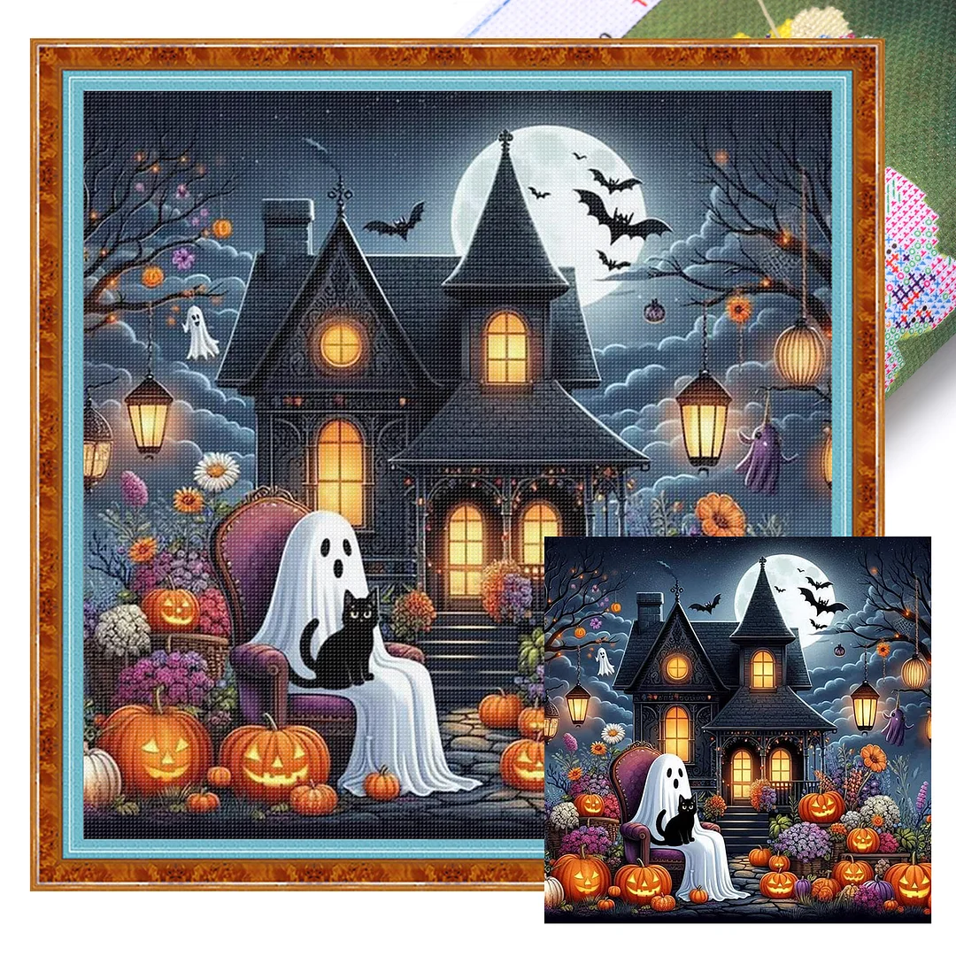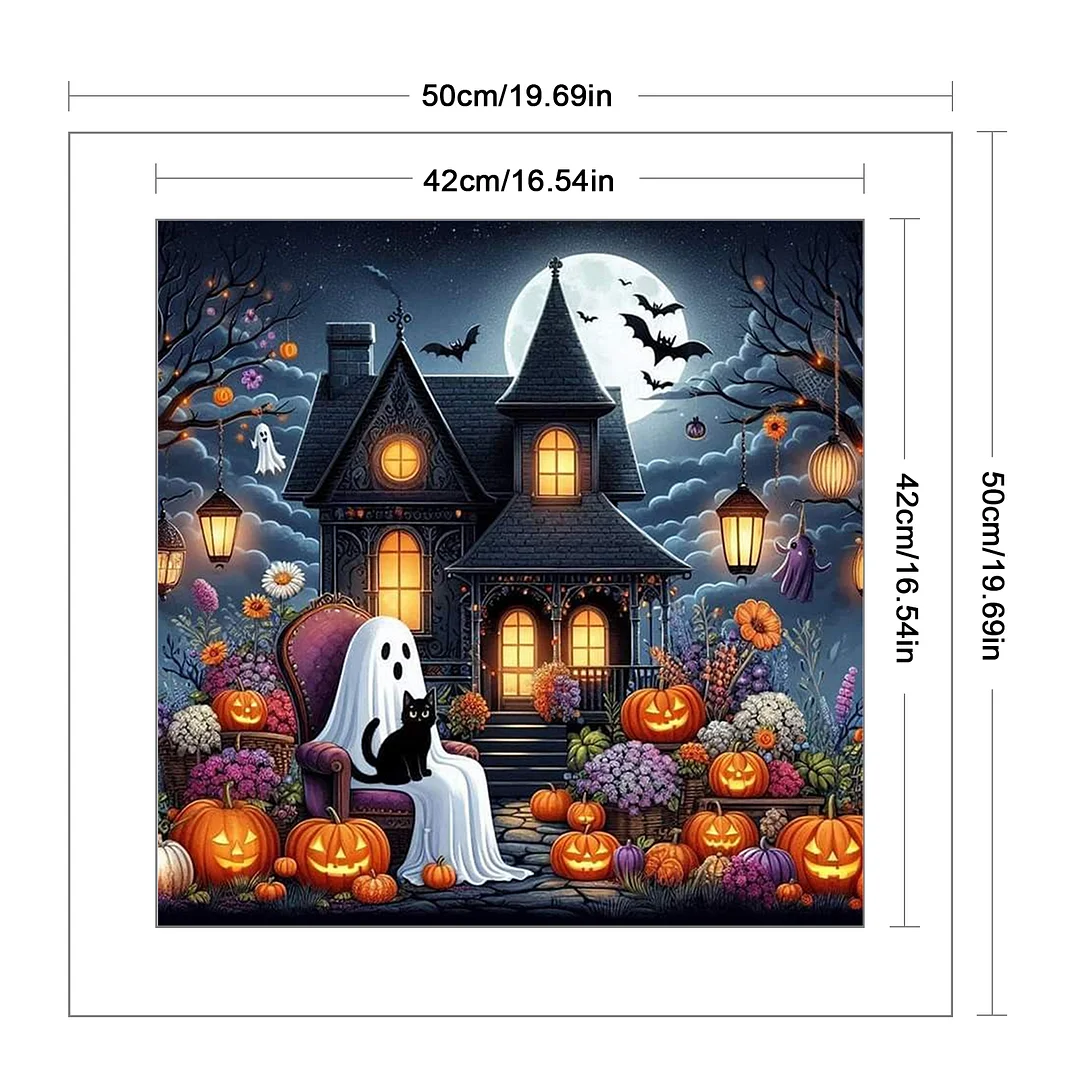 11CT Full Stamped Cross Stitch Kit - Halloween Cabin (50*50cm)