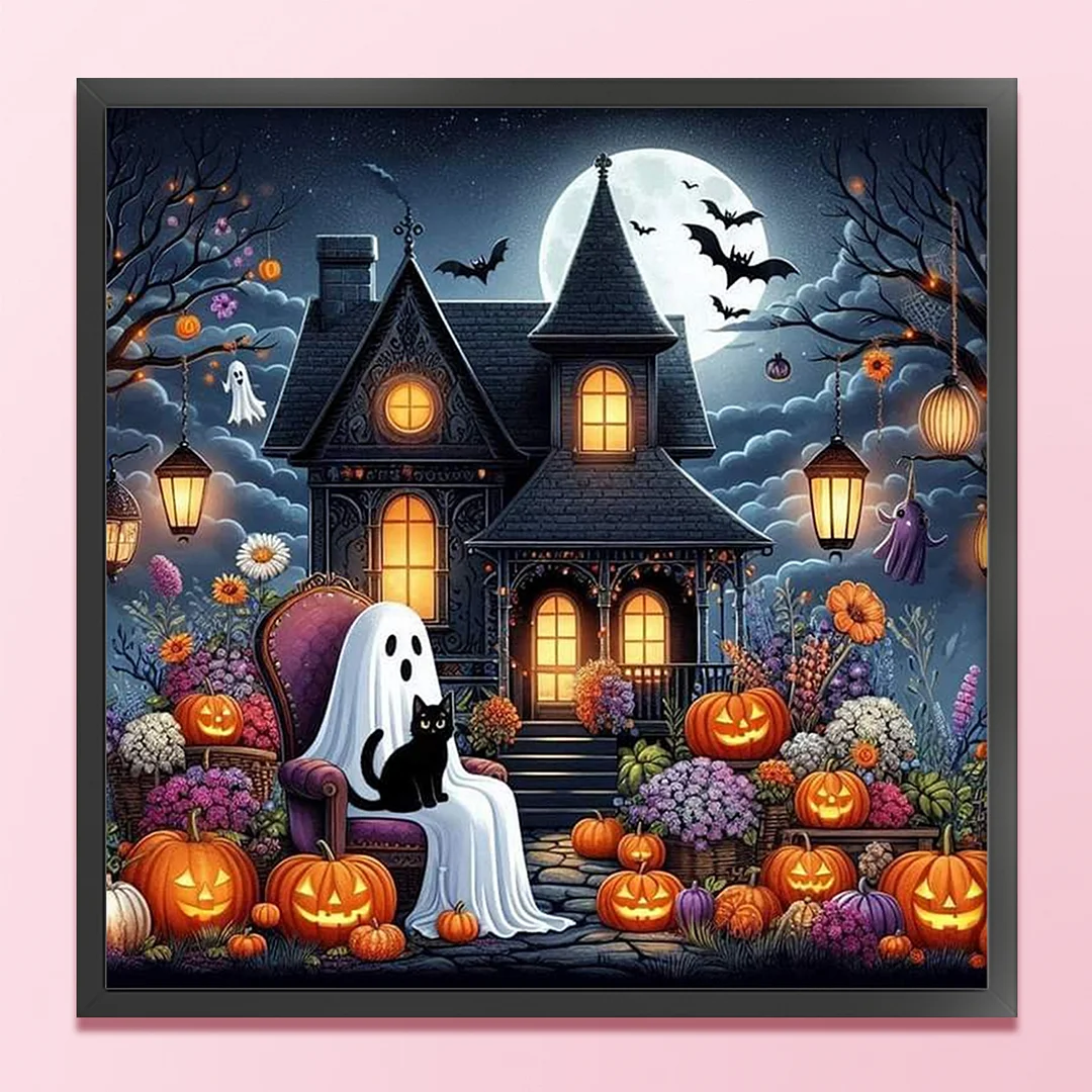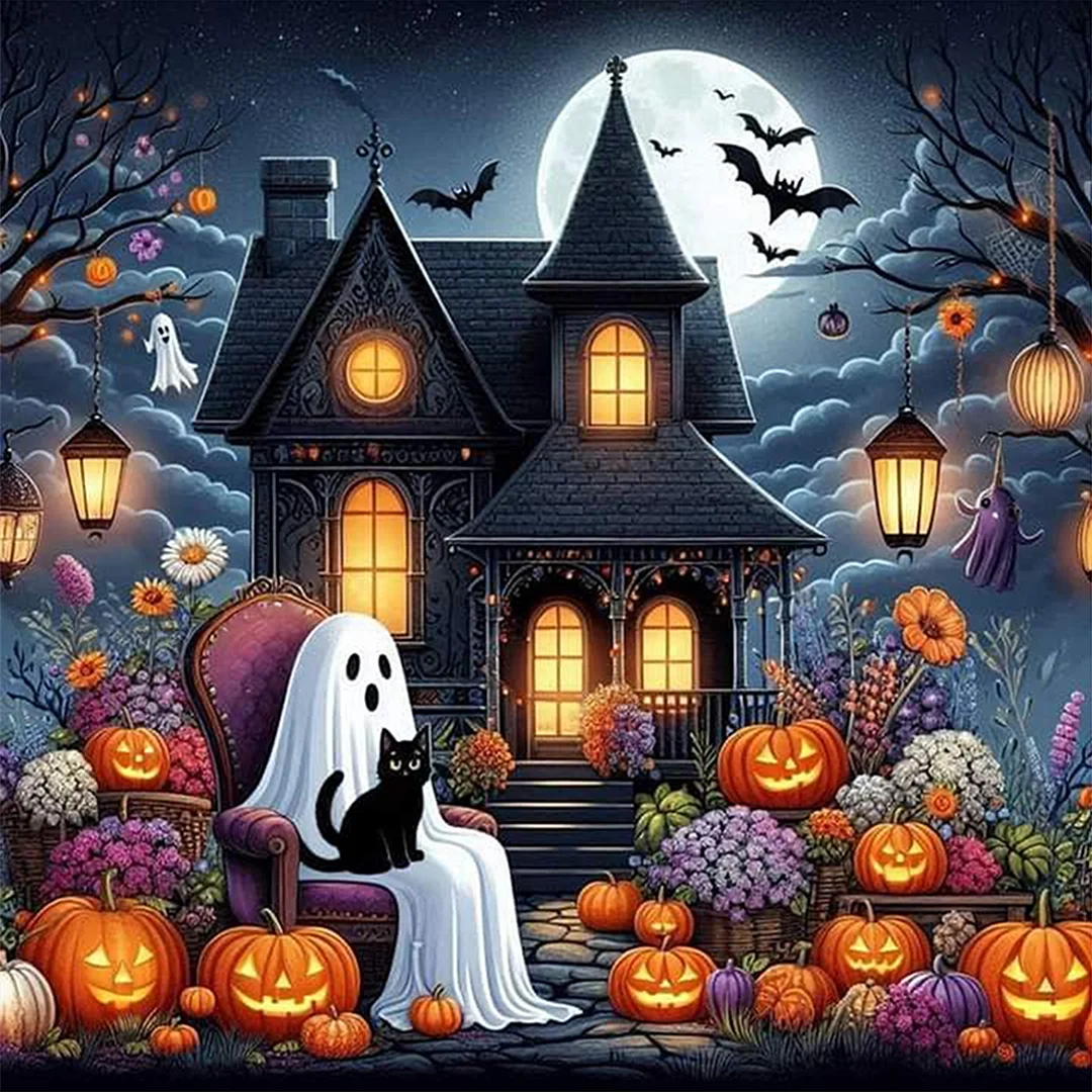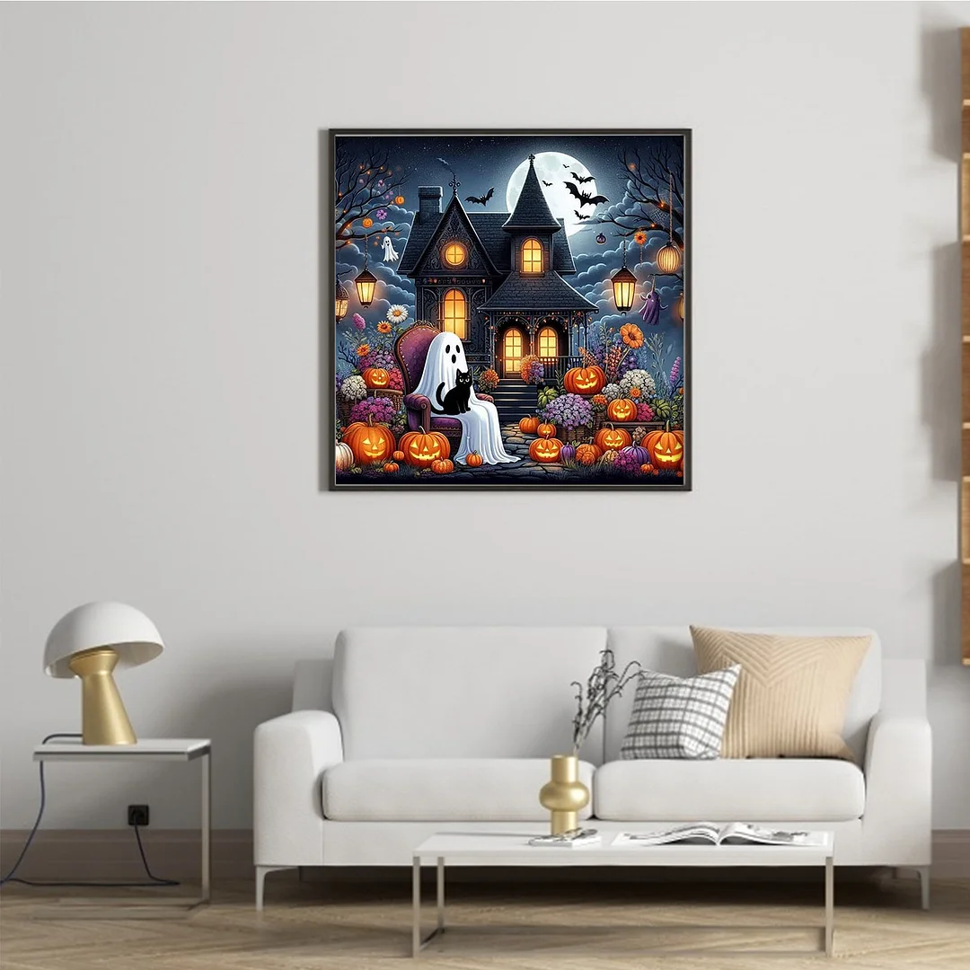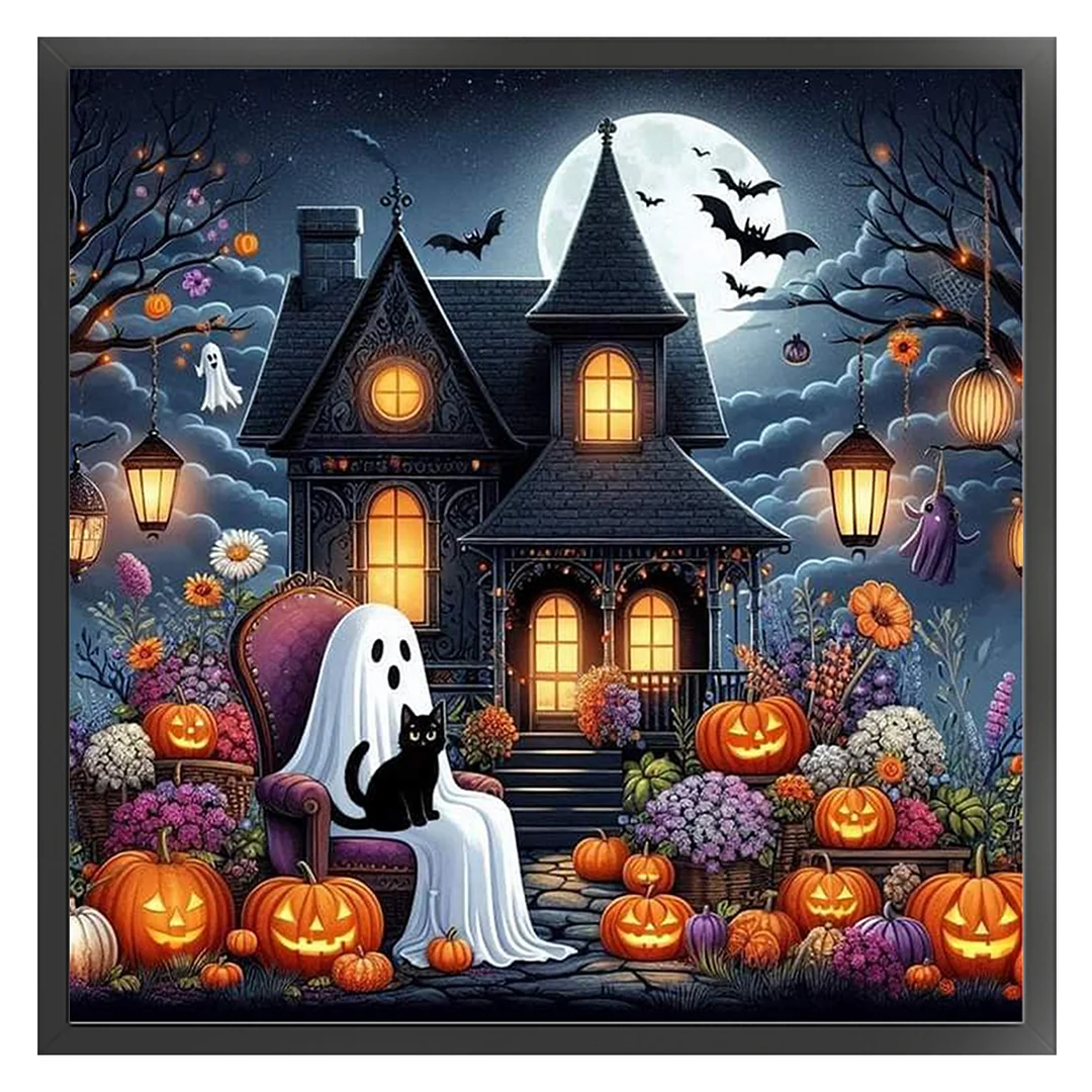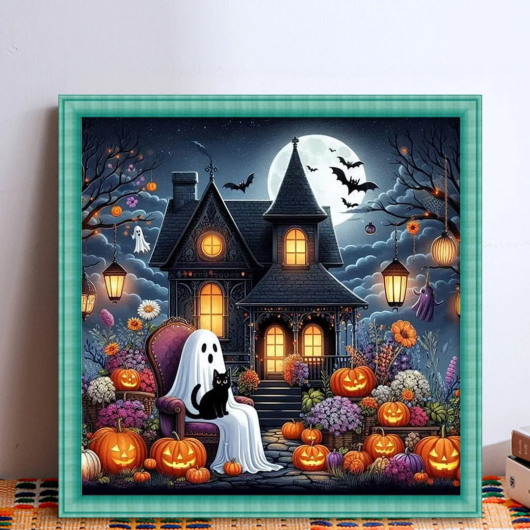 11CT Full Stamped Cross Stitch Kit - Halloween Cabin (50*50cm)