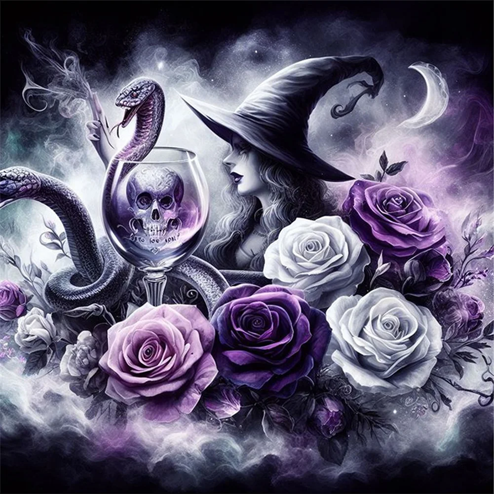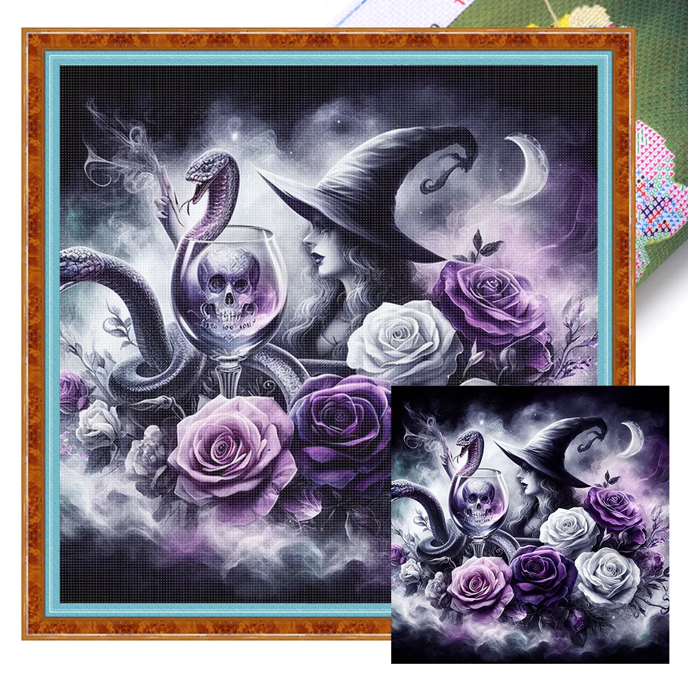 11CT Full Stamped Cross Stitch Kit - Rose Witch (40*40cm)