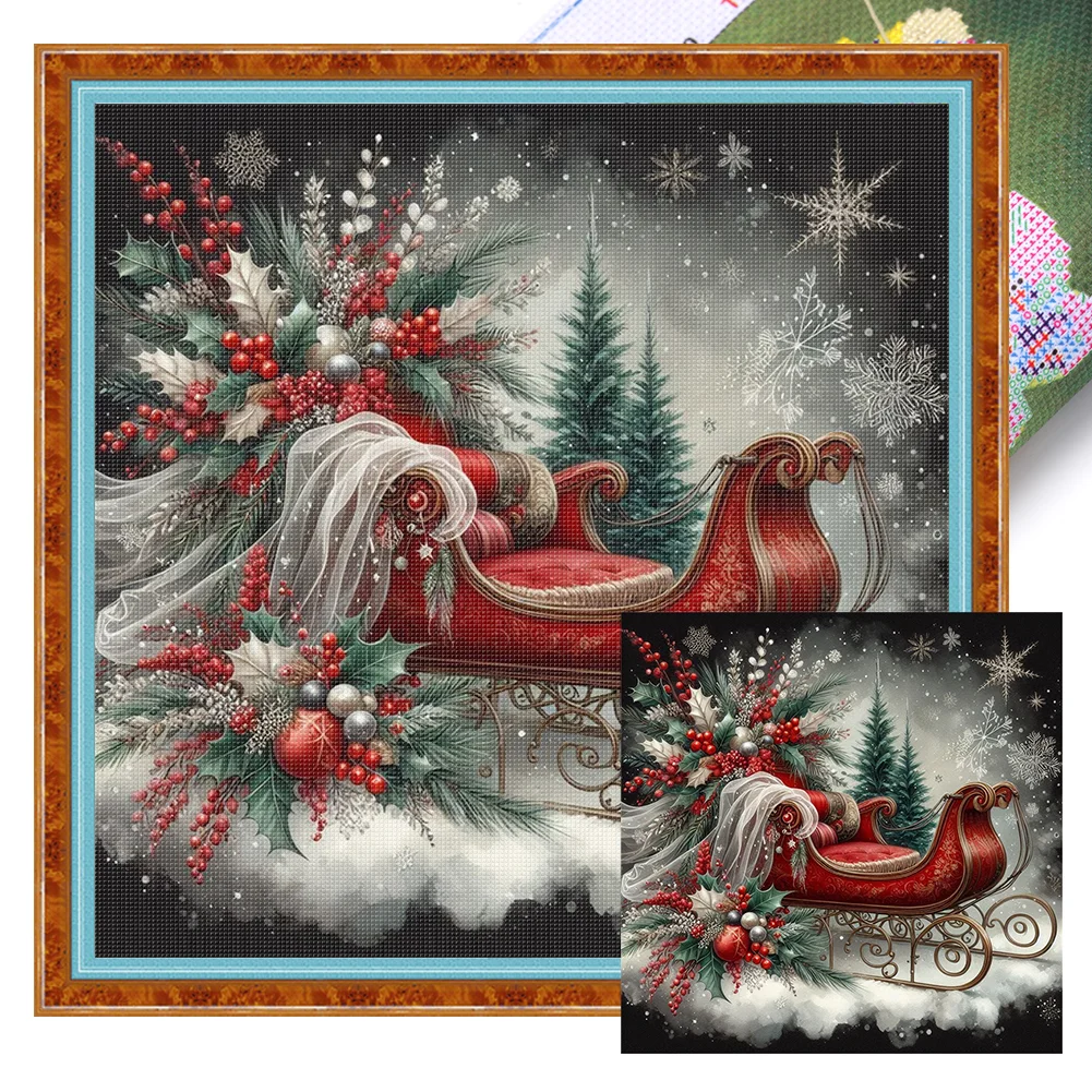 11CT Full Stamped Cross Stitch Kit - Sled (45*45cm)