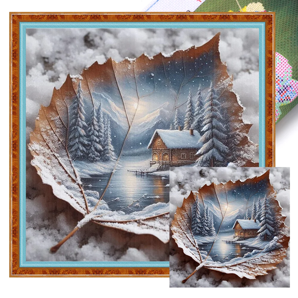11CT Full Stamped Cross Stitch - Leaf Silhouette - Winter (40*40cm)