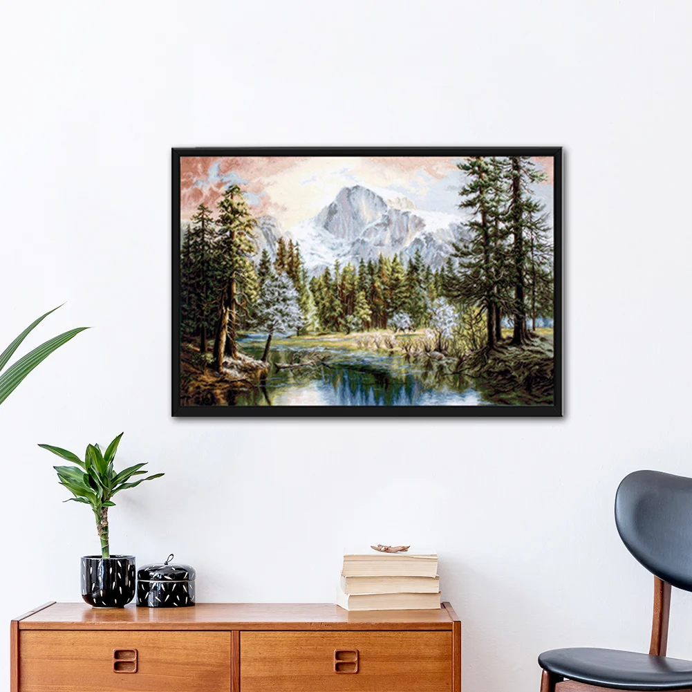 DIY Full Cross Stitch Embroidery Mount Lake Cotton Thread Handcraft Painting 11CT Stamped Printed Needlework Home Wall Decoration Ornament