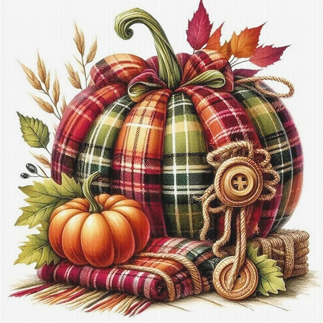 11CT Full Stamped Cross Stitch - Patchwork Pumpkin (45X45CM)