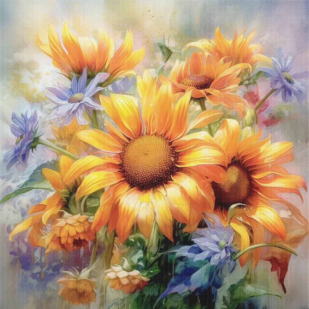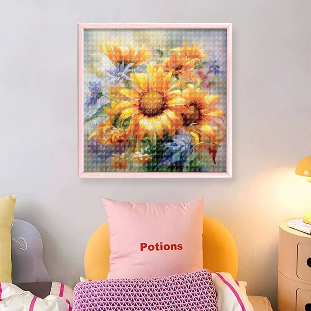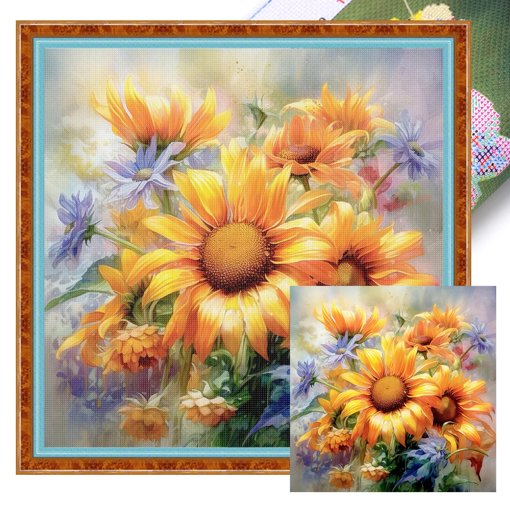 11CT Full Stamped Cross Stitch - Sunflower Oil Painting (40*40cm)