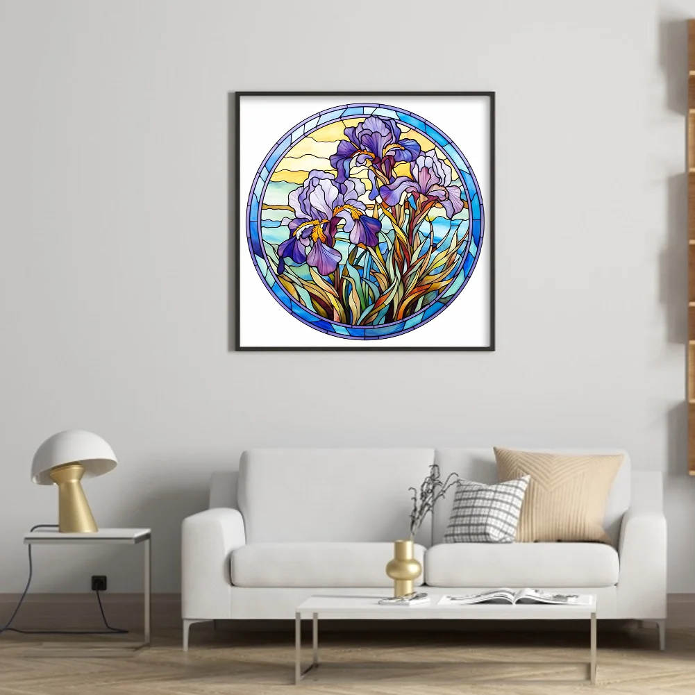 11CT Full Stamped Cross Stitch - Window Paper-Iris (40X40CM)