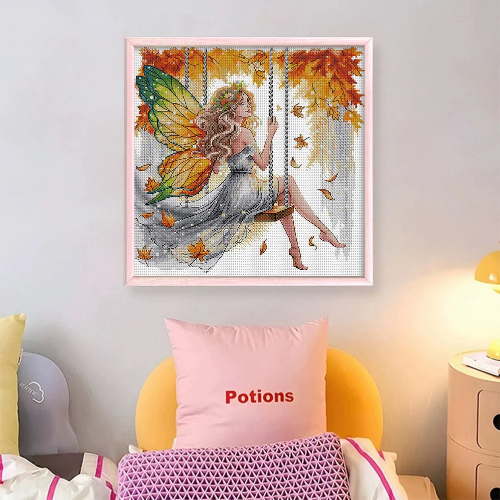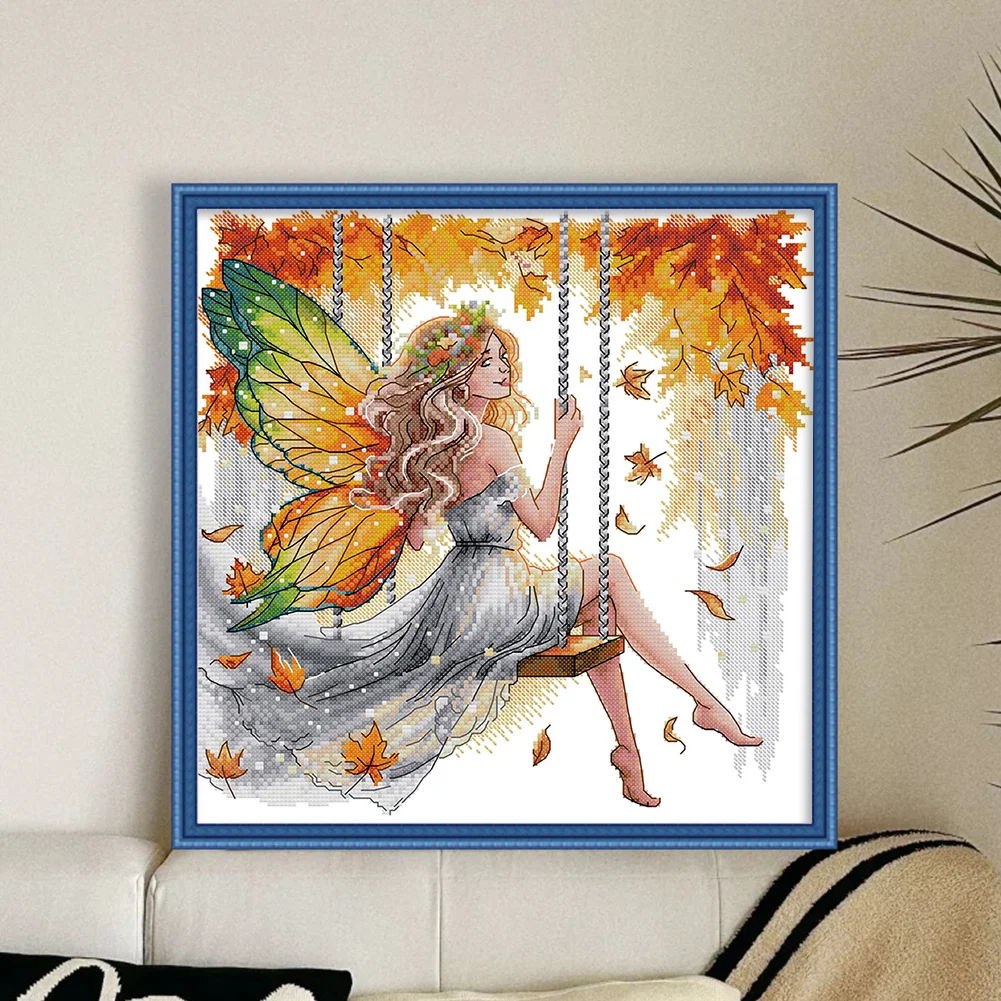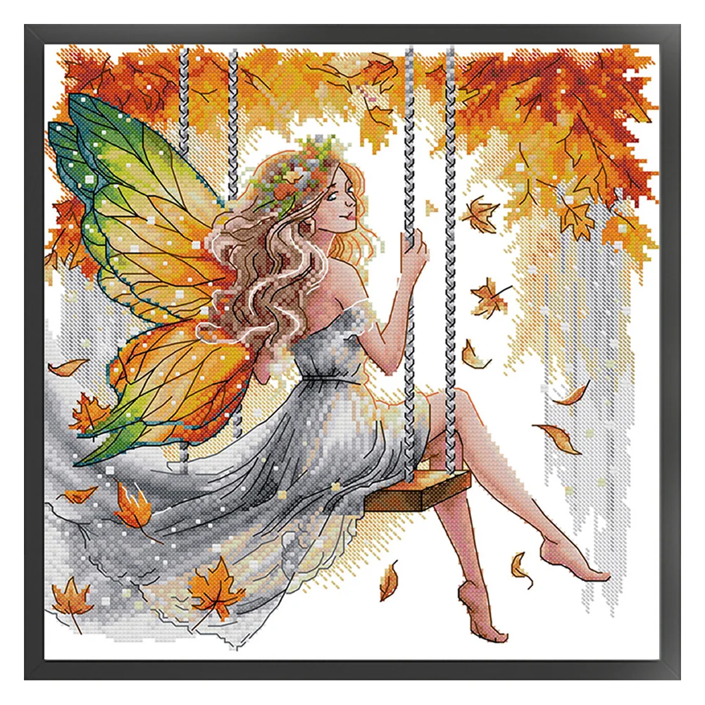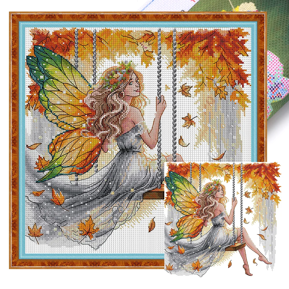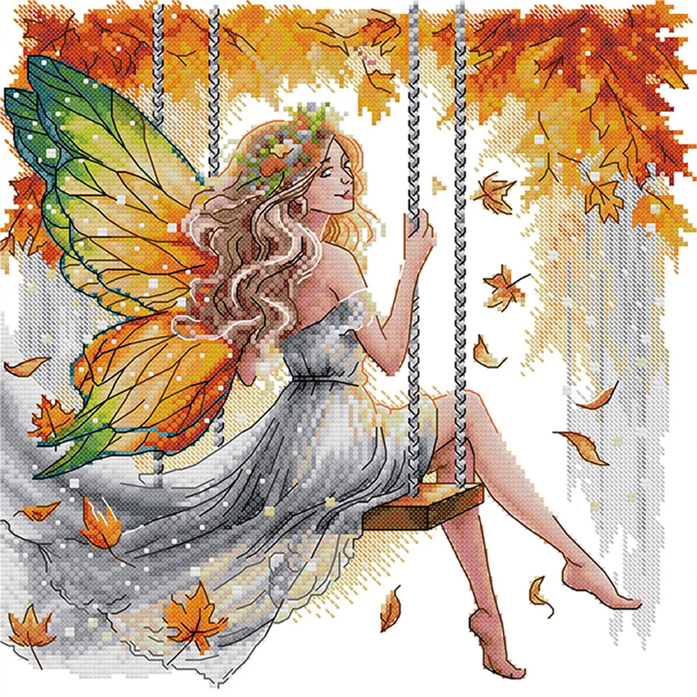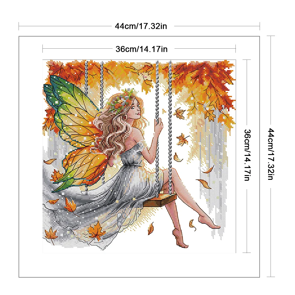 11CT Partial Stamped Cross Stitch - Butterfly Fairy On The Swing (44*44cm)