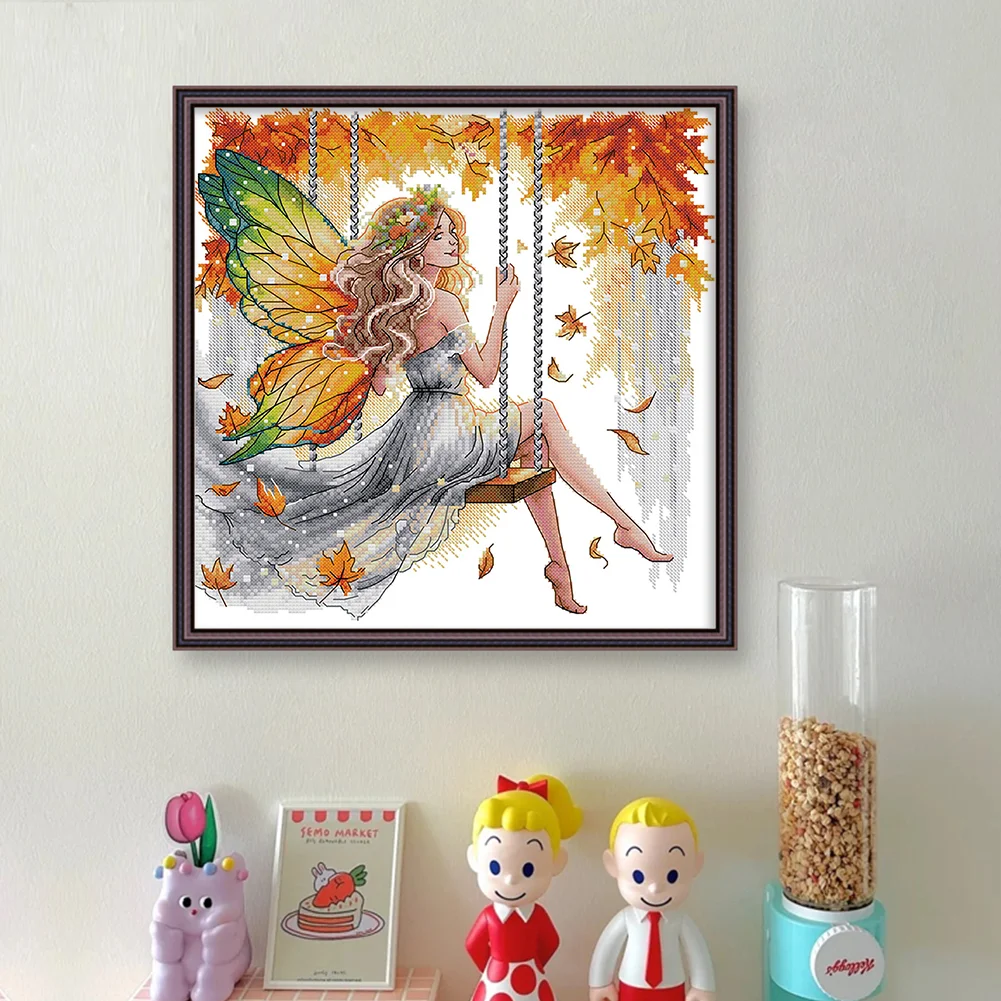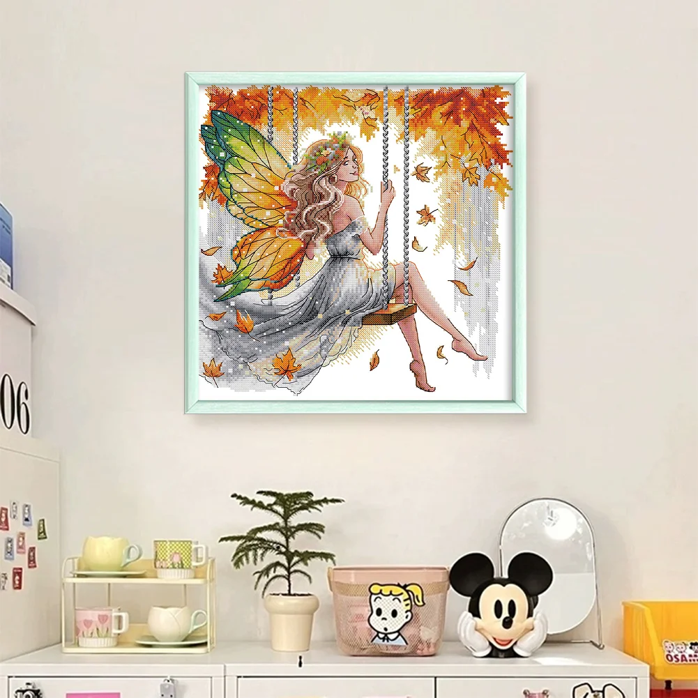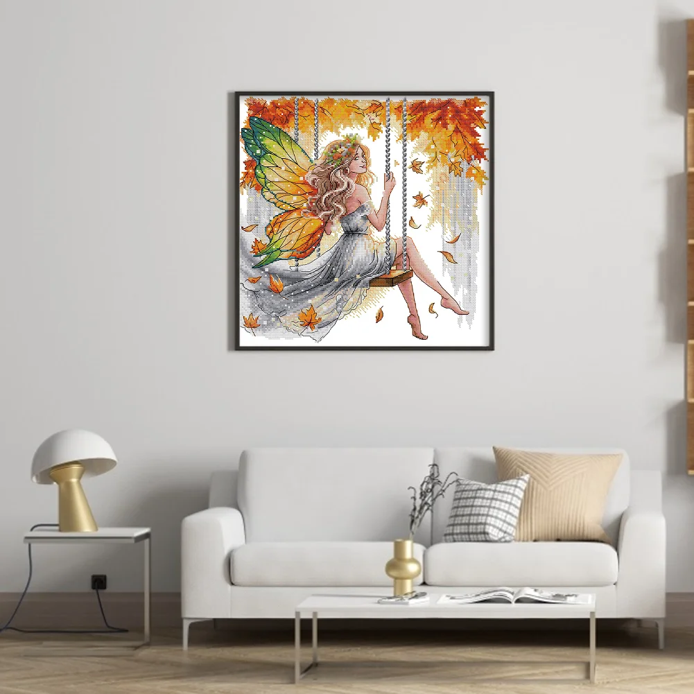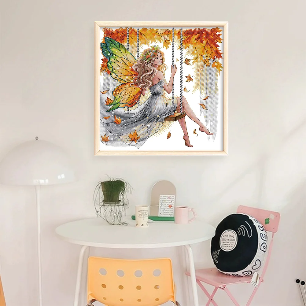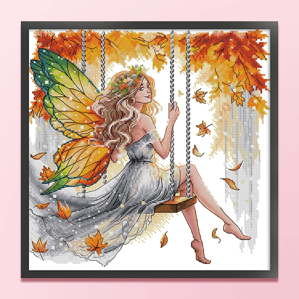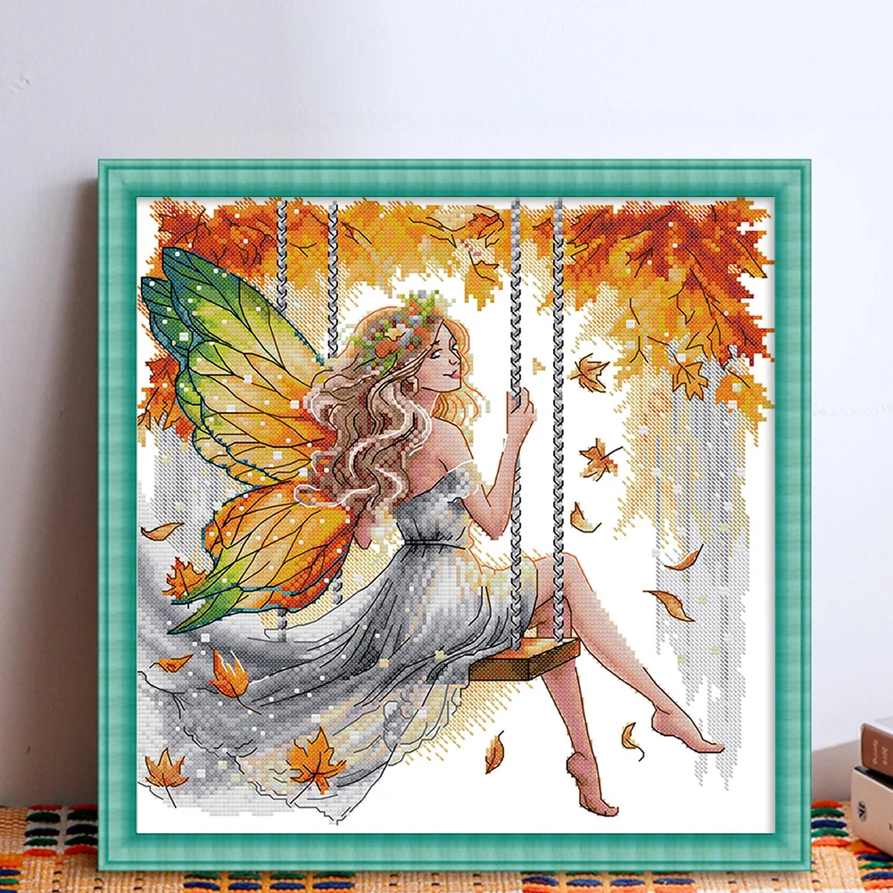 11CT Partial Stamped Cross Stitch - Butterfly Fairy On The Swing (44*44cm)