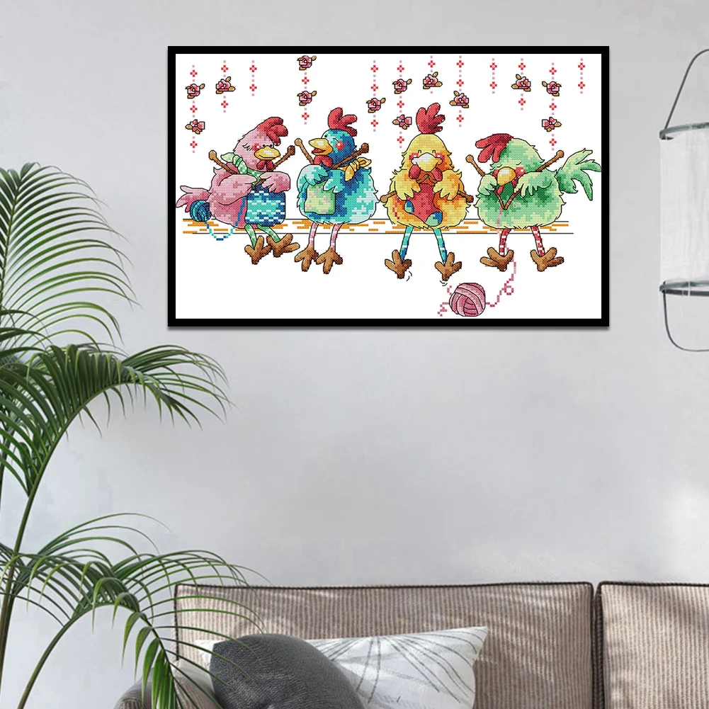 DIY Chicken Knitting Sweater Pattern Part Embroidery Cross Stitch Kits Stamped Canvas 11CT Needlework Sets Home Decor