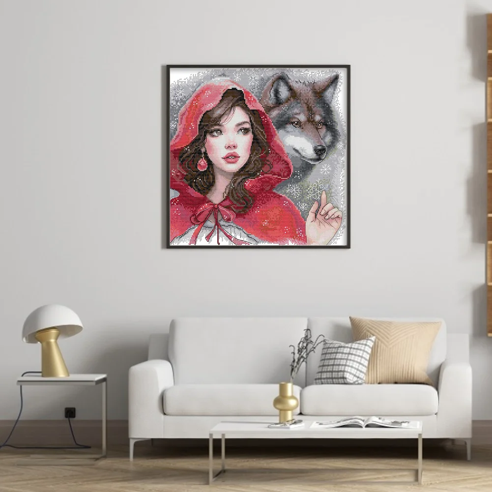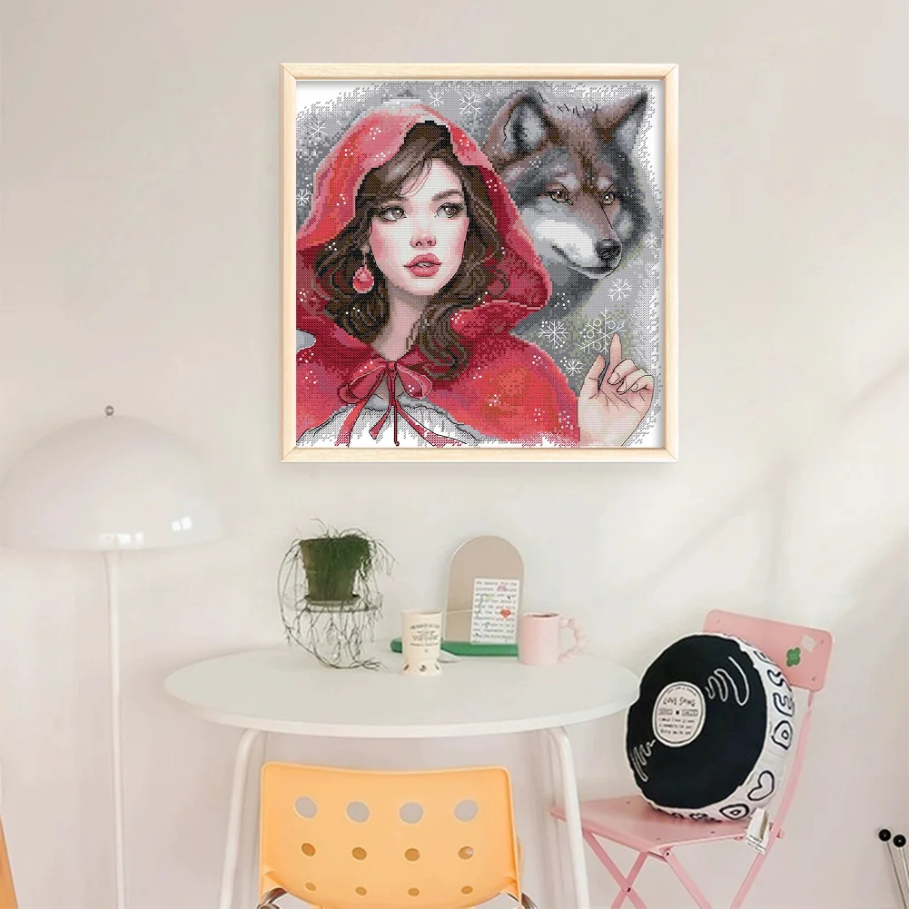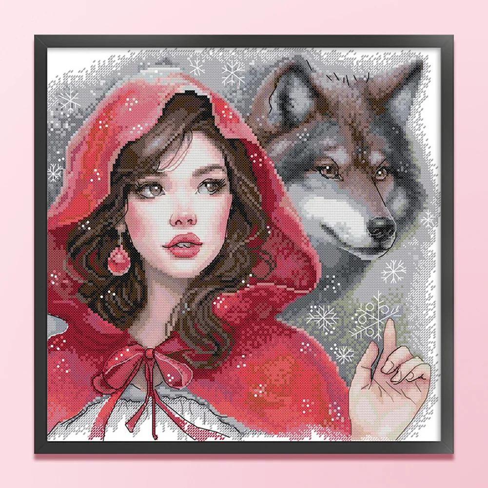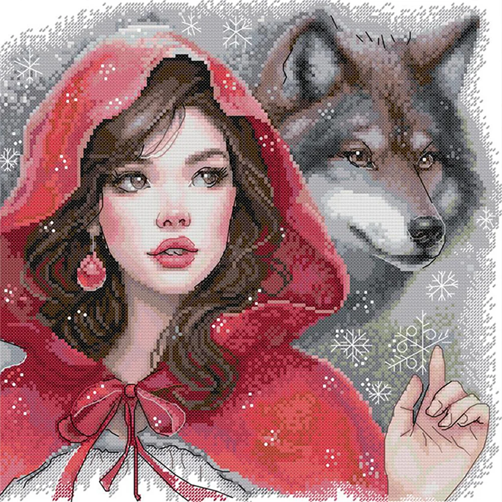 11CT Partial Stamped Cross Stitch - The Red Girl And The Big Bad Wolf (46*45cm)