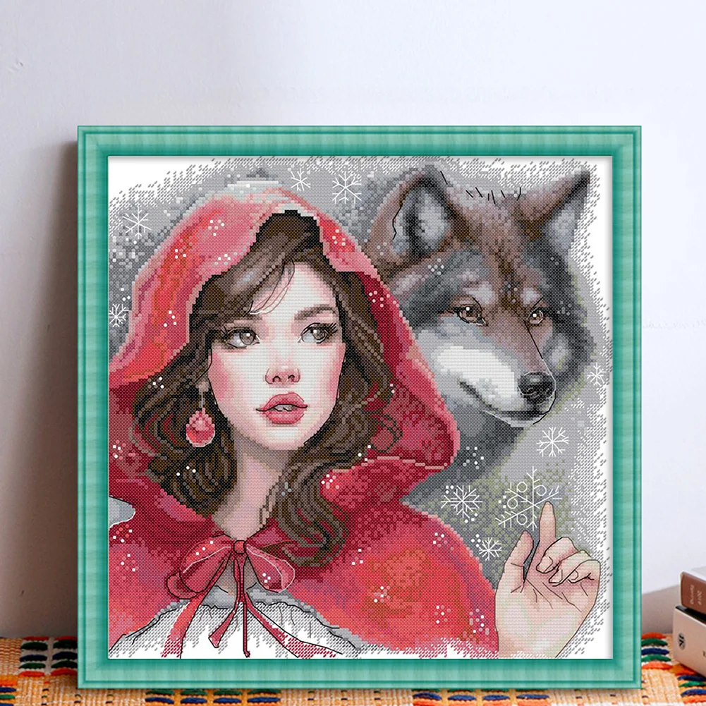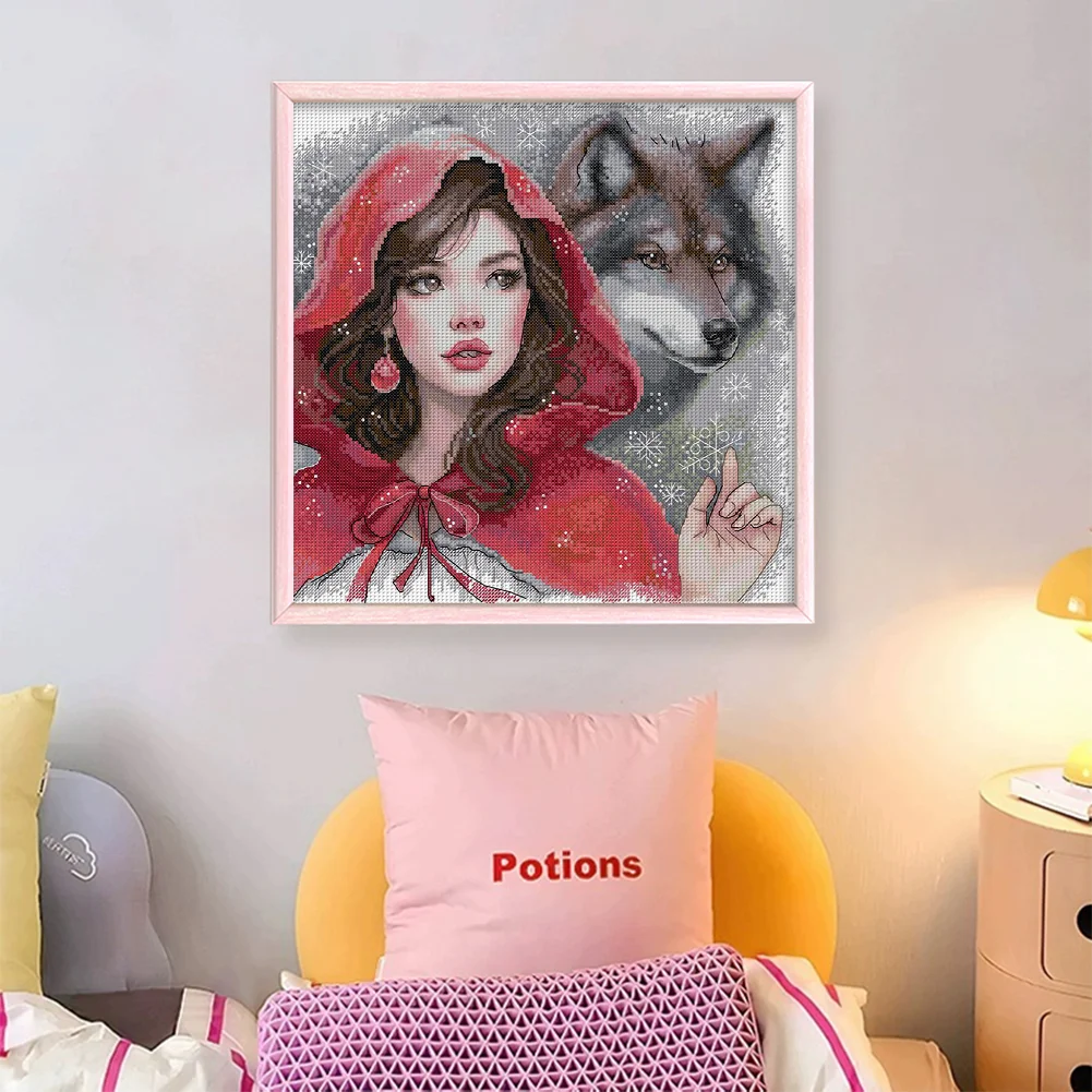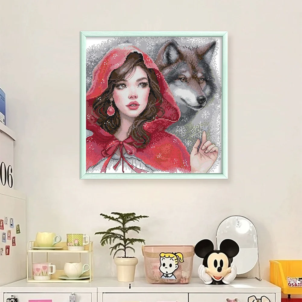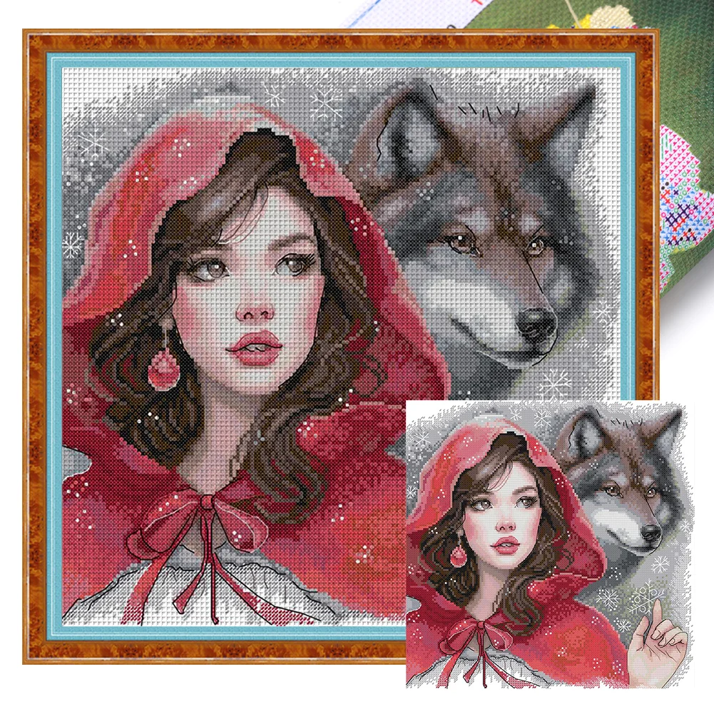 11CT Partial Stamped Cross Stitch - The Red Girl And The Big Bad Wolf (46*45cm)